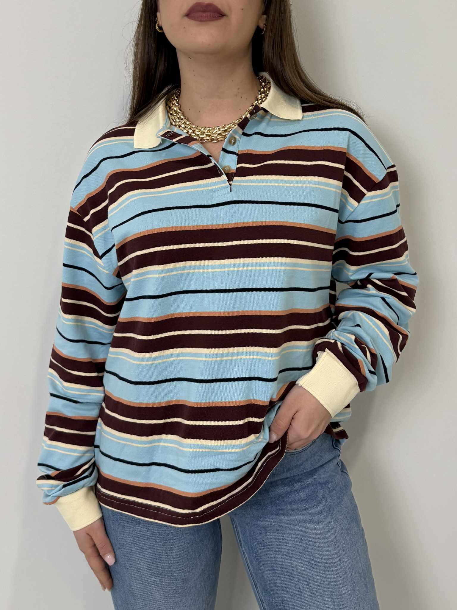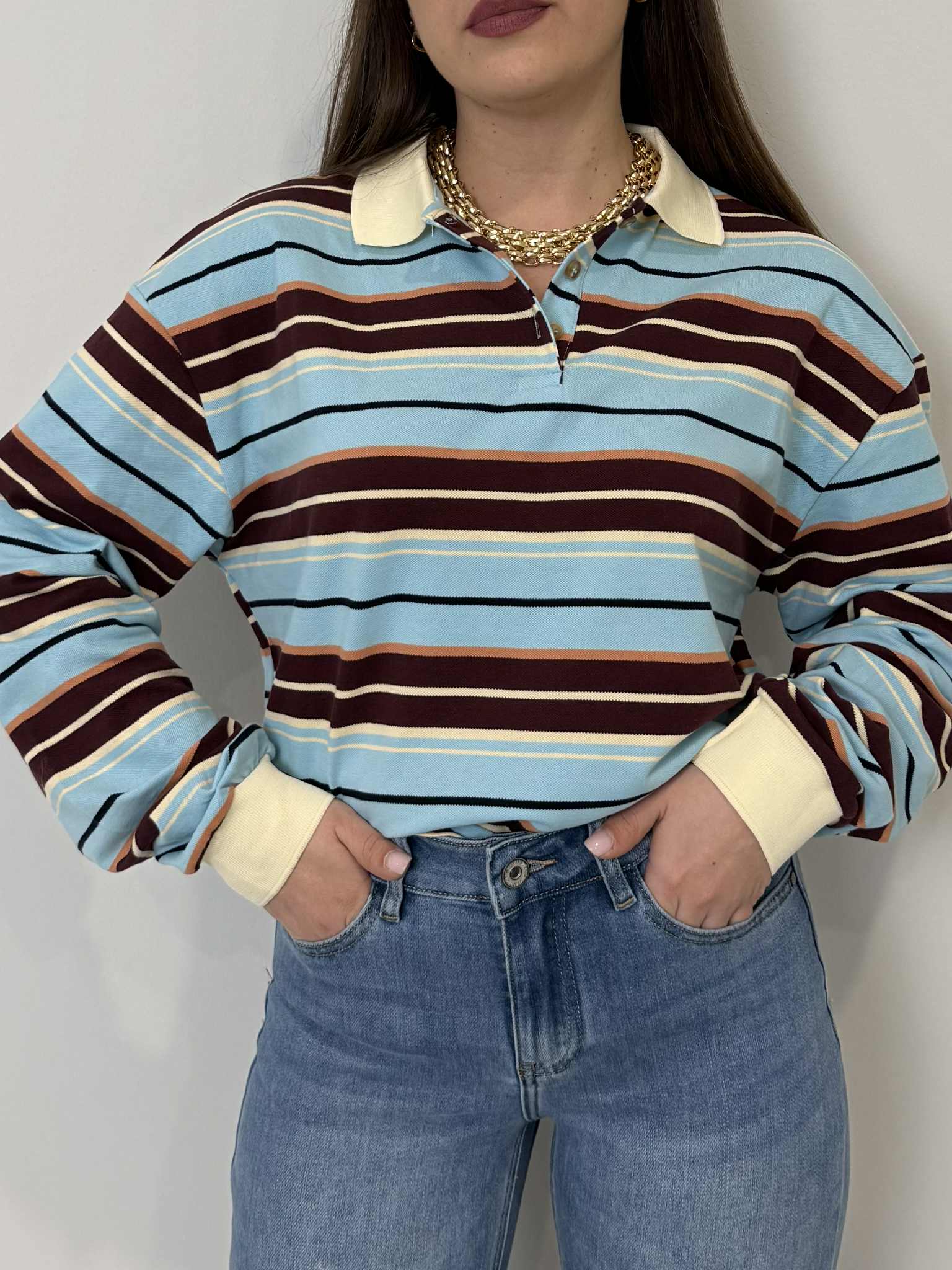 Civico23 - Maglia a polo azzurra/tabacco