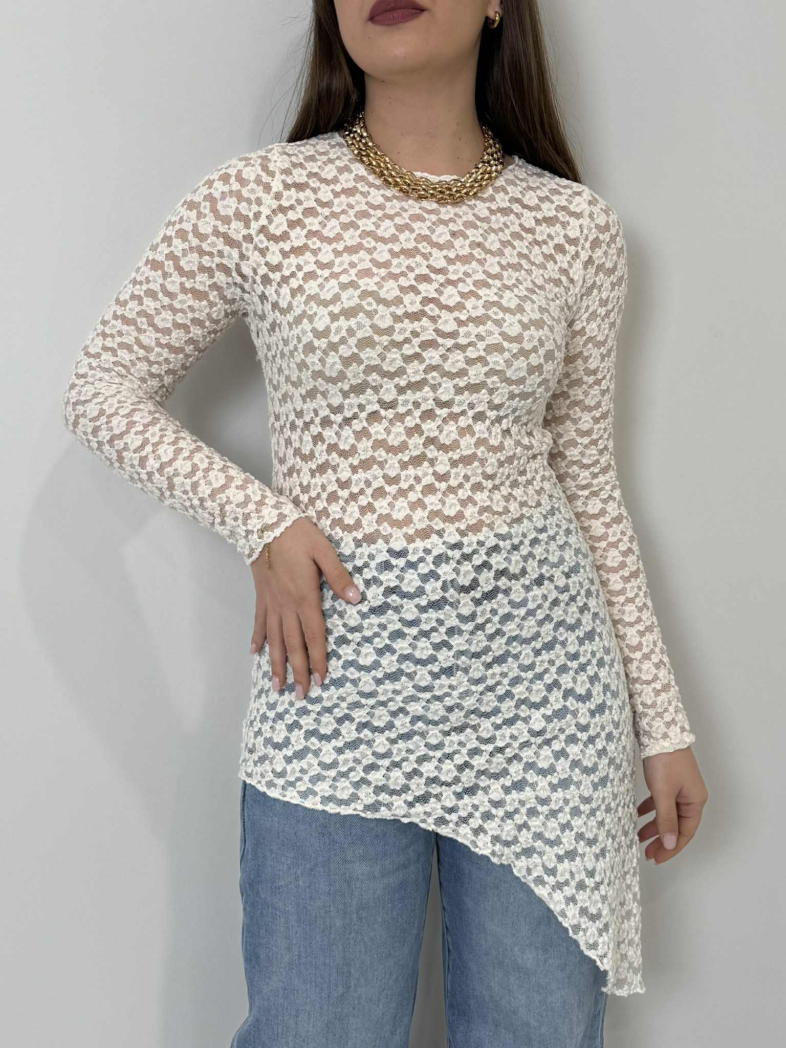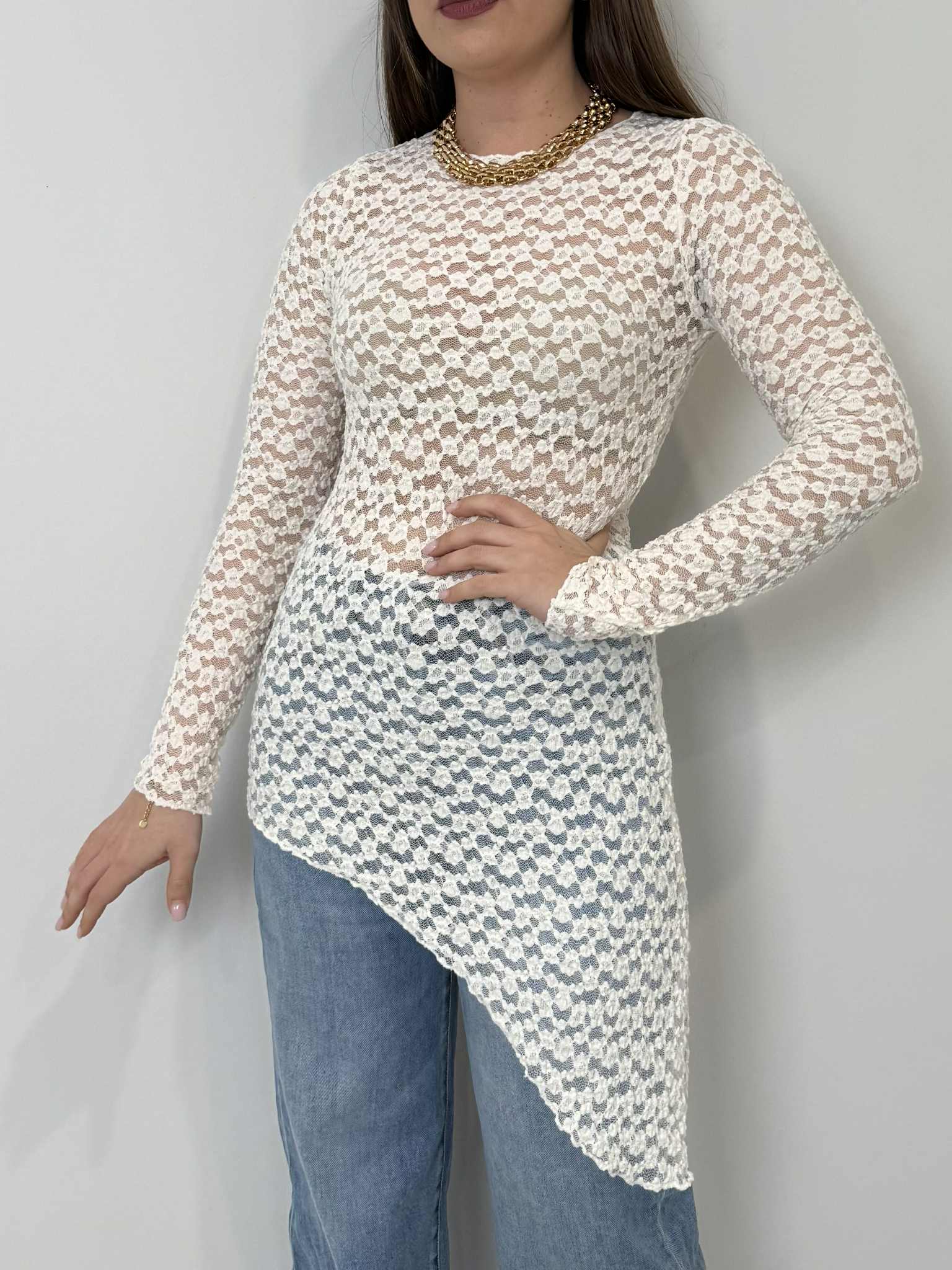 Civico23 - Maglia in macramè asimmetrica panna