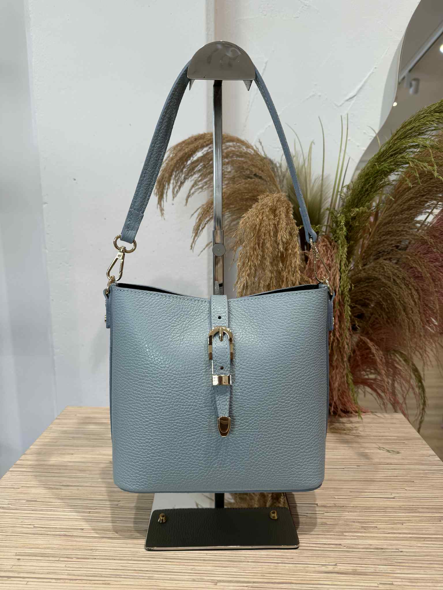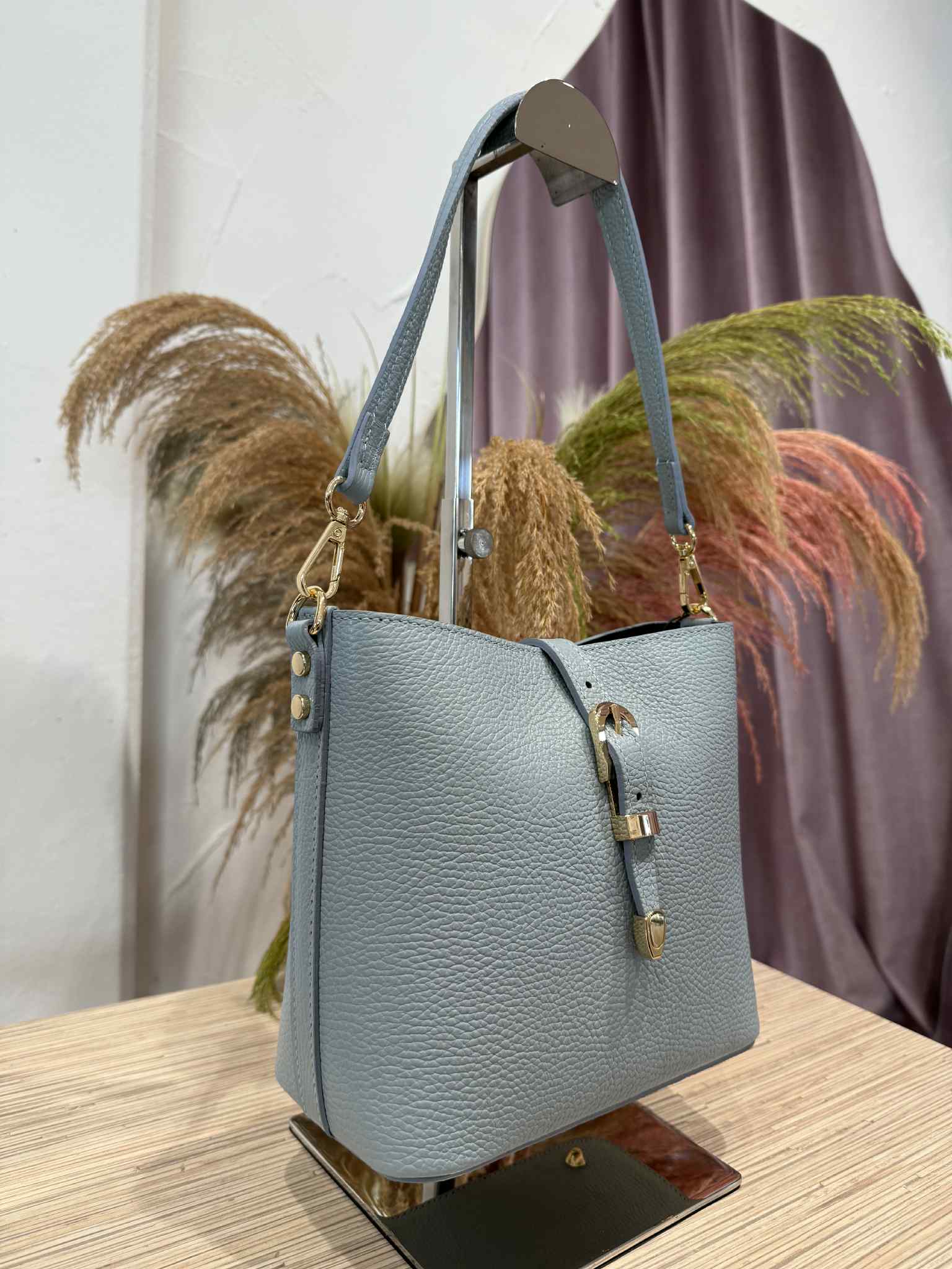 Civico23 - Secchiello in vera pelle con fibbia azzurro