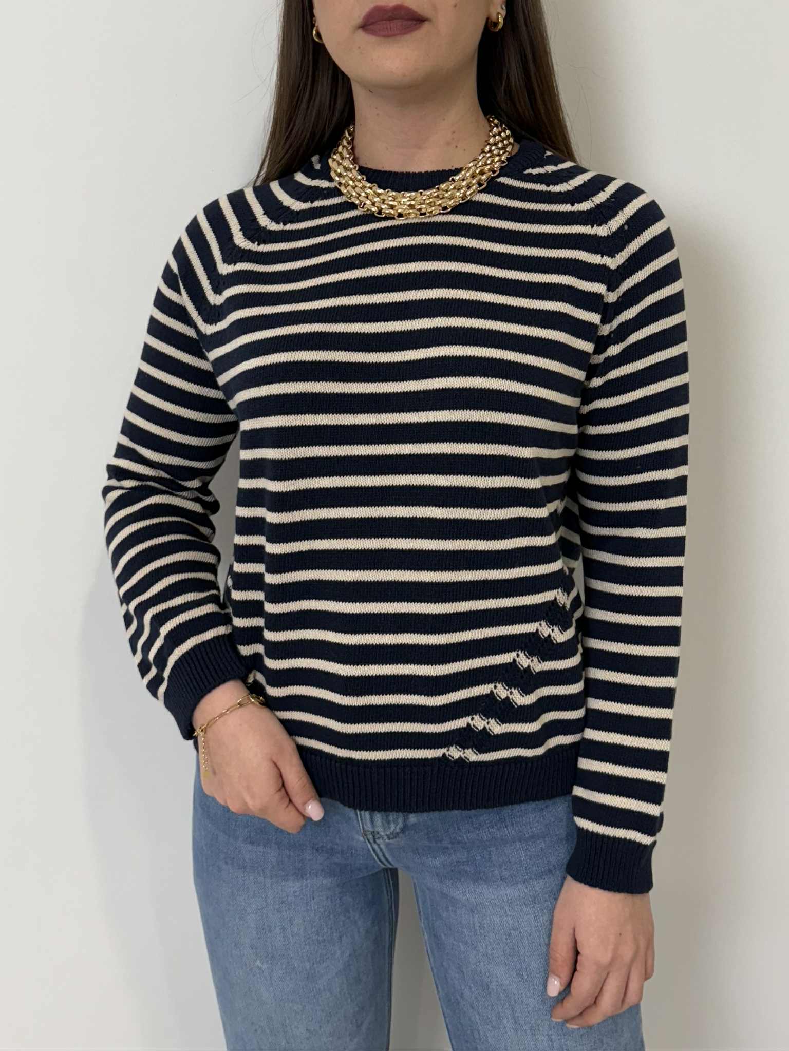 Civico23 - Maglioncino righe blu/panna