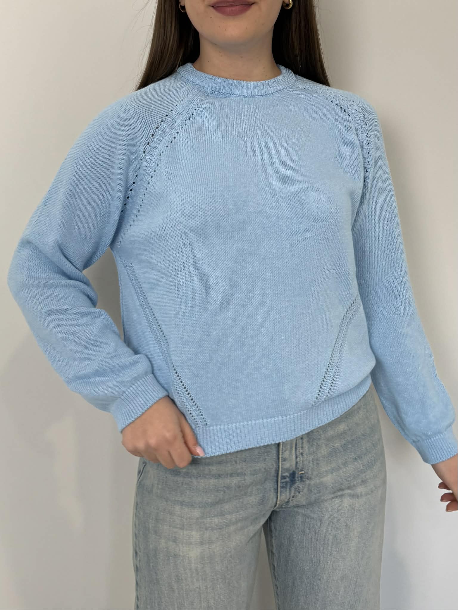 Civico23 - Maglioncino con traforatura celeste