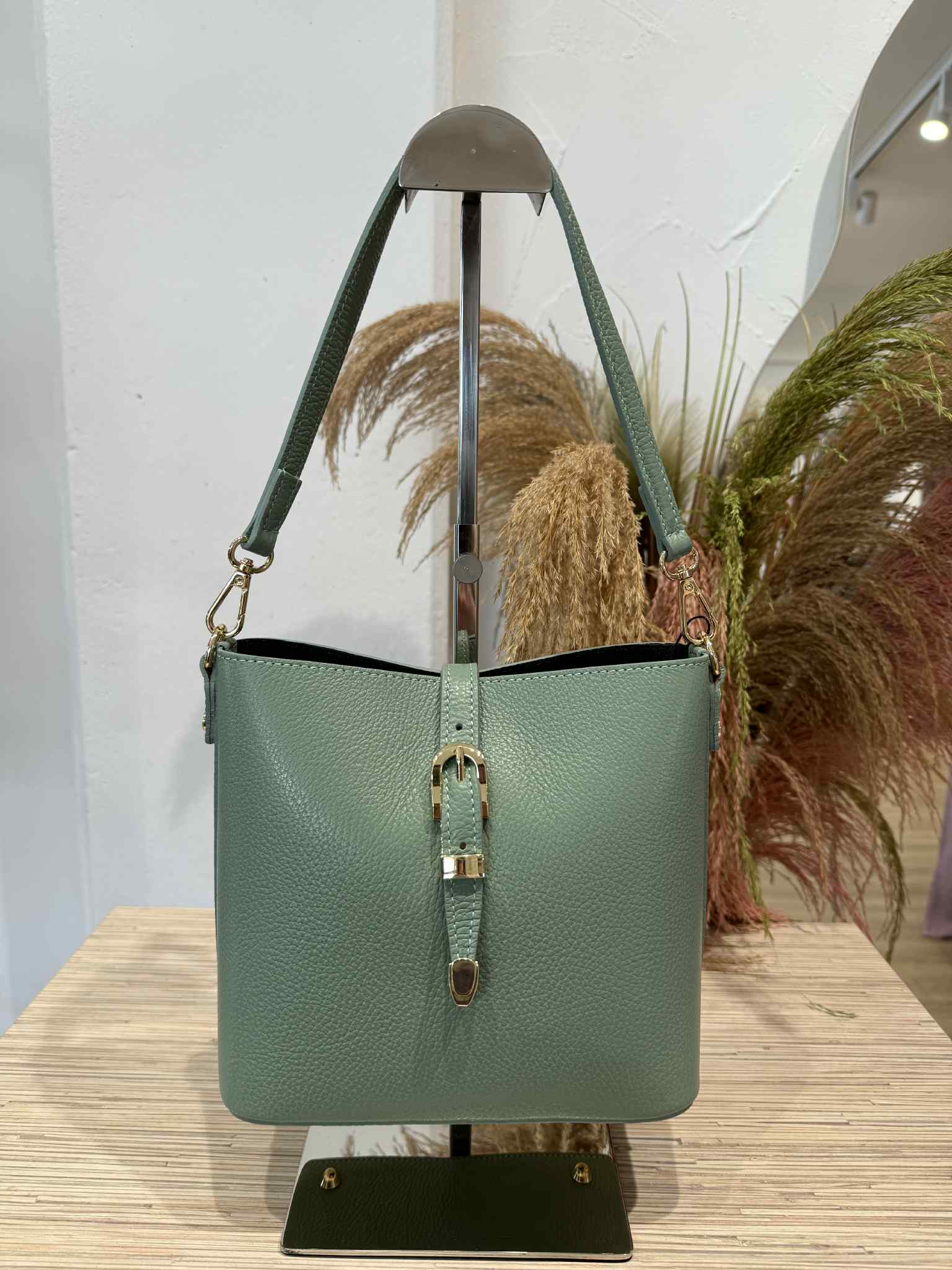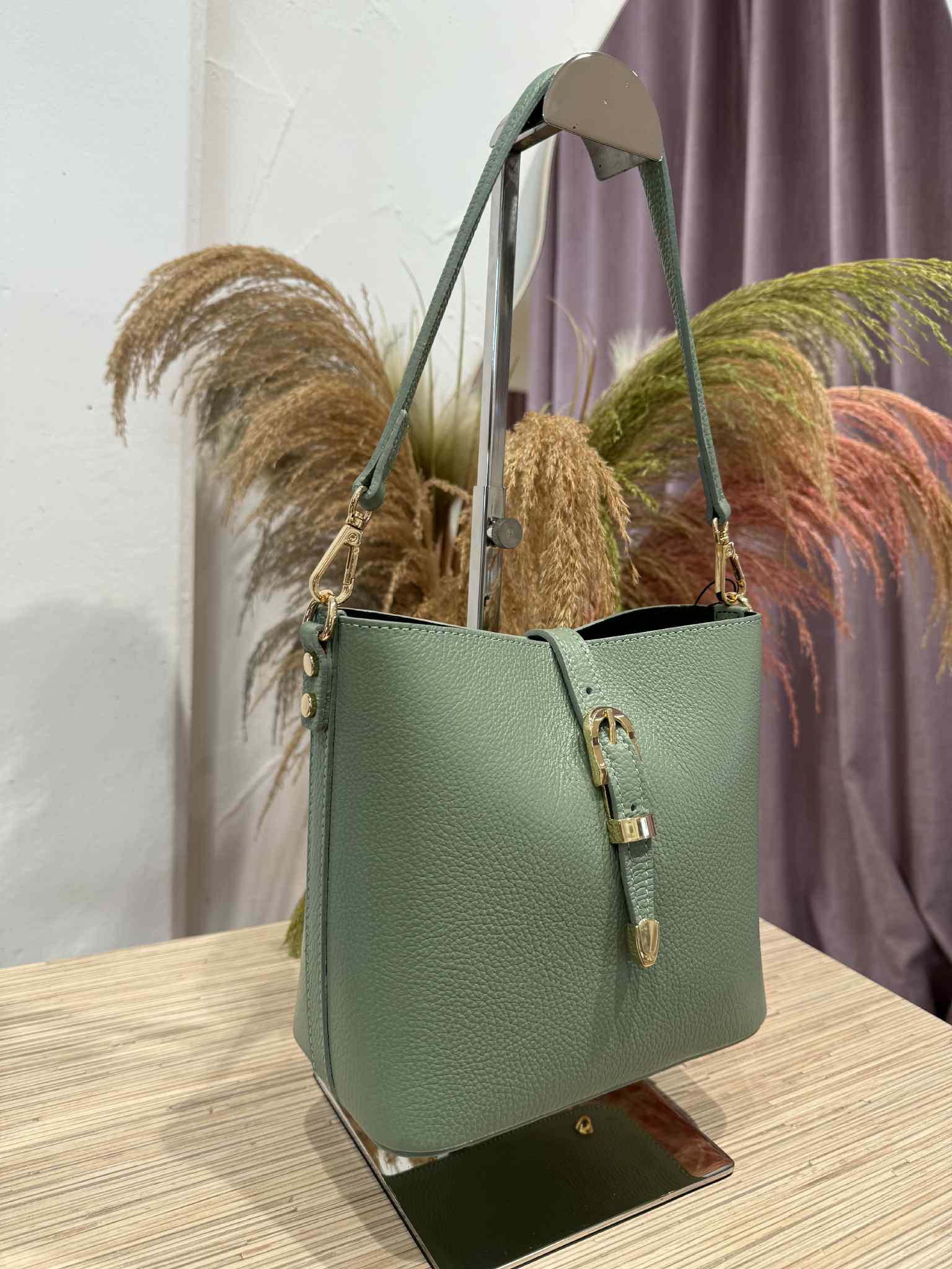 Civico23 - Secchiello in vera pelle con fibbia salvia