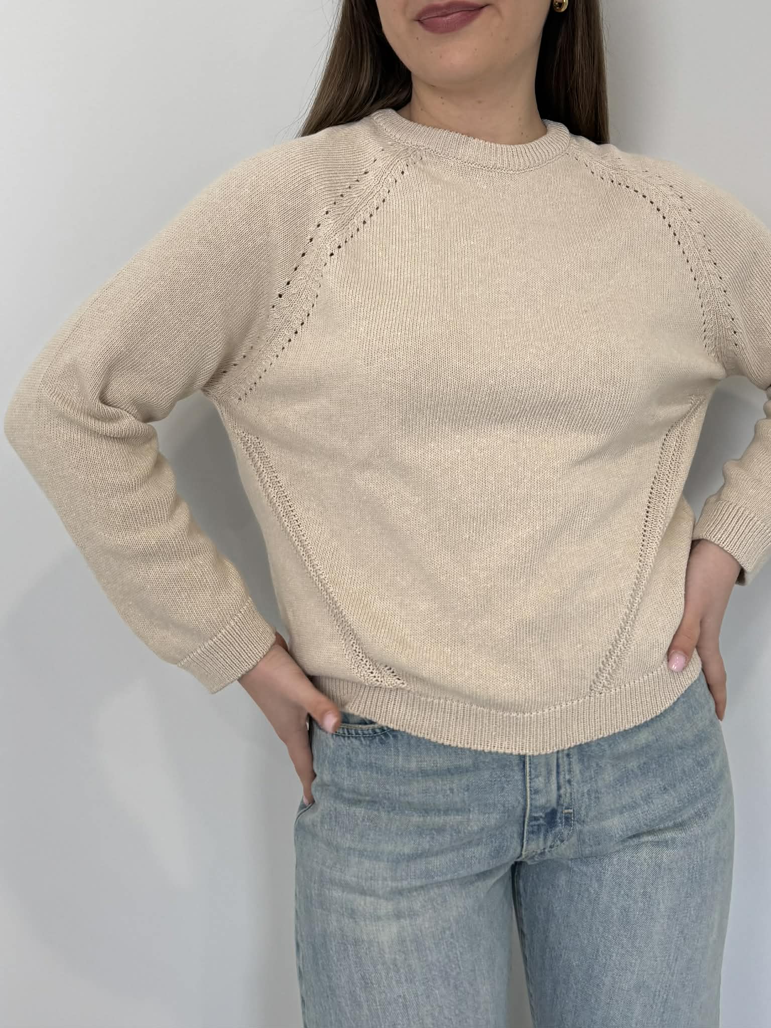 Civico23 - Maglioncino con traforatura beige