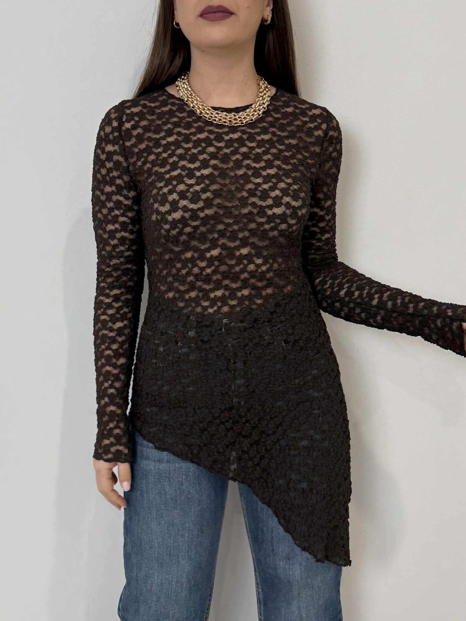 Civico23 - Maglia in macramè asimmetrica moro