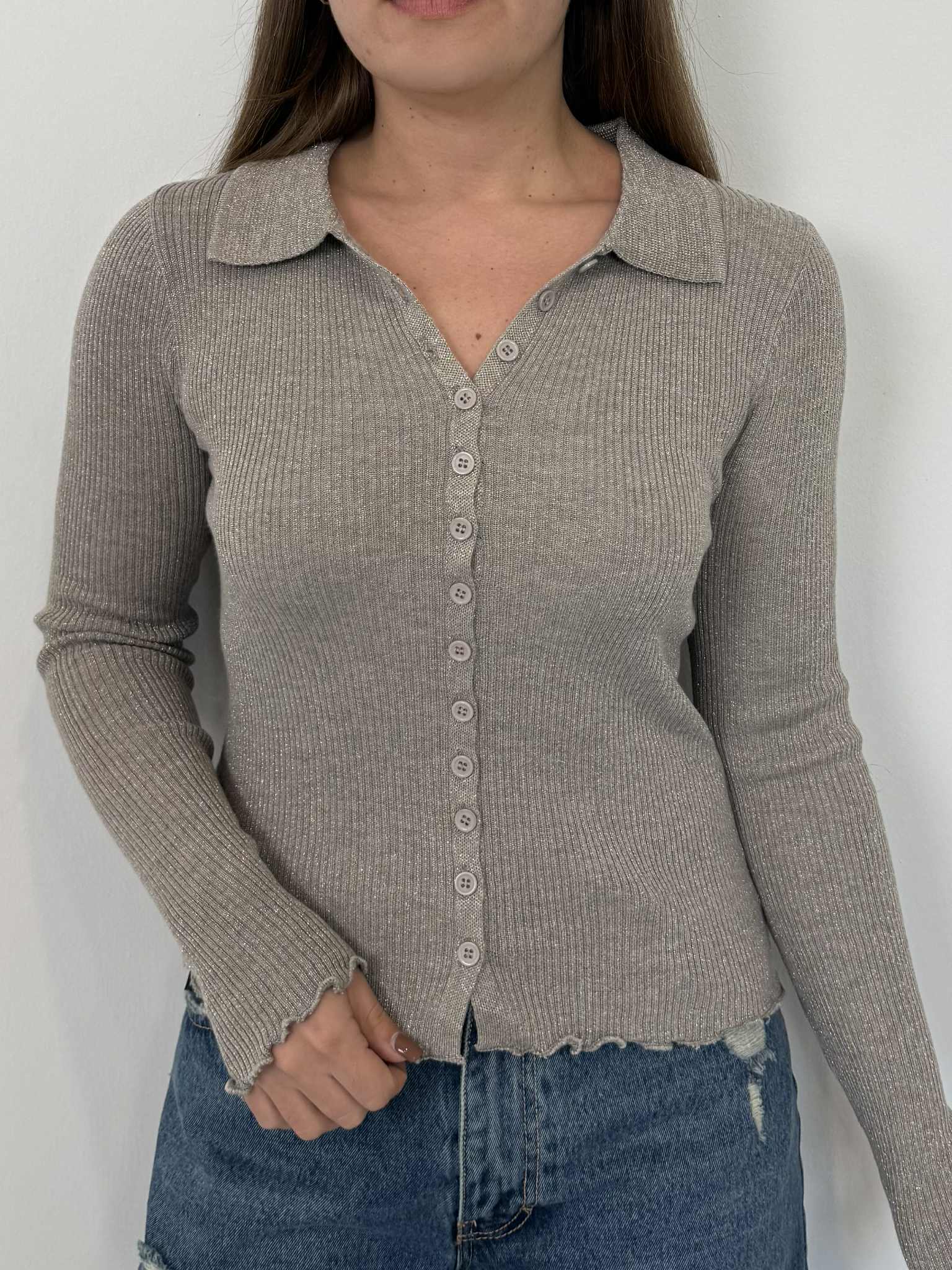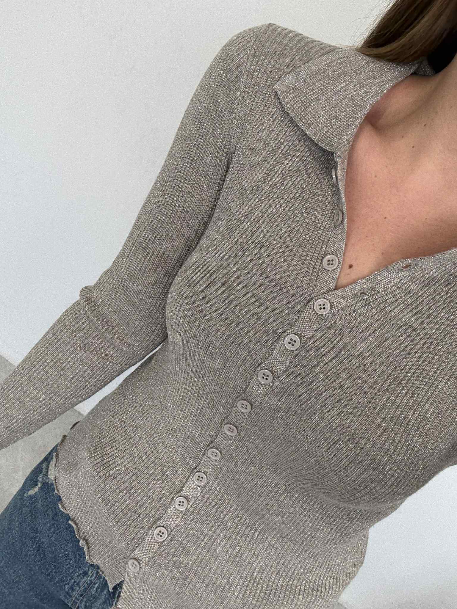Two Way - Polo costine lurex grigio