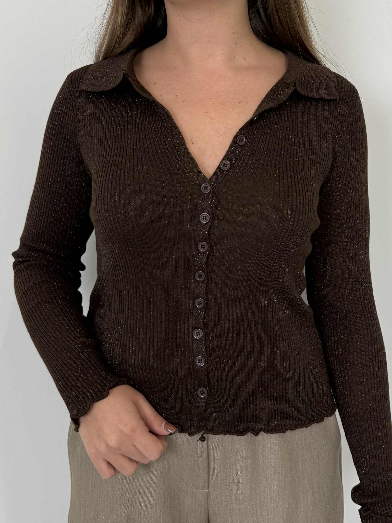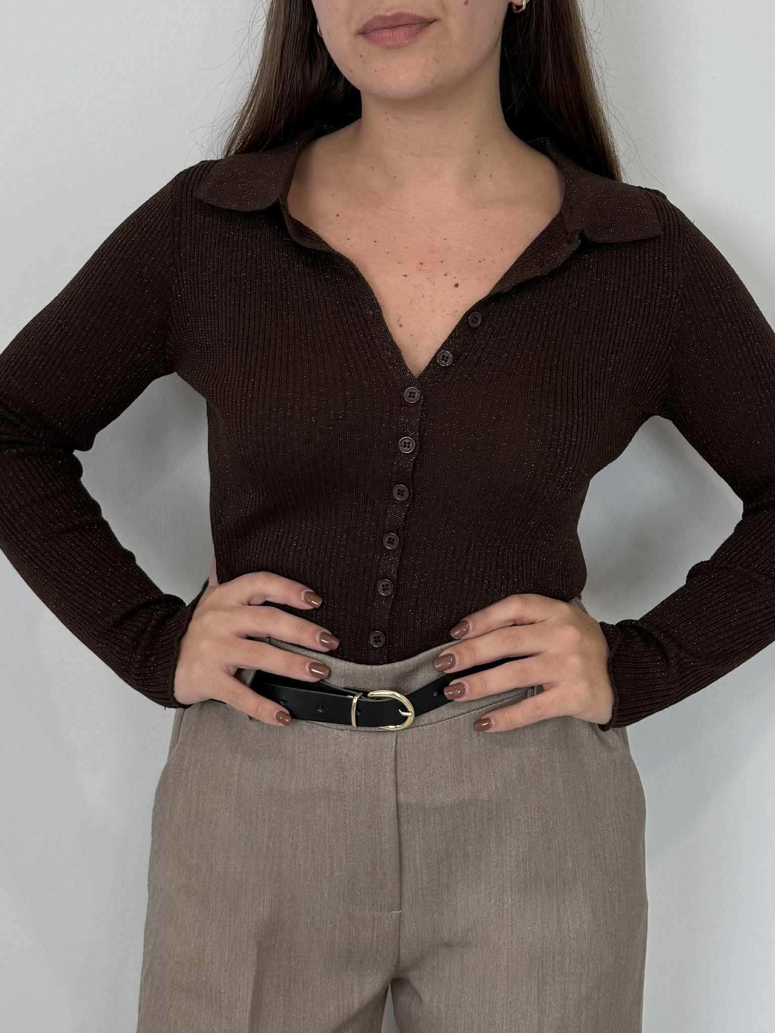 Two Way - Polo costine lurex moro