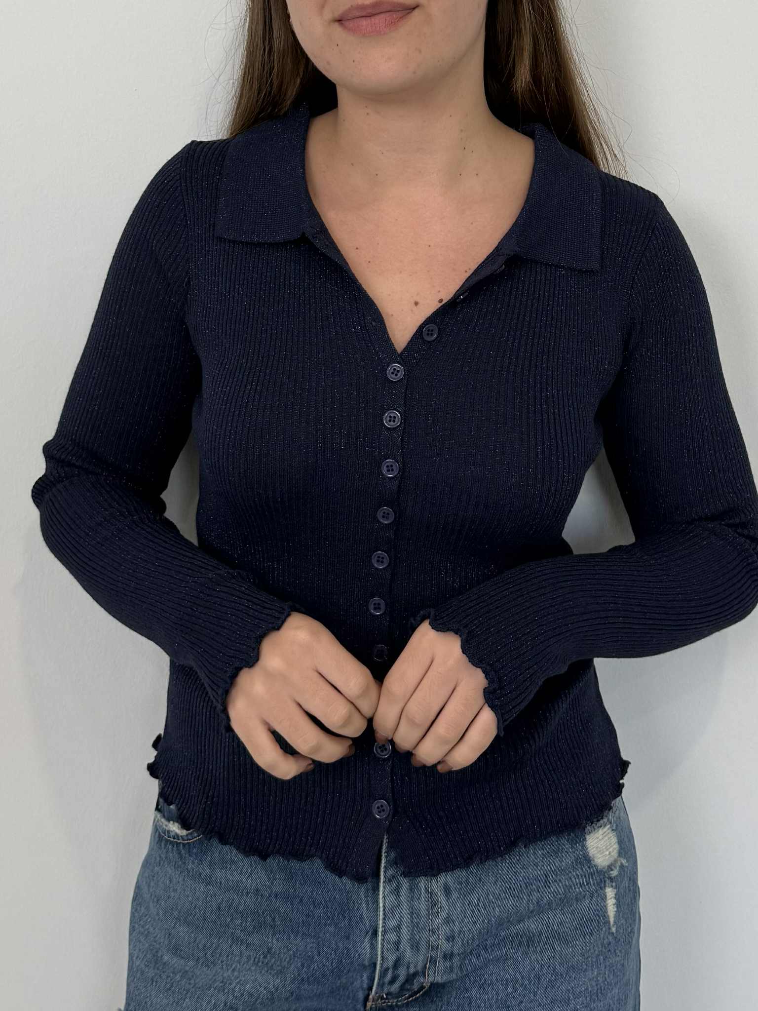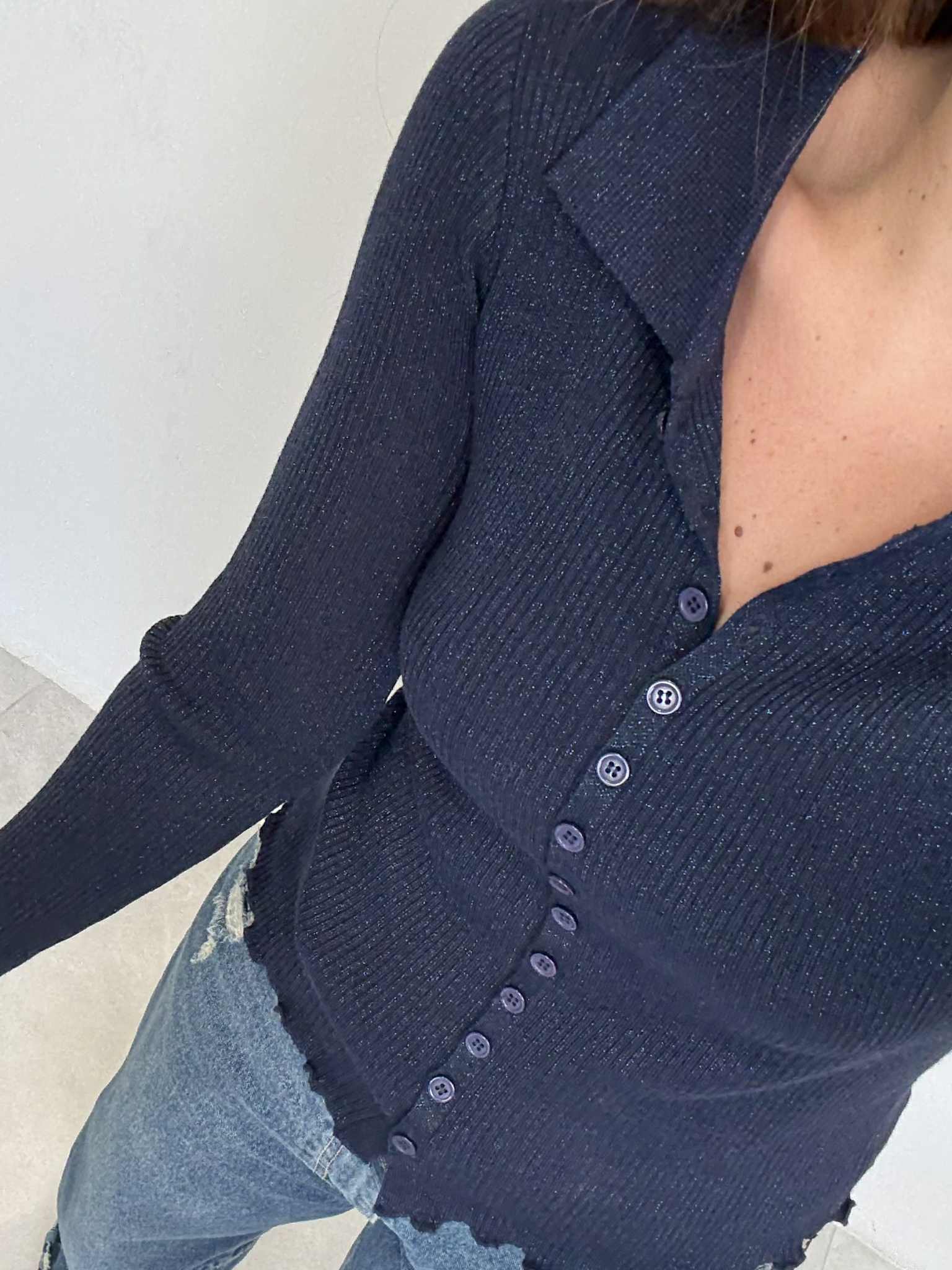 Two Way - Polo costine lurex blu