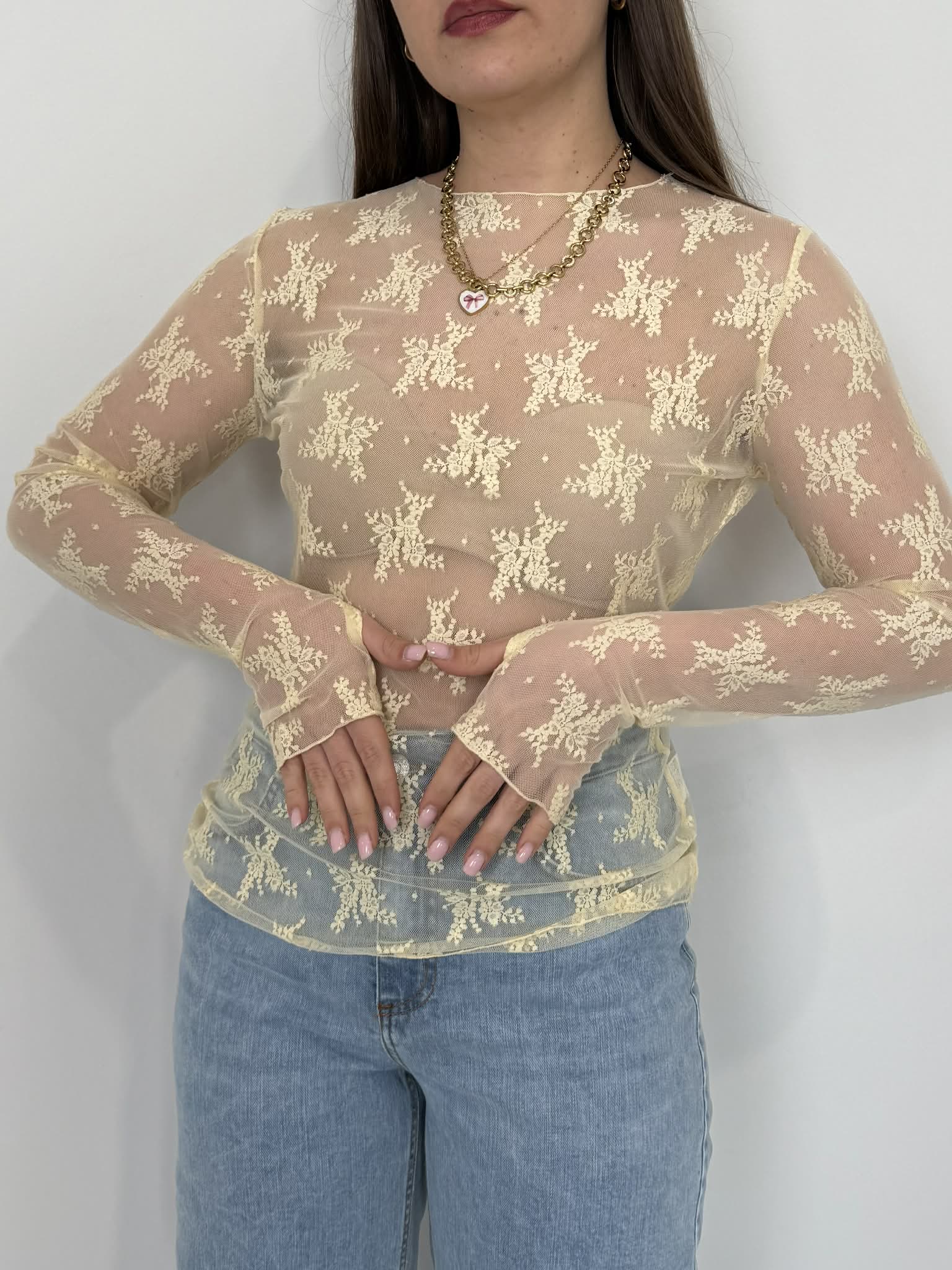 SusyMix - Maglia in pizzo con manicotti gialla