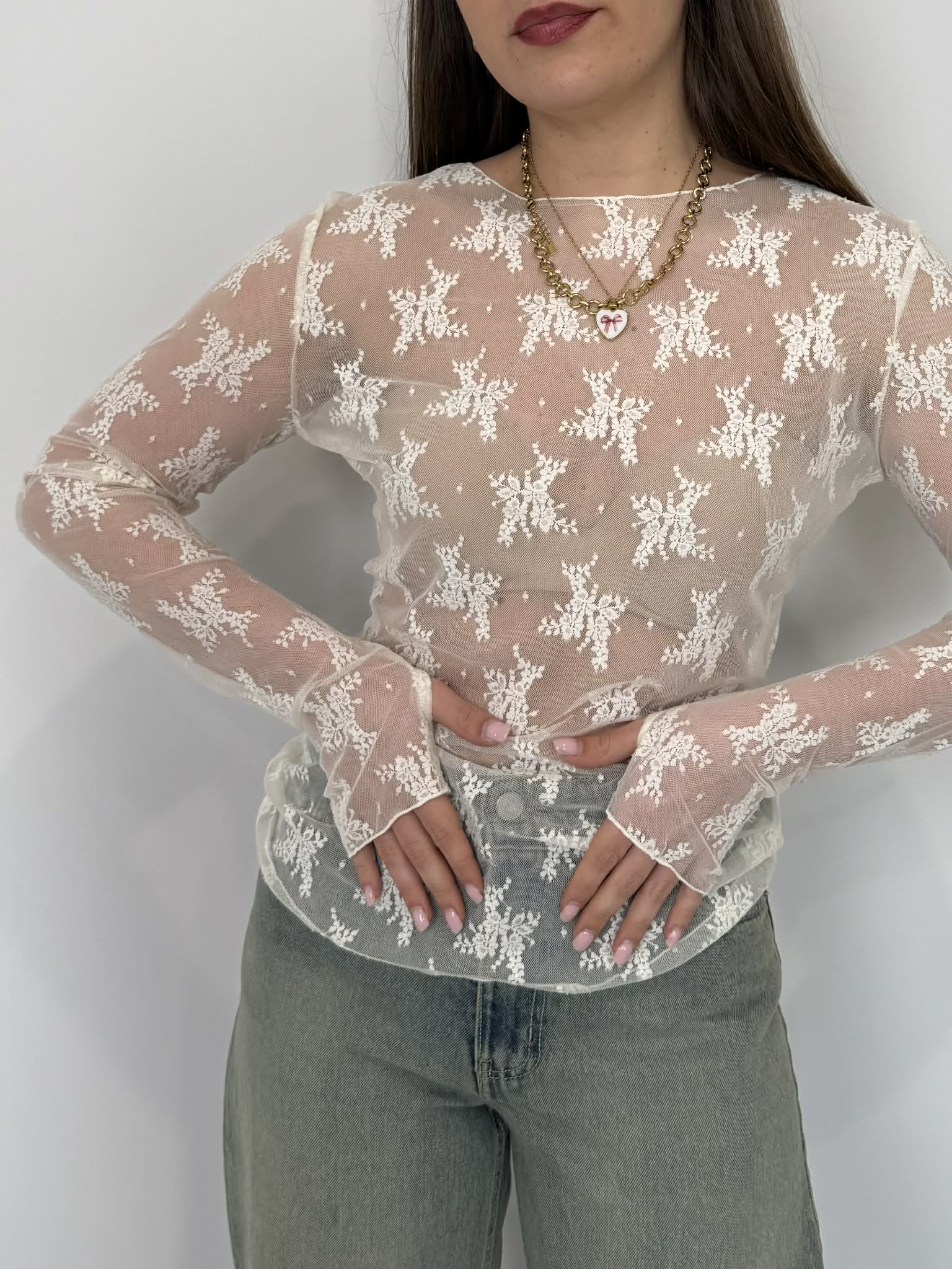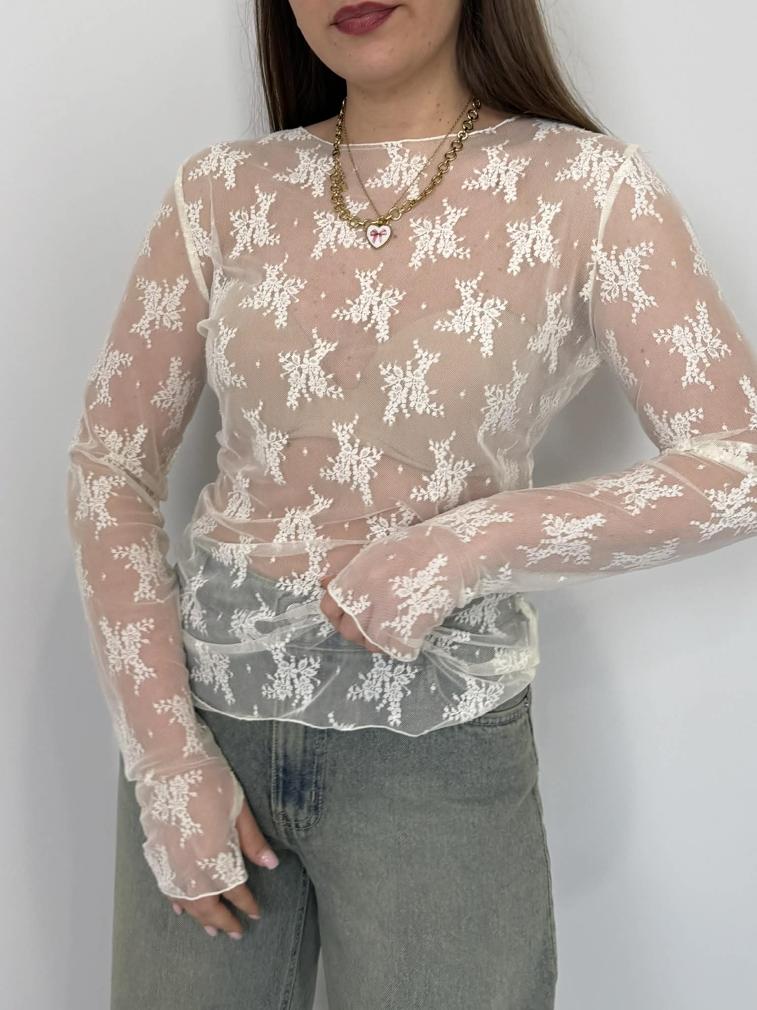 SusyMix - Maglia in pizzo con manicotti bianca
