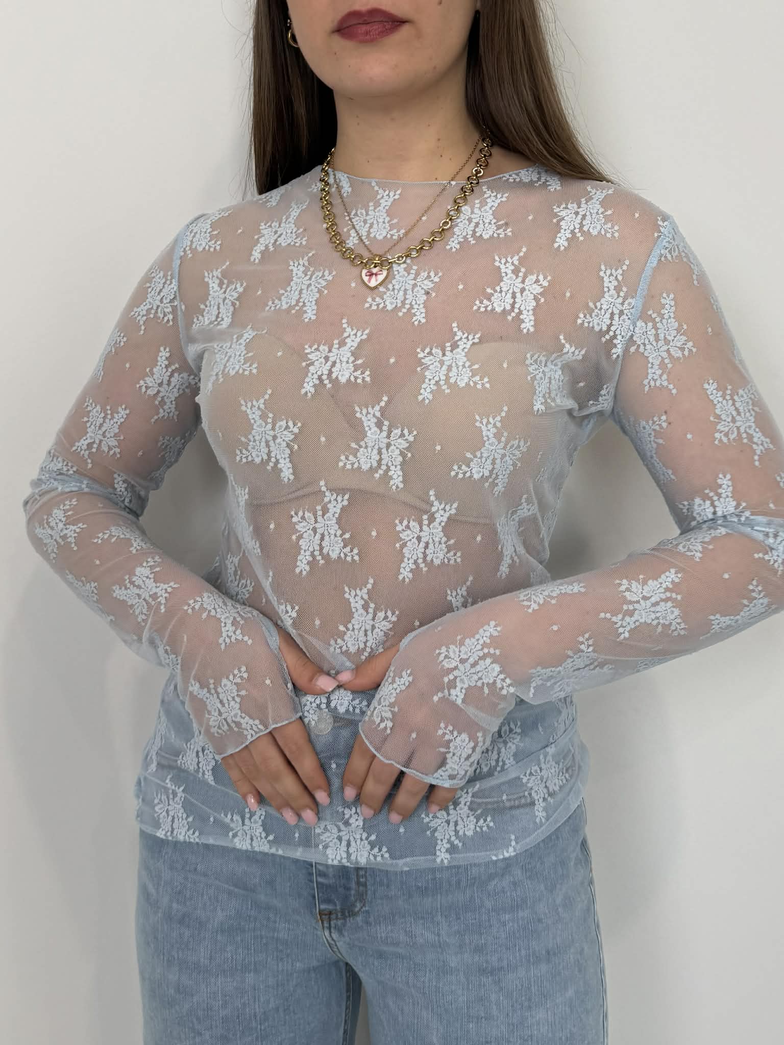 SusyMix - Maglia in pizzo con manicotti azzurro