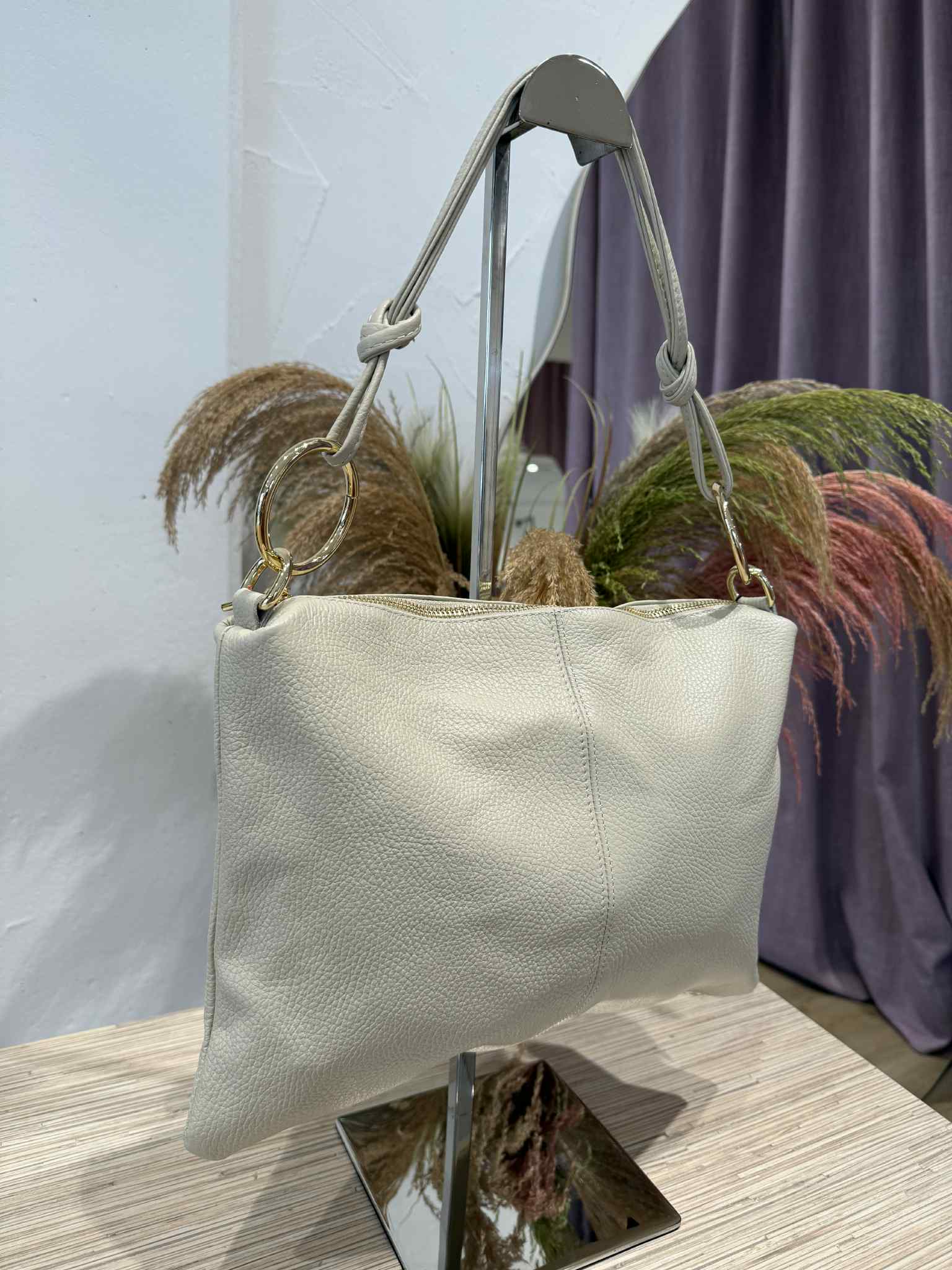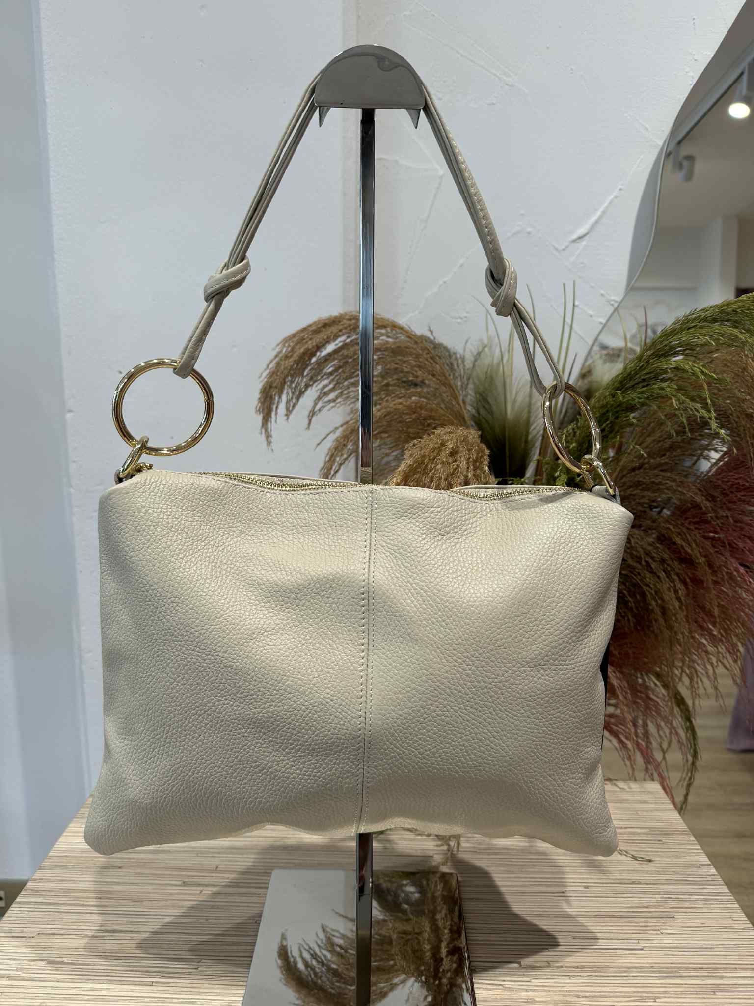 Civico23 - Tracolla con anelli vera pelle panna