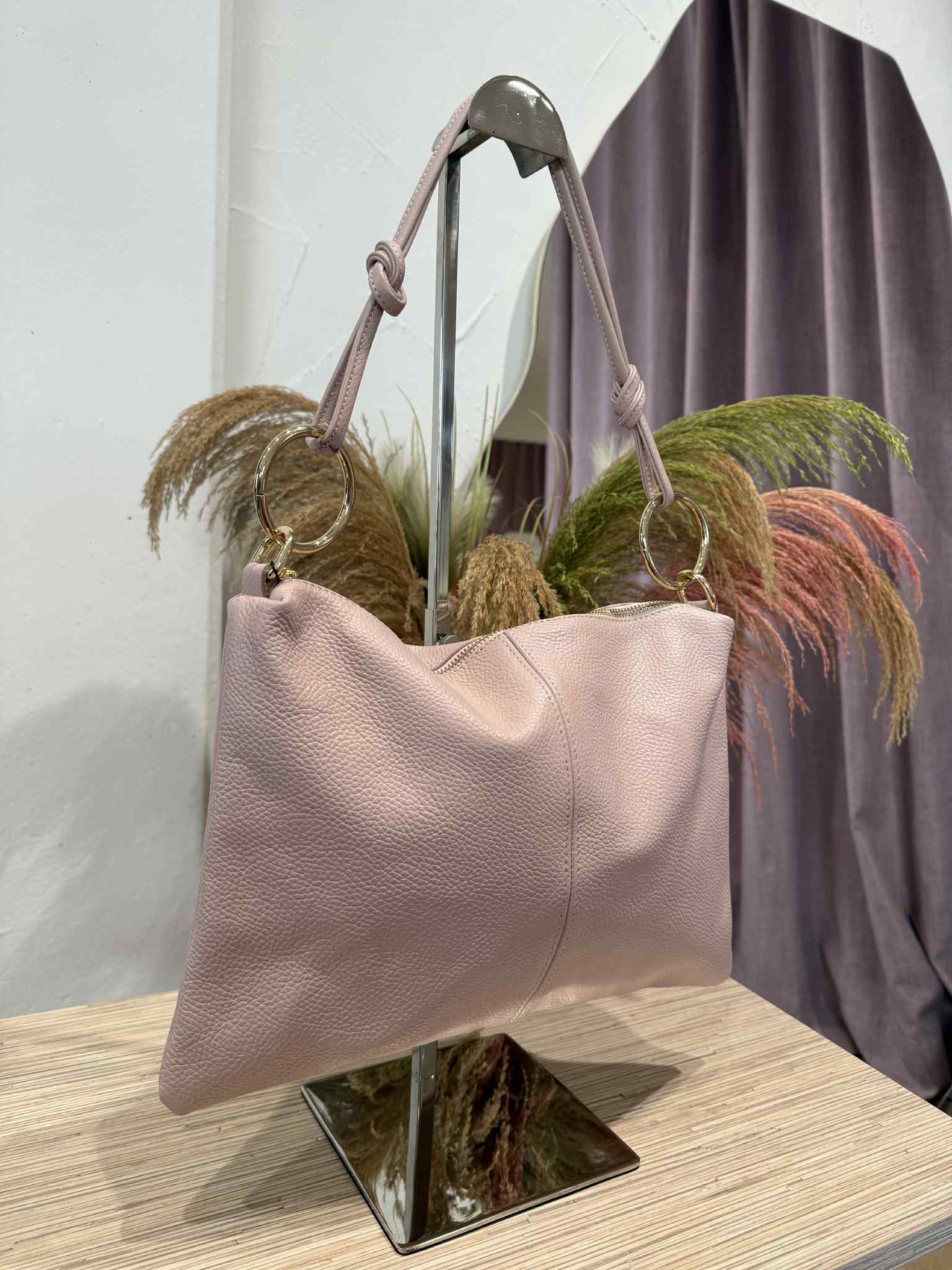 Civico23 - Tracolla con anelli vera pelle rosa