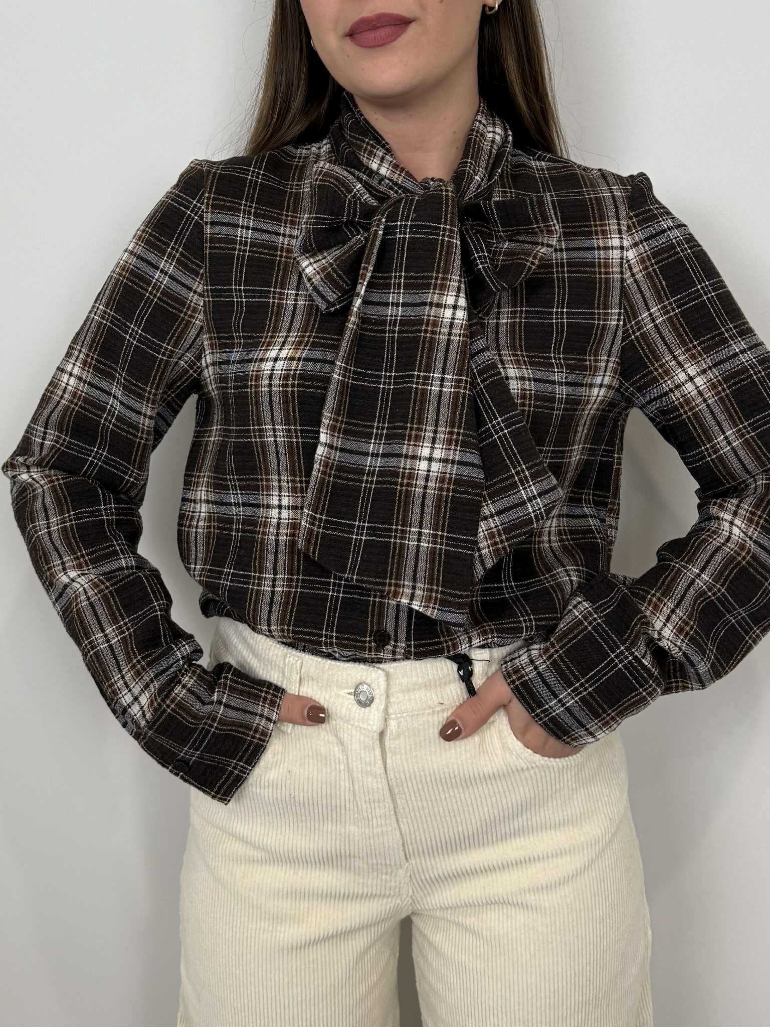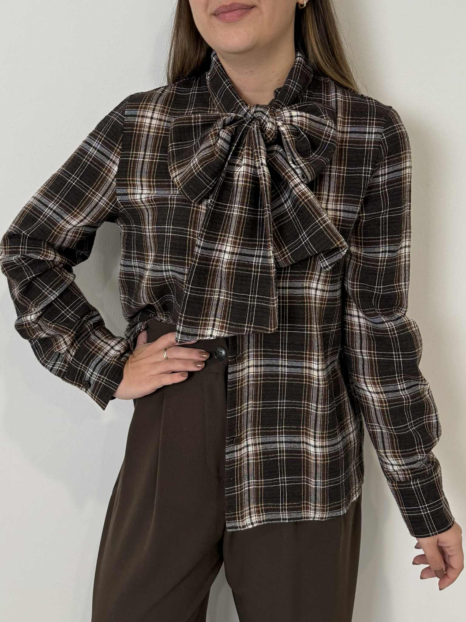 Haveone - Camicia check con fiocco