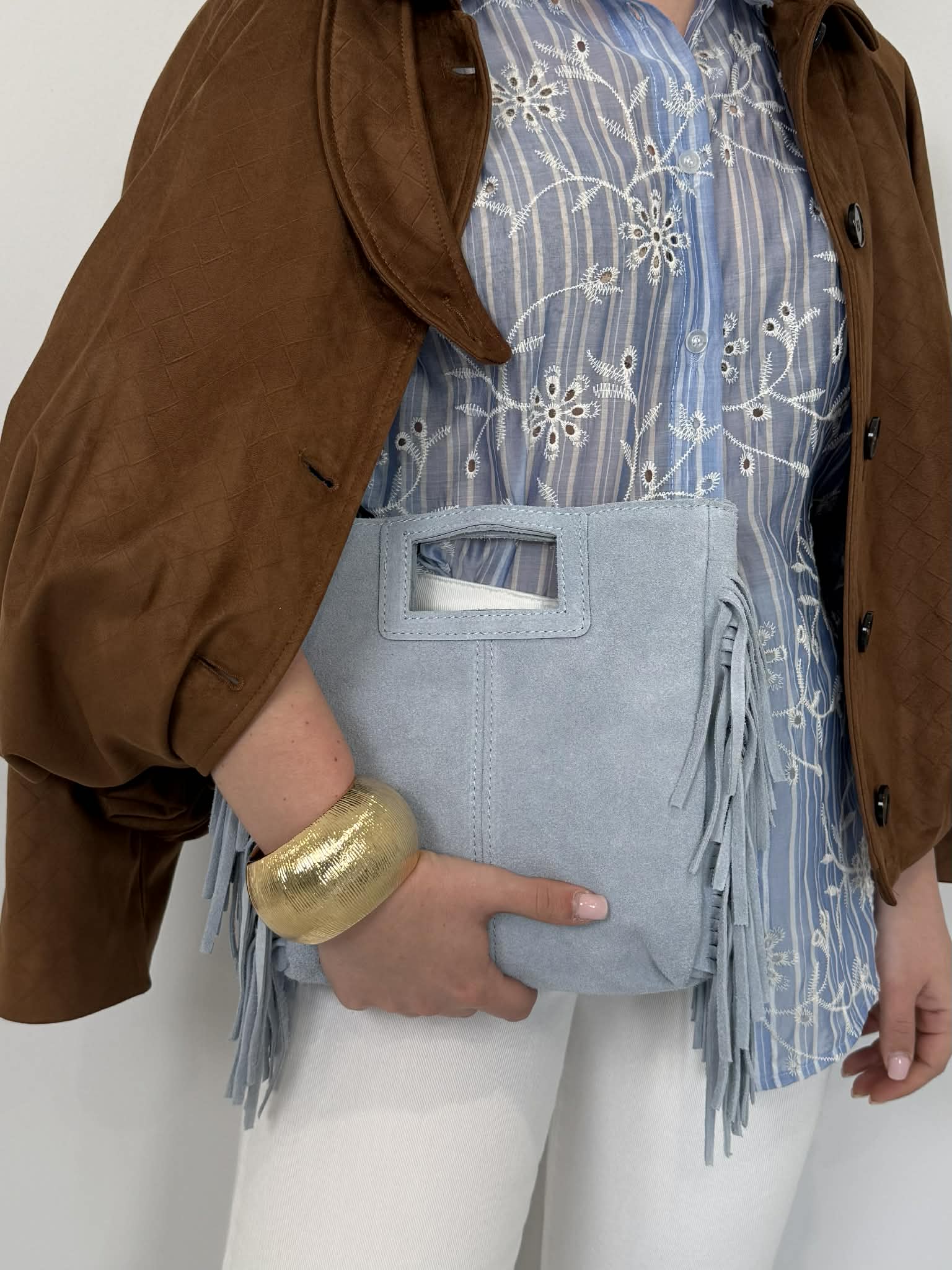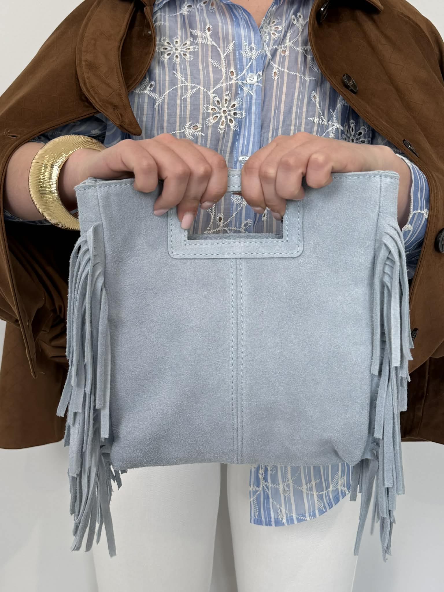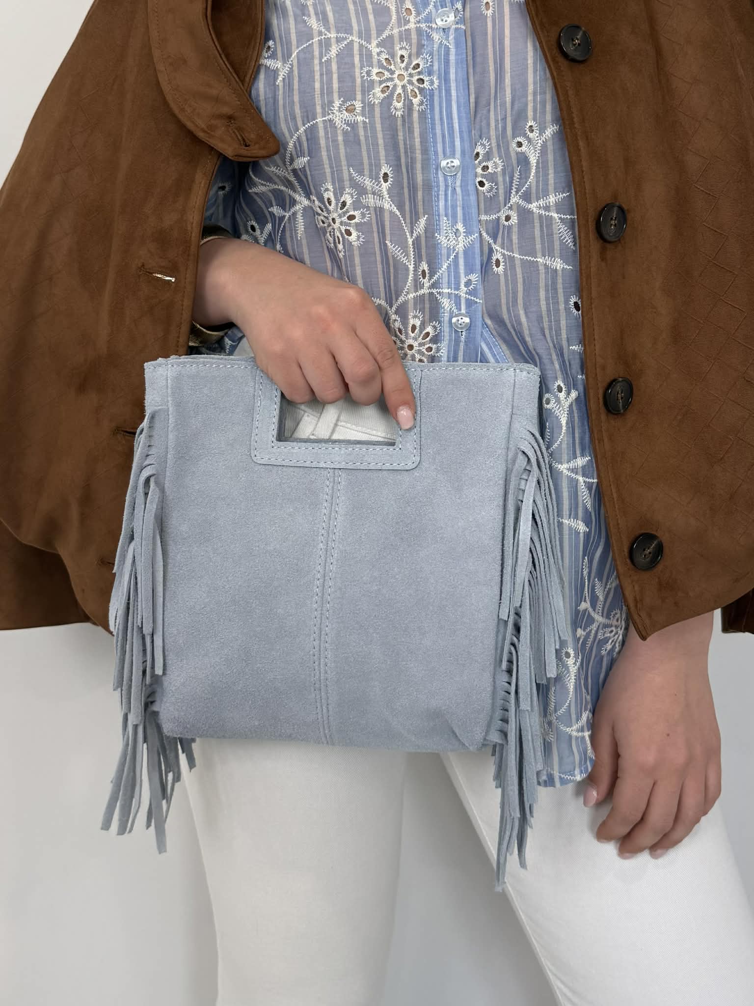 Civico23 - Tracolla vera pelle con frange azzurra