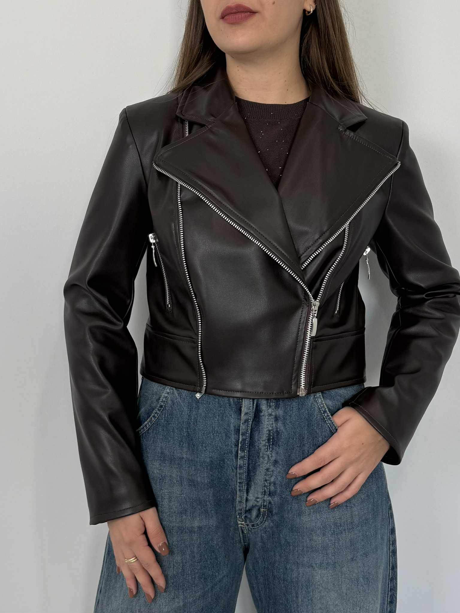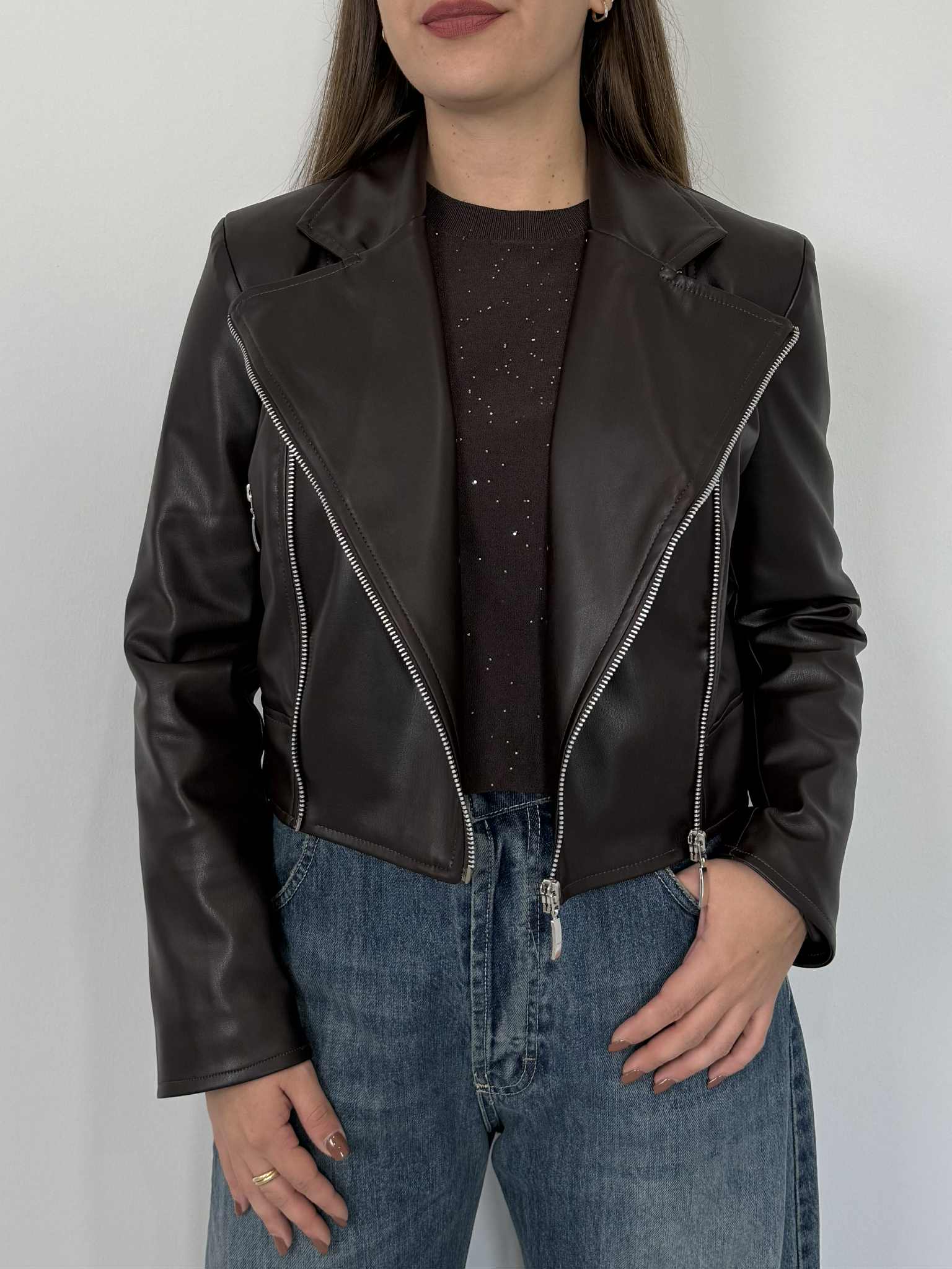 SusyMix - Giubbino ecopelle con zip bordeaux