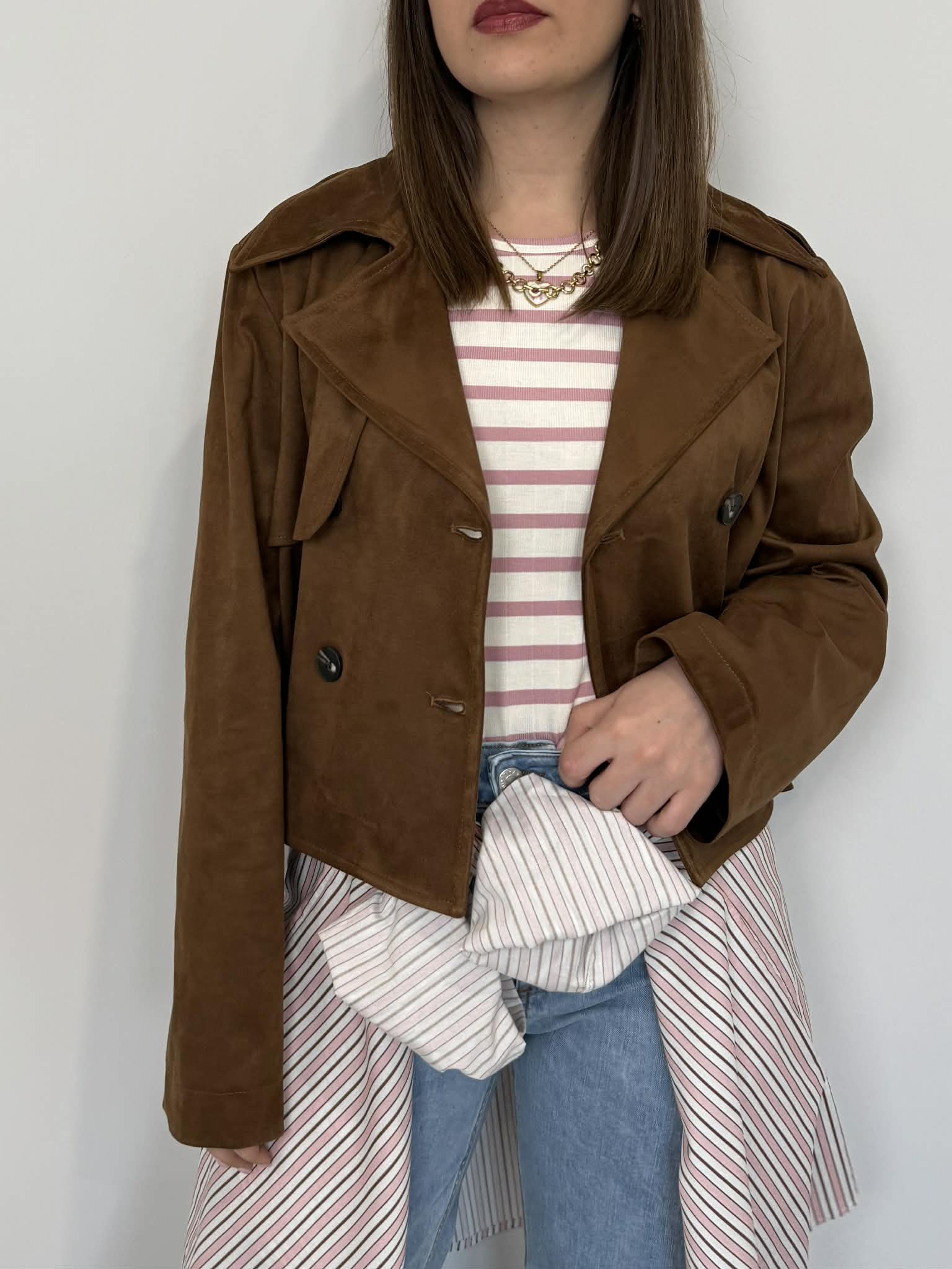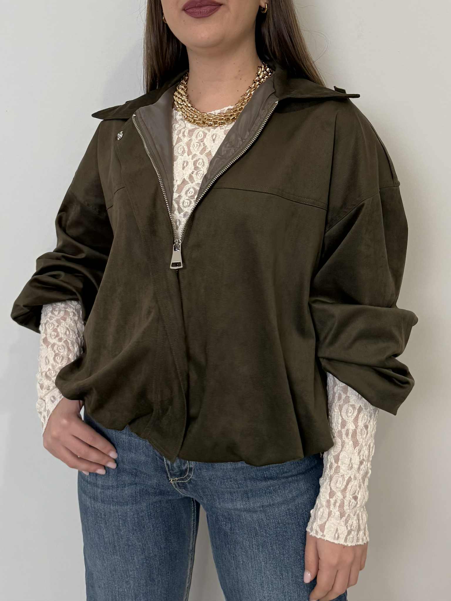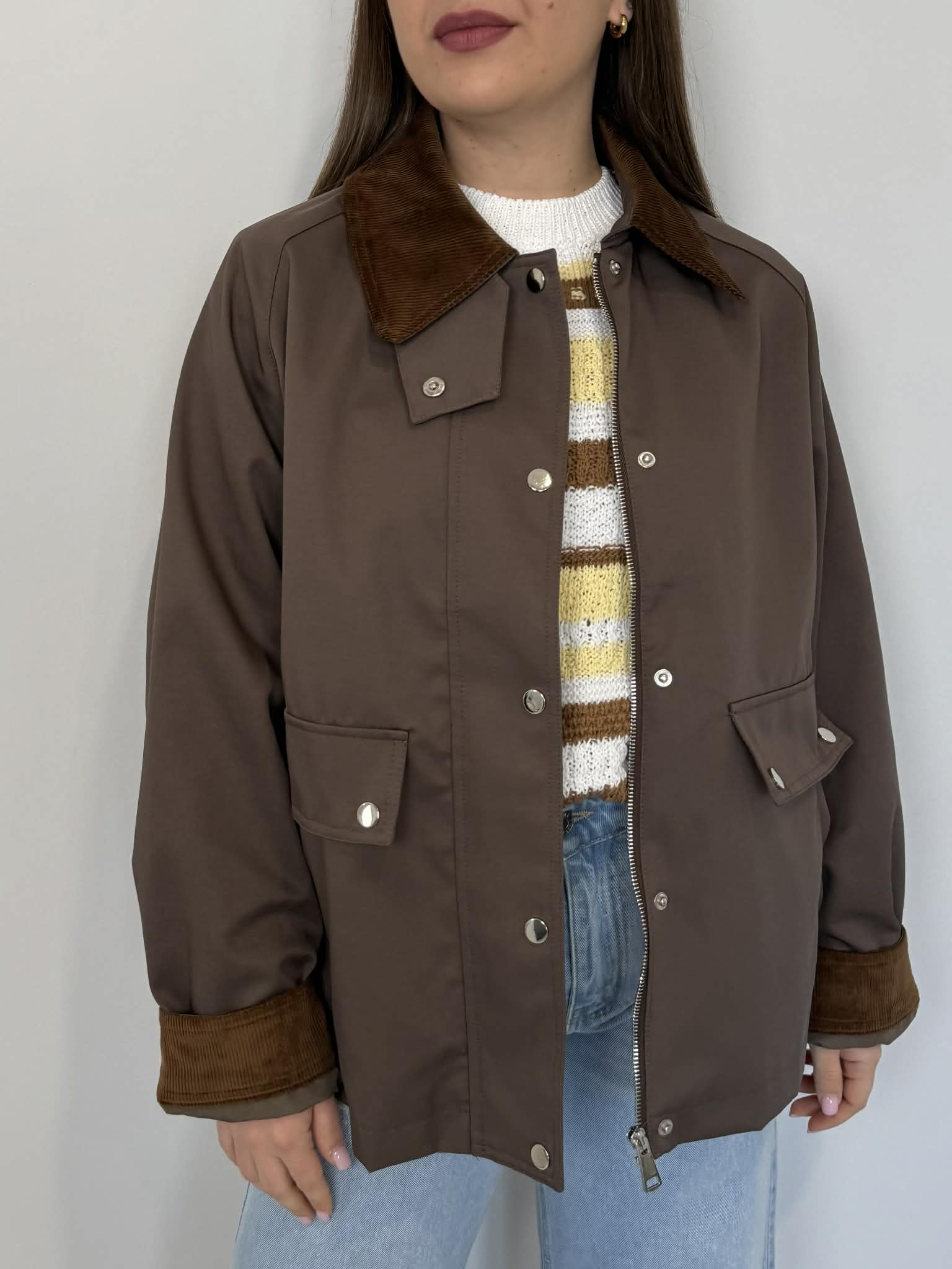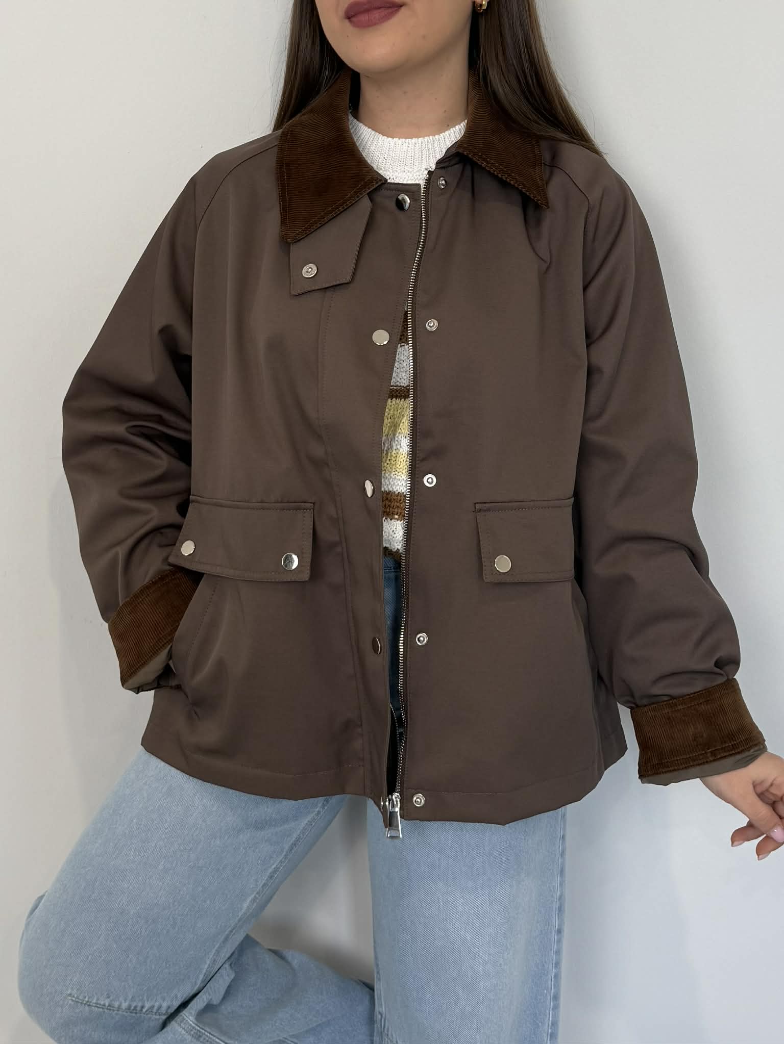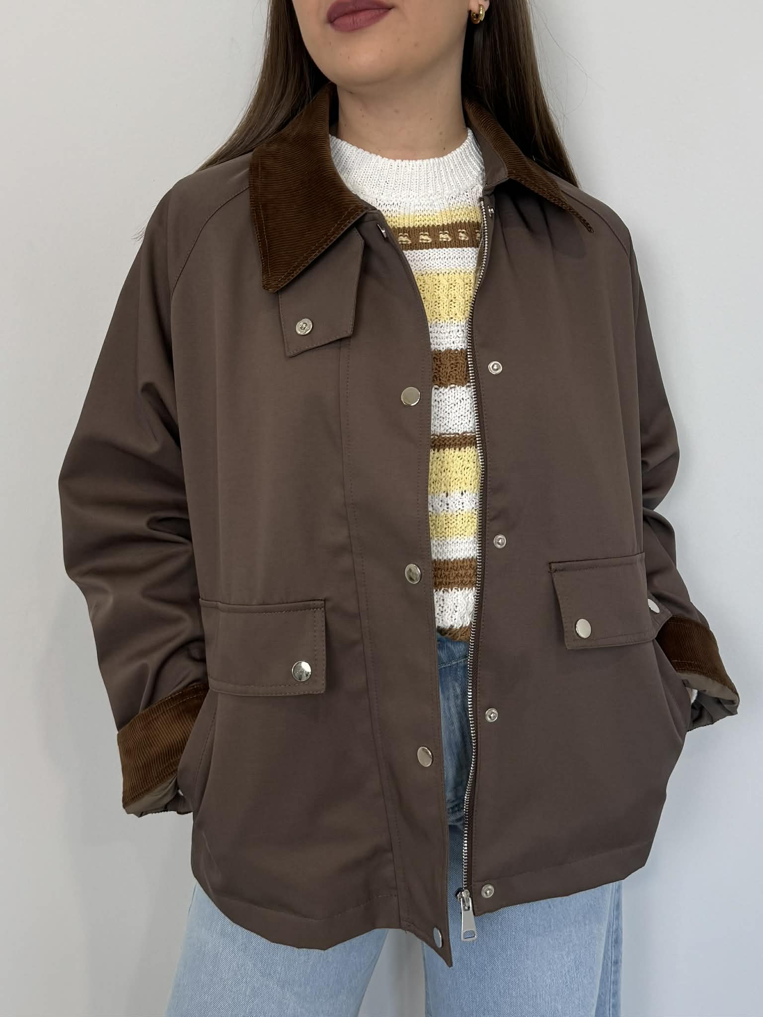 Haveone - Giacchetto in cotone moro con colletto a coste