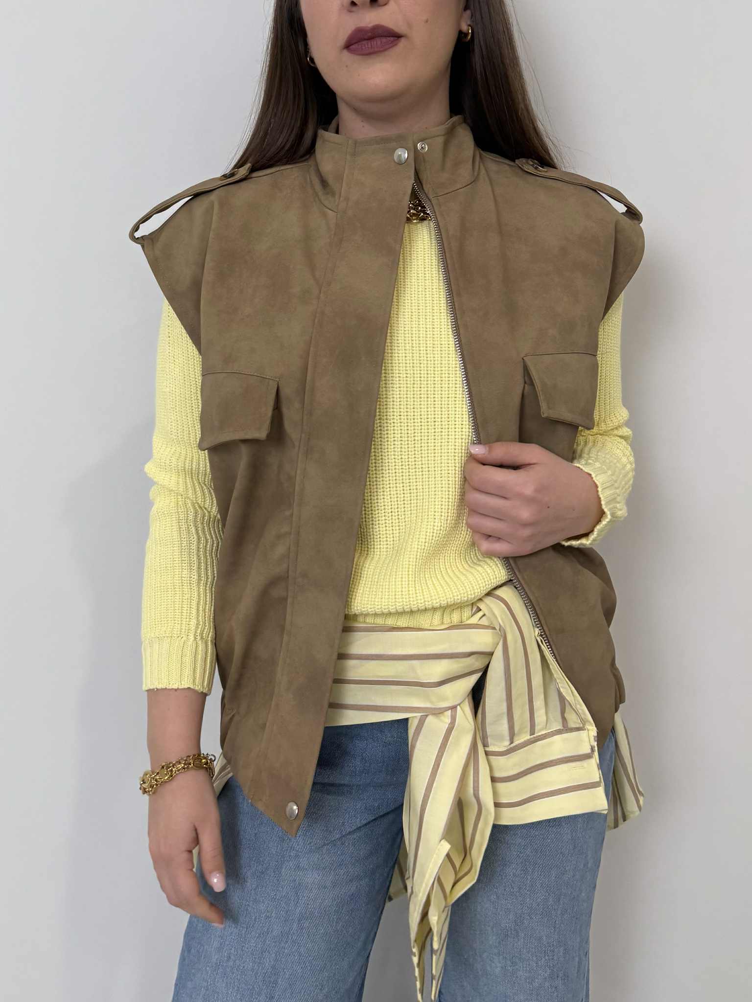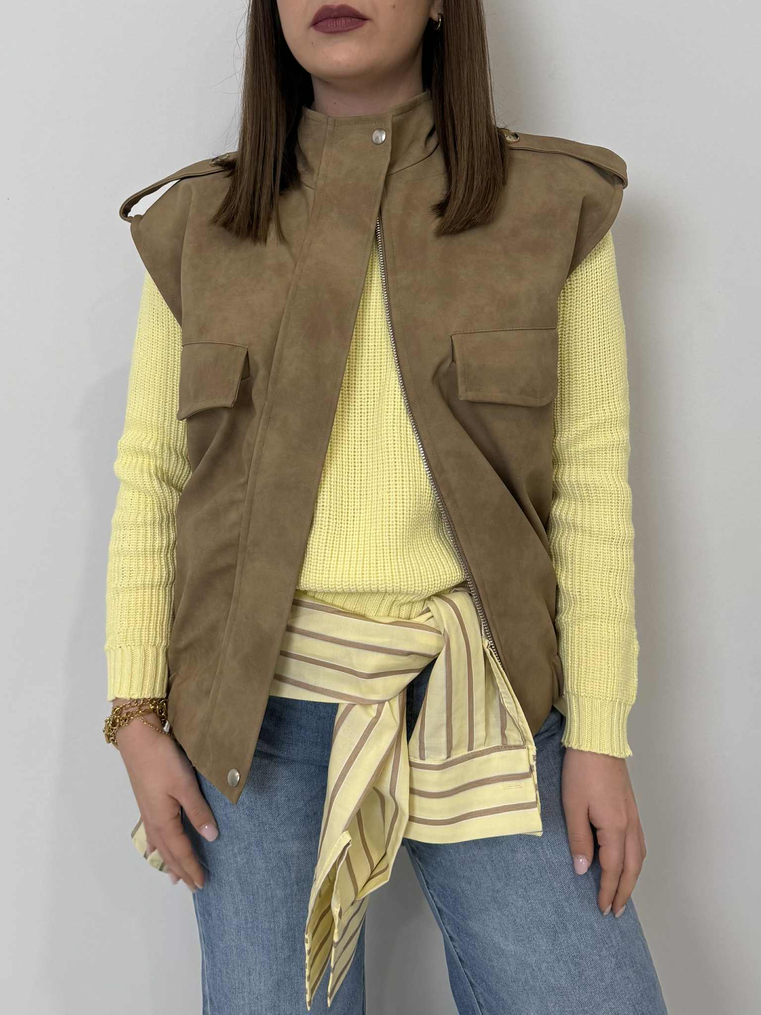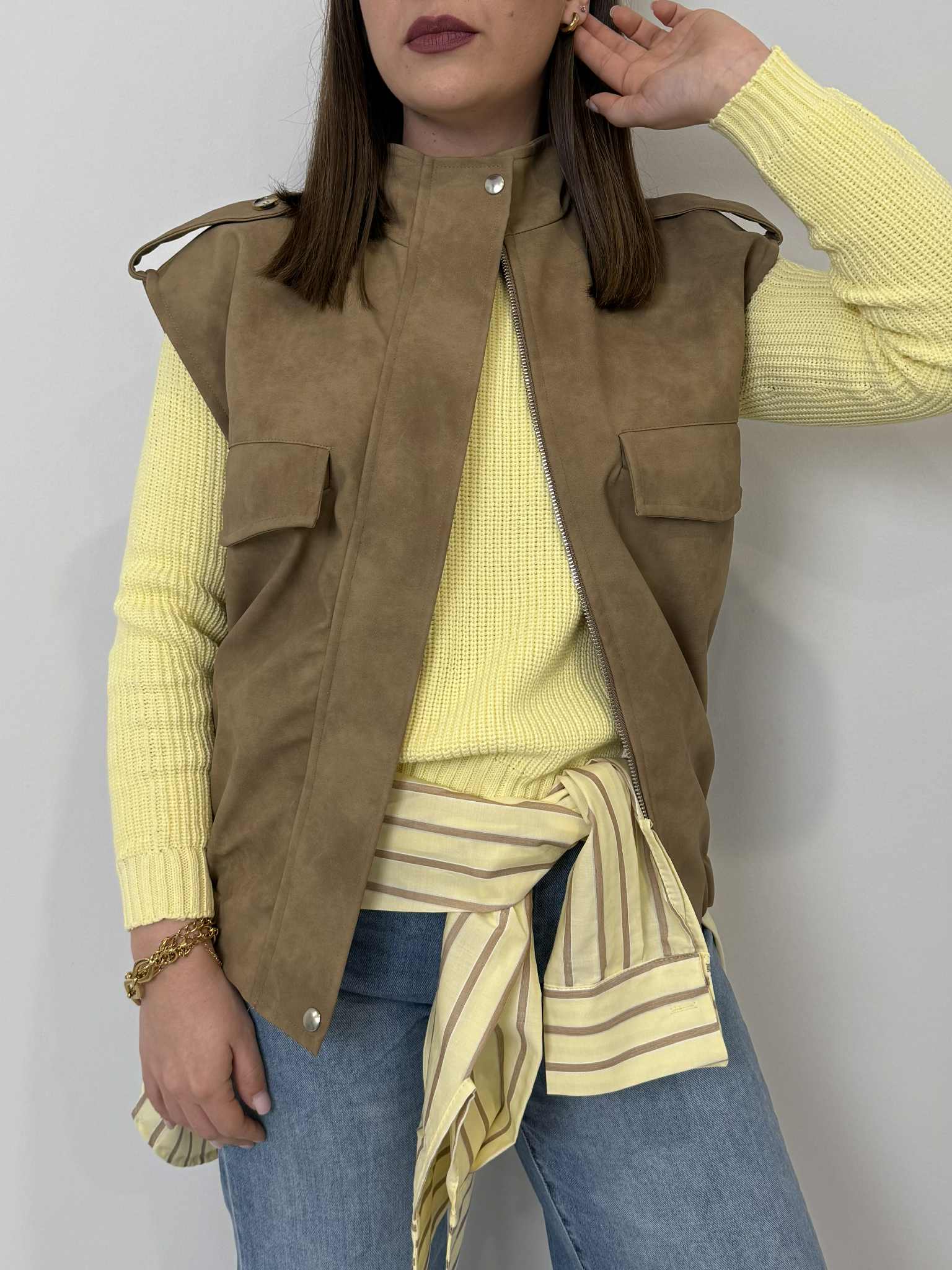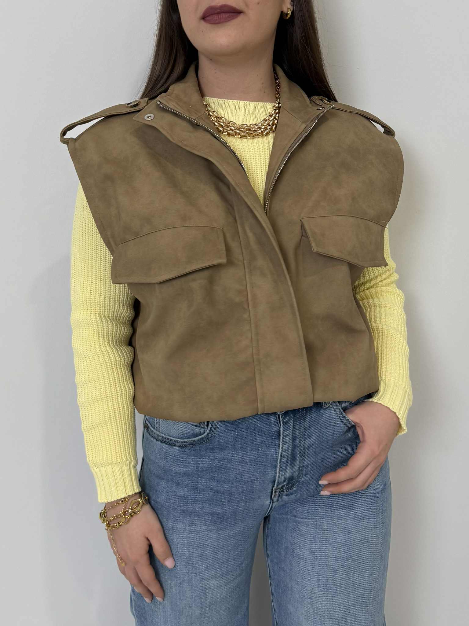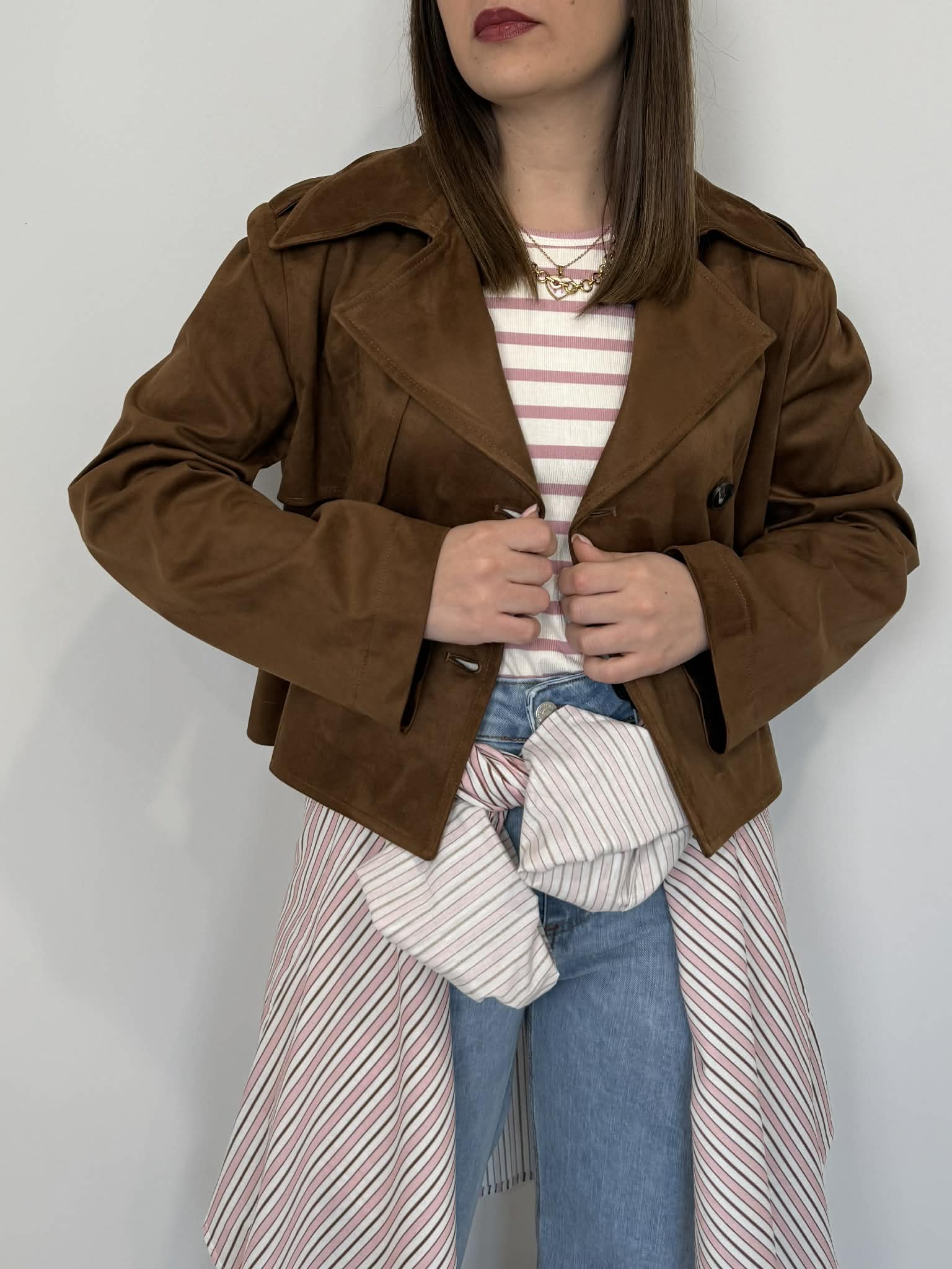 Haveone - Giacchetto in cotone moro con colletto a coste