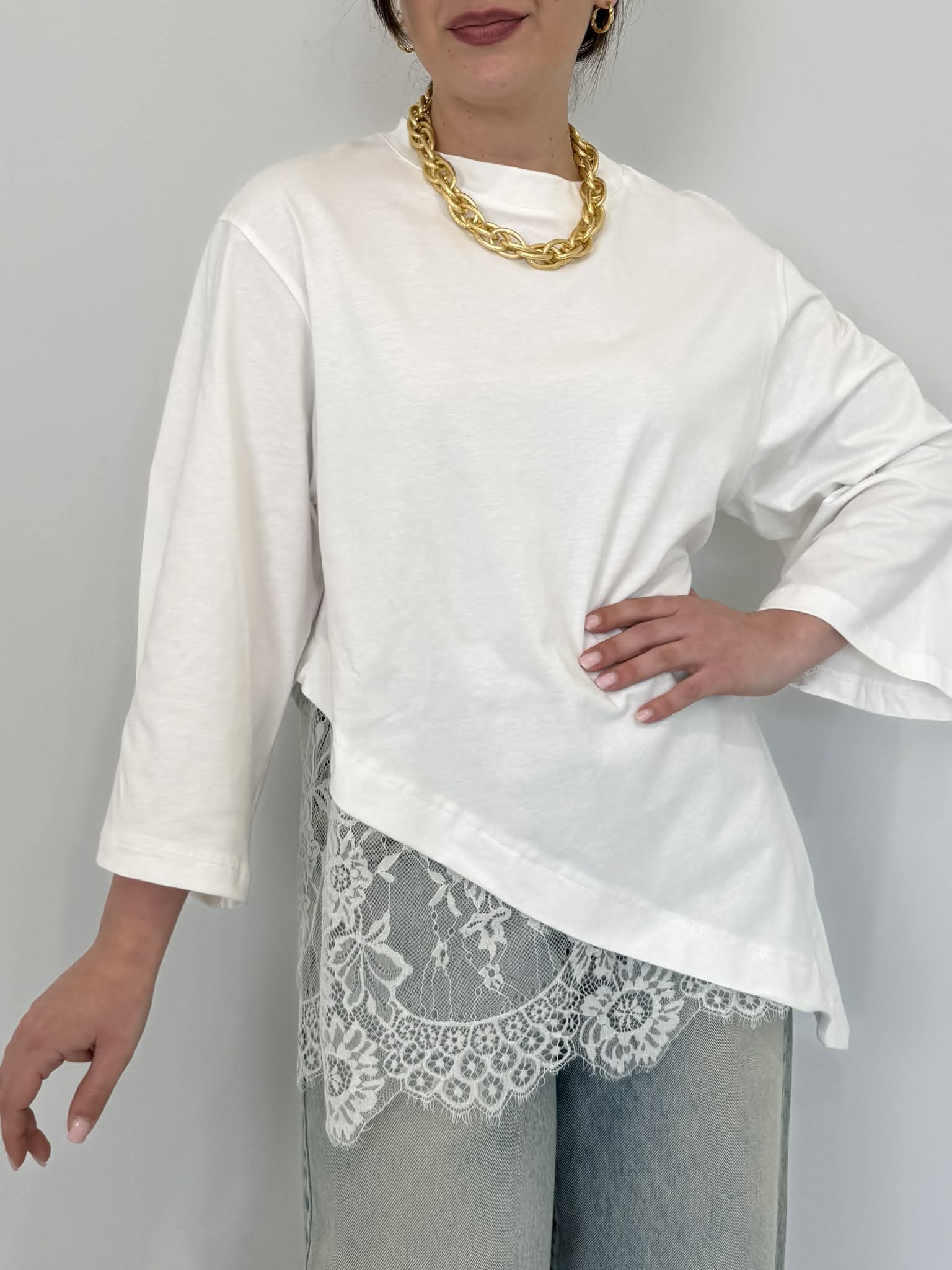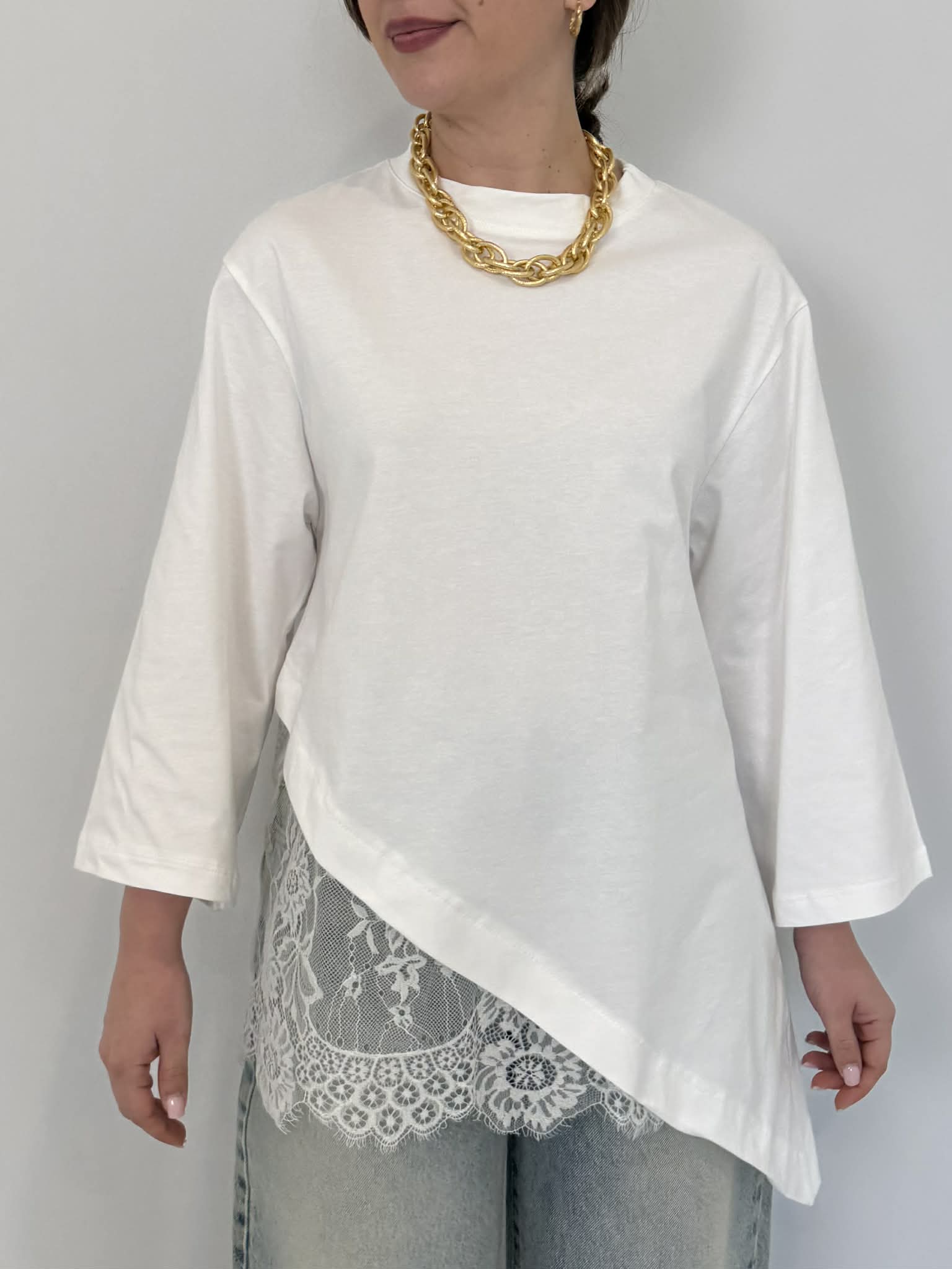 Haveone - T-shirt con inserto in pizzo