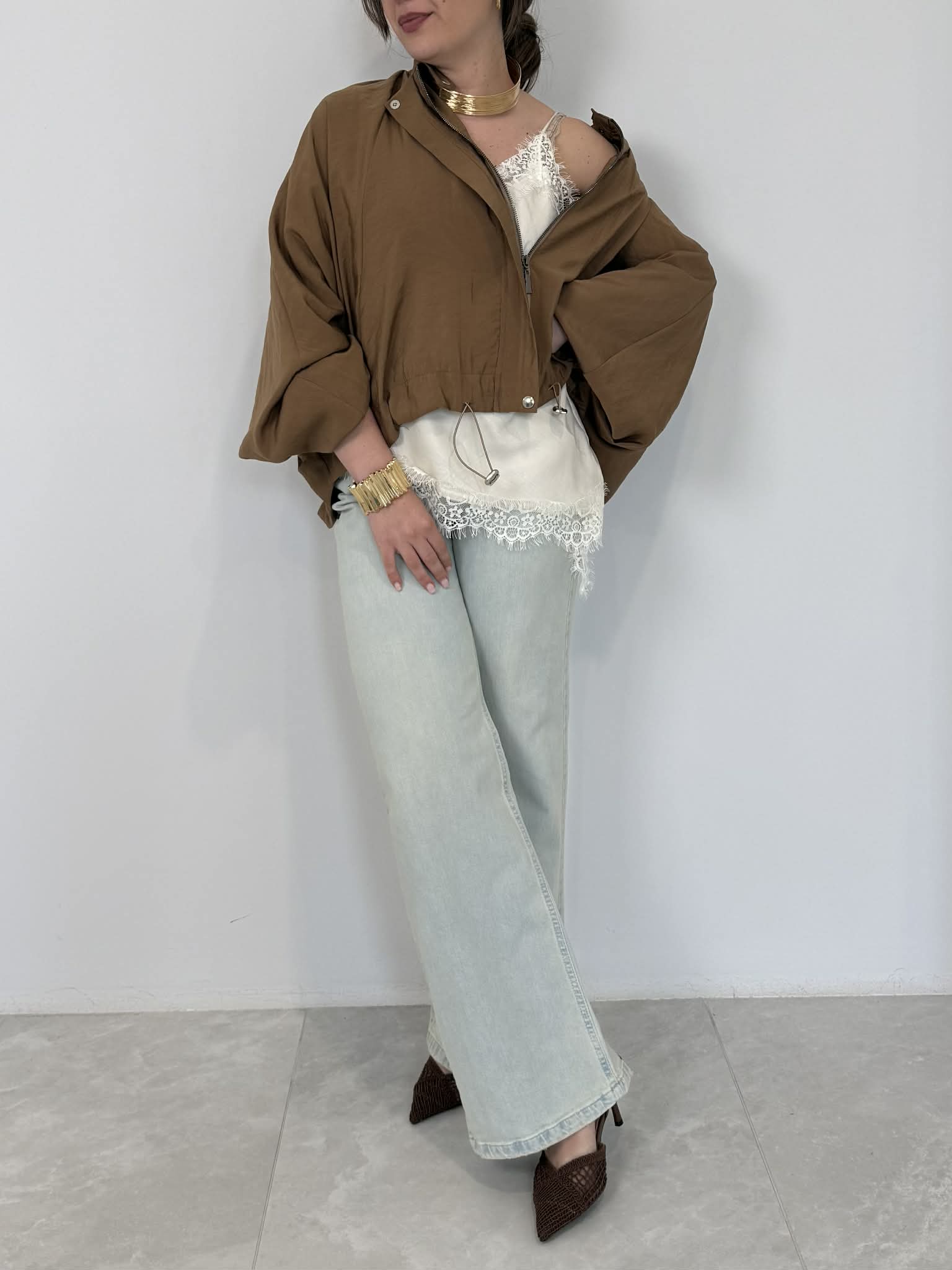 Haveone - Corpetto in pizzo beige