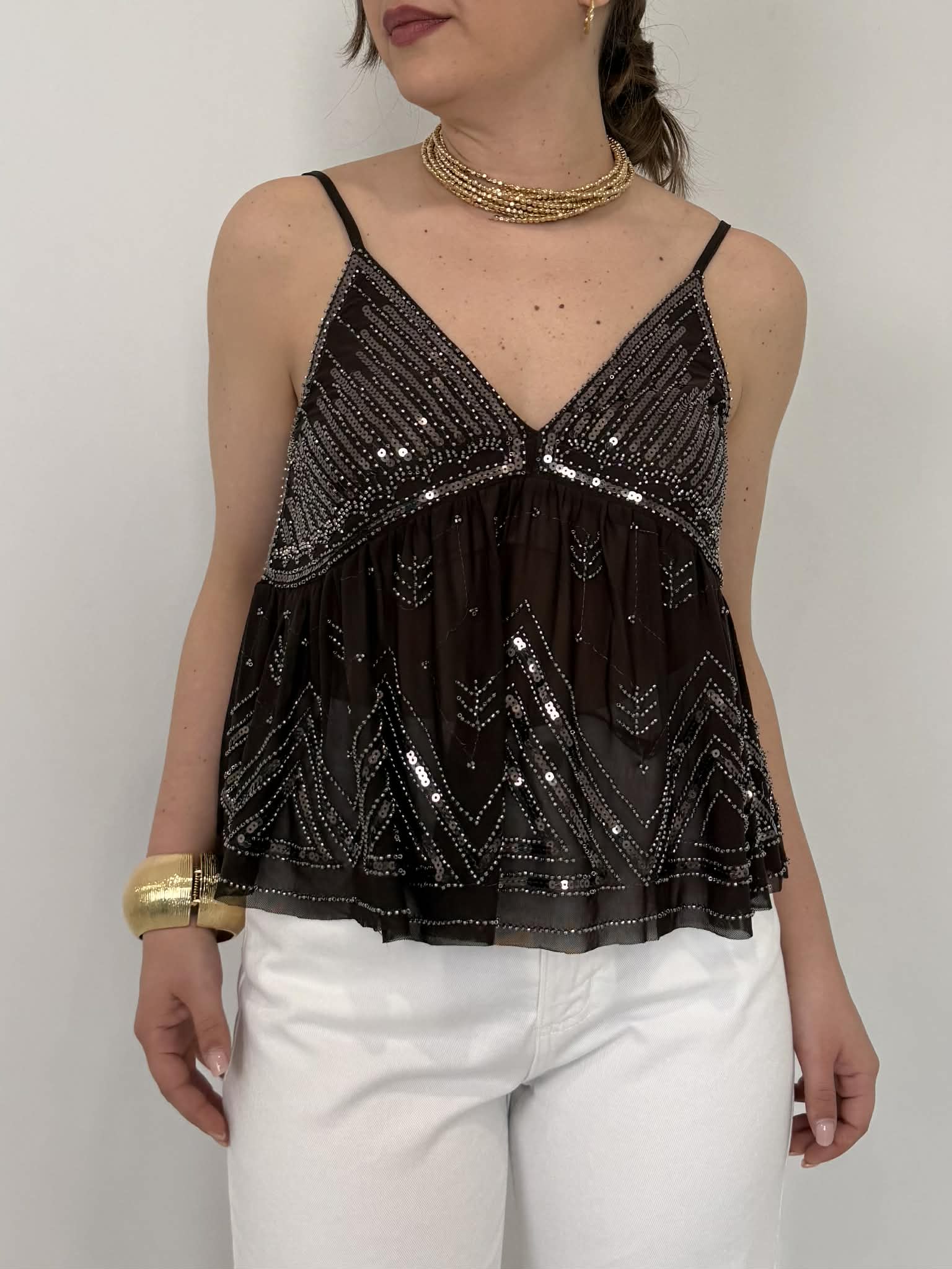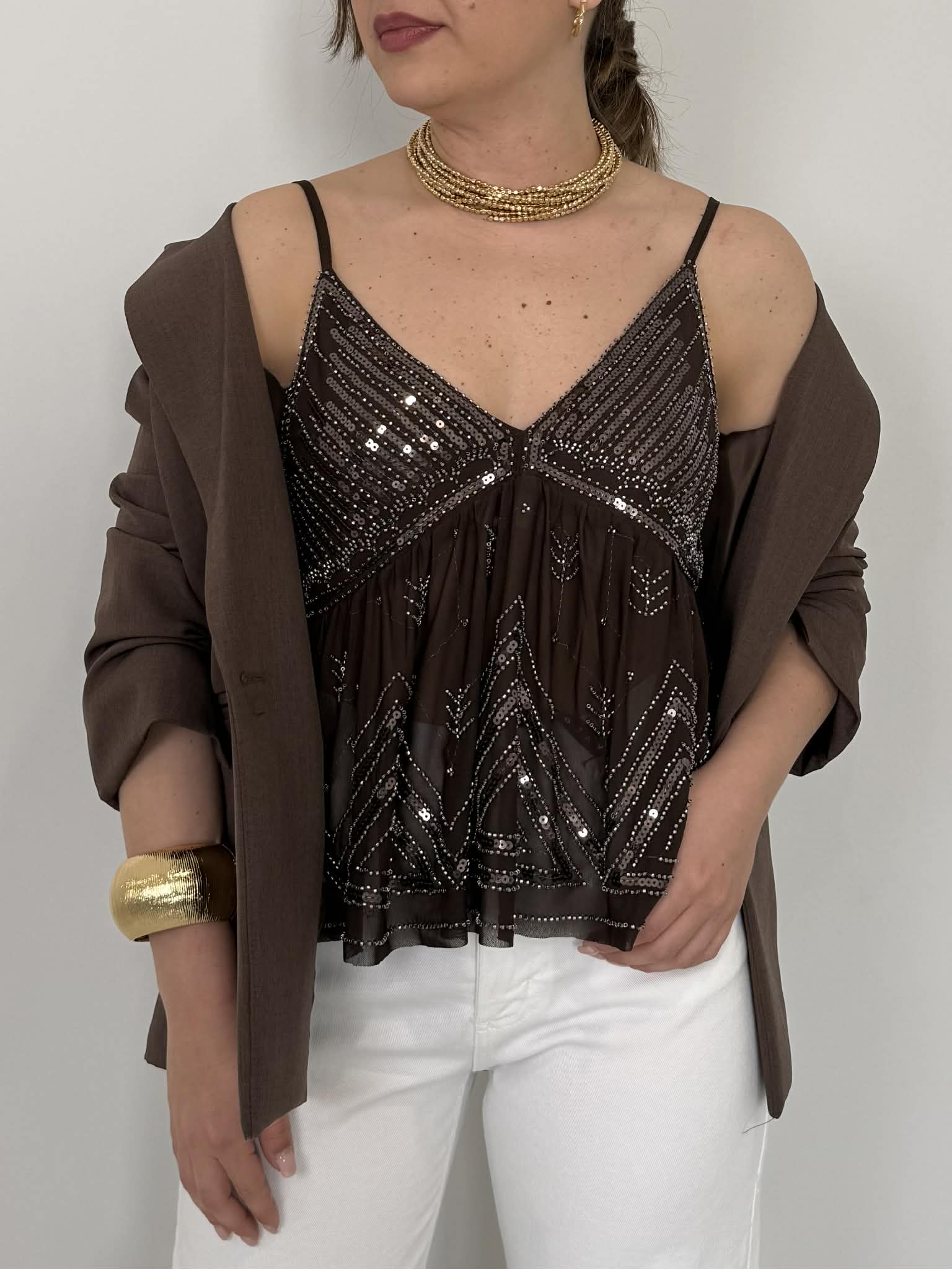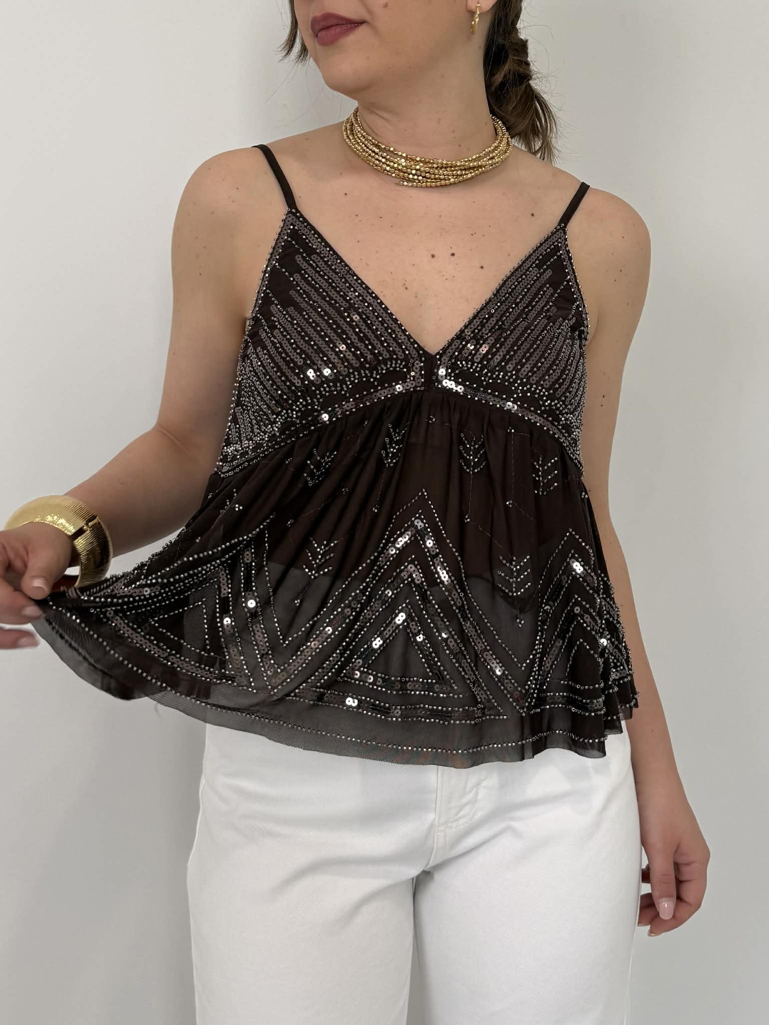 Haveone - Top caffè paillettes e perline