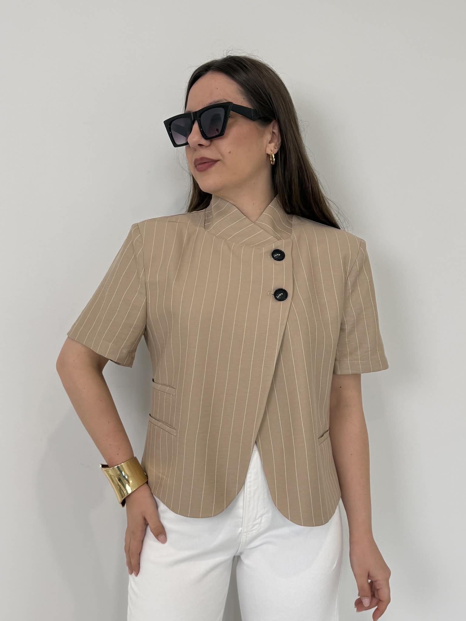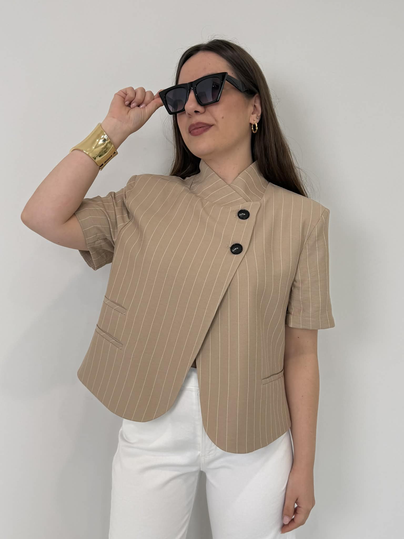 Haveone - Giacca Lady gessata sabbia
