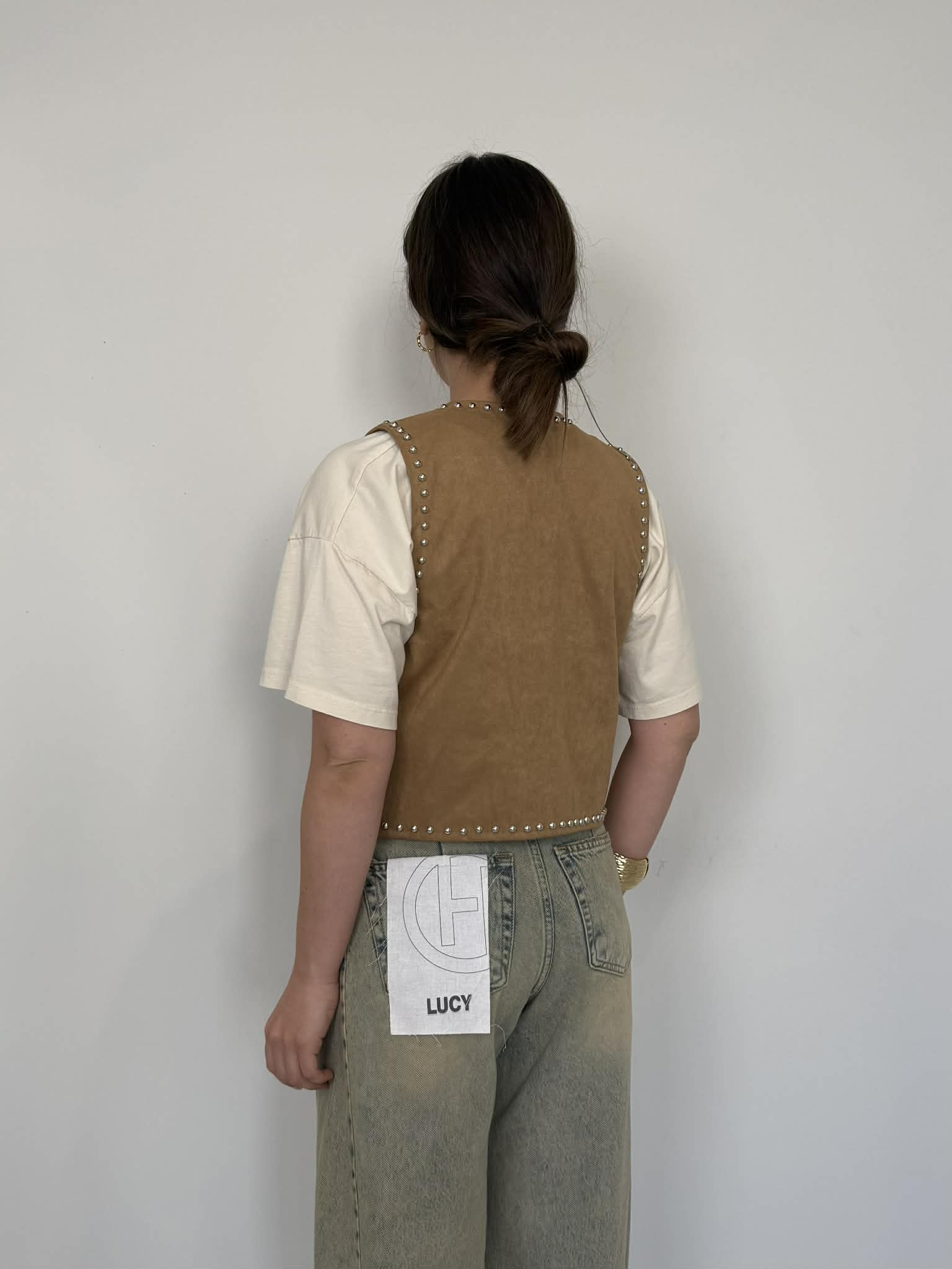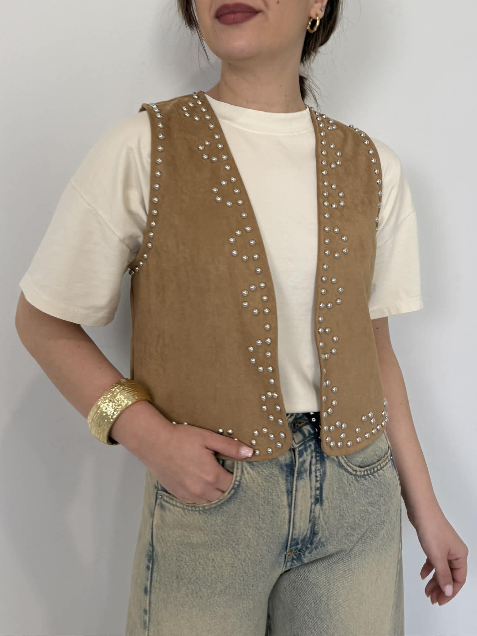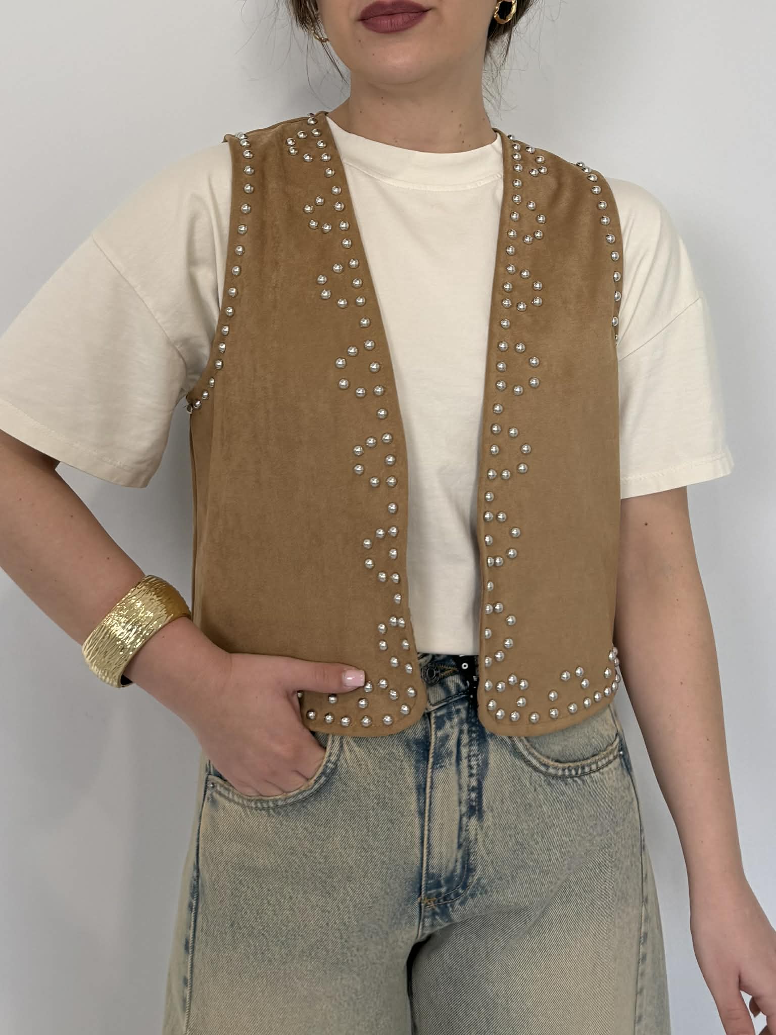 Haveone - Gilet in suede con borchie