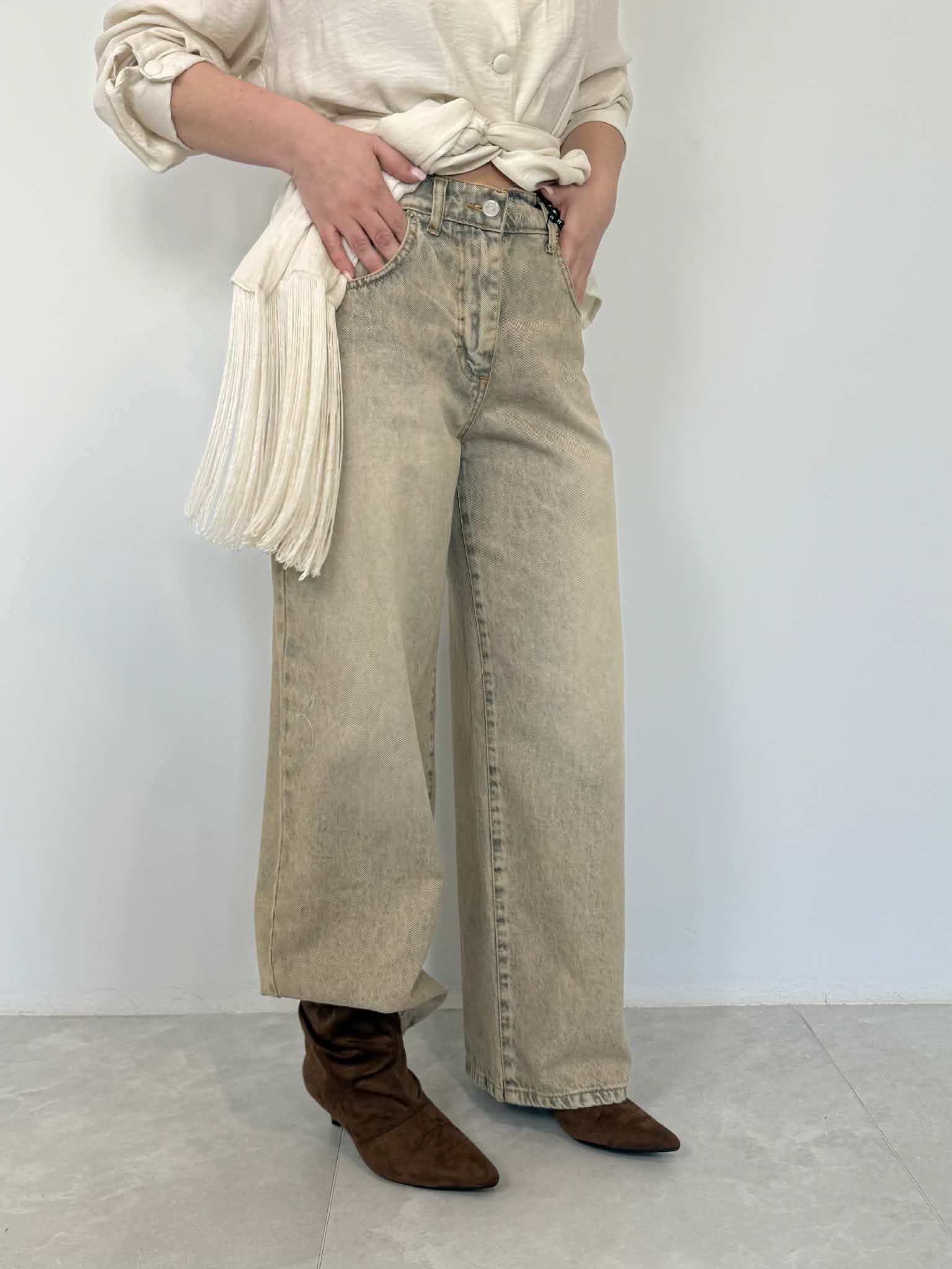 Haveone - Jeans bella invecchiato beige