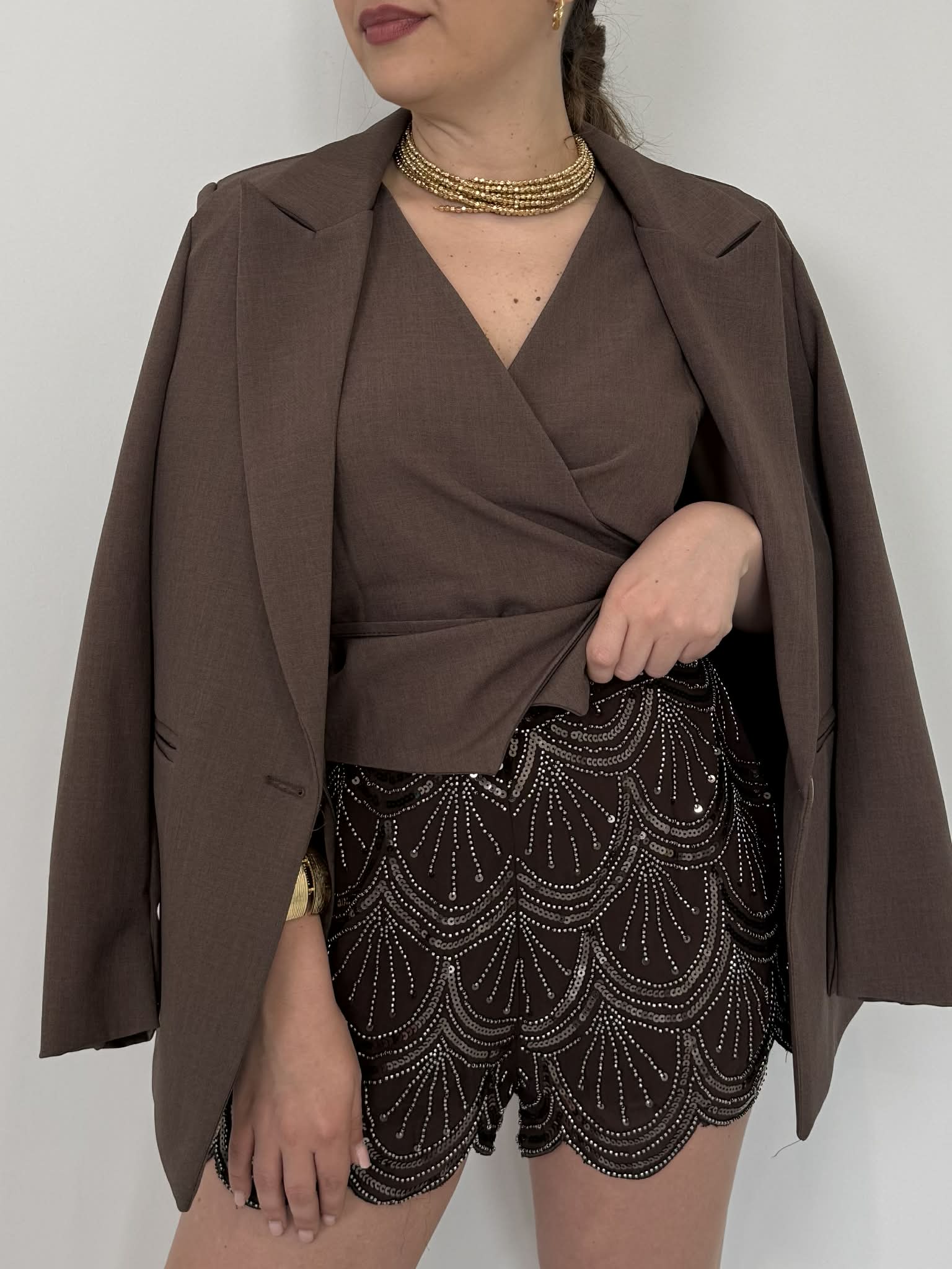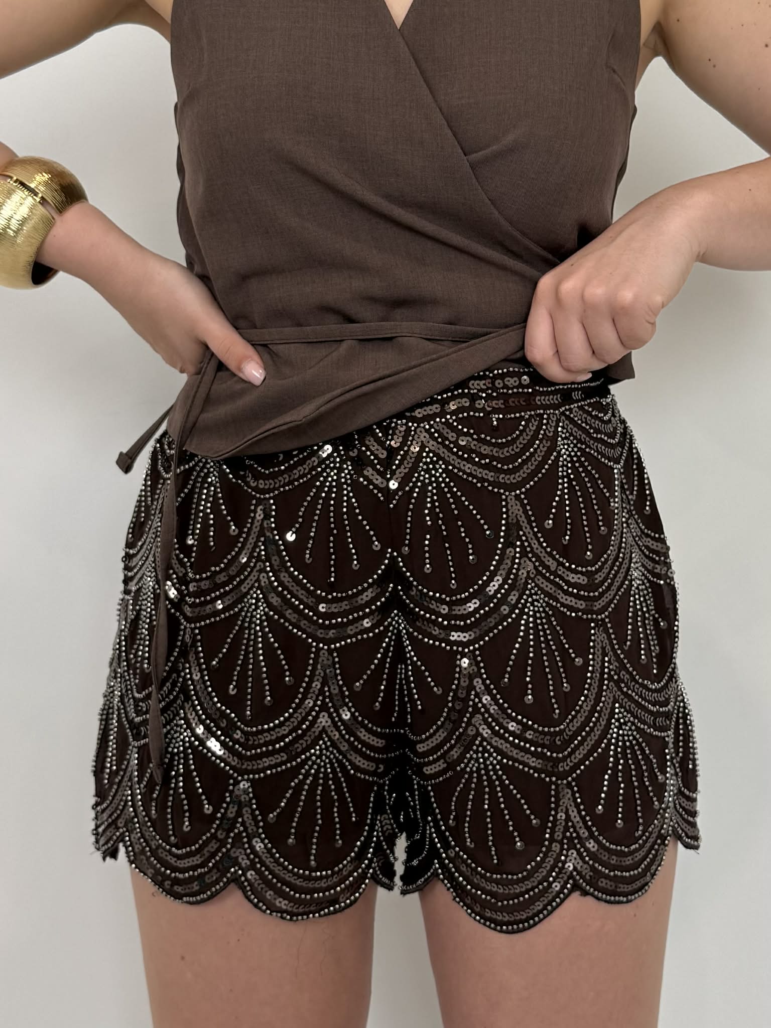 Haveone - Short caffè paillettes e perline