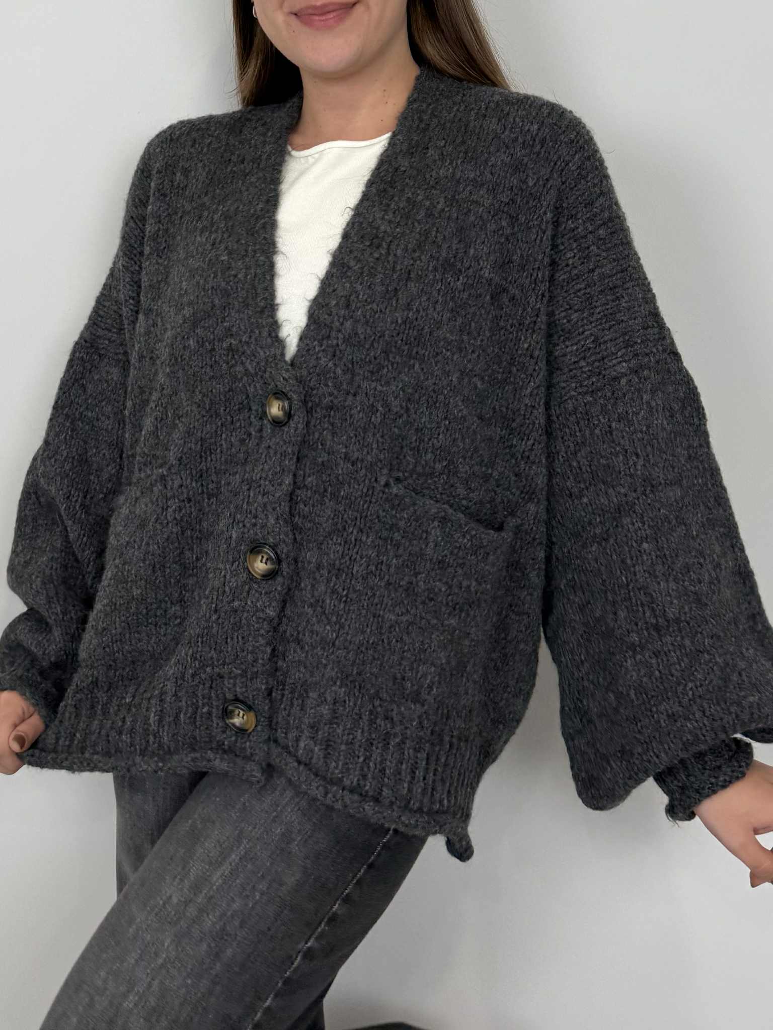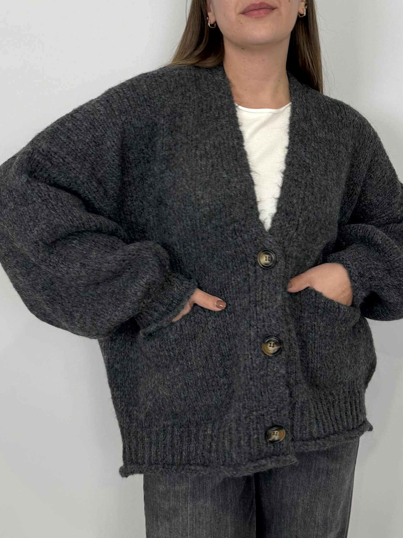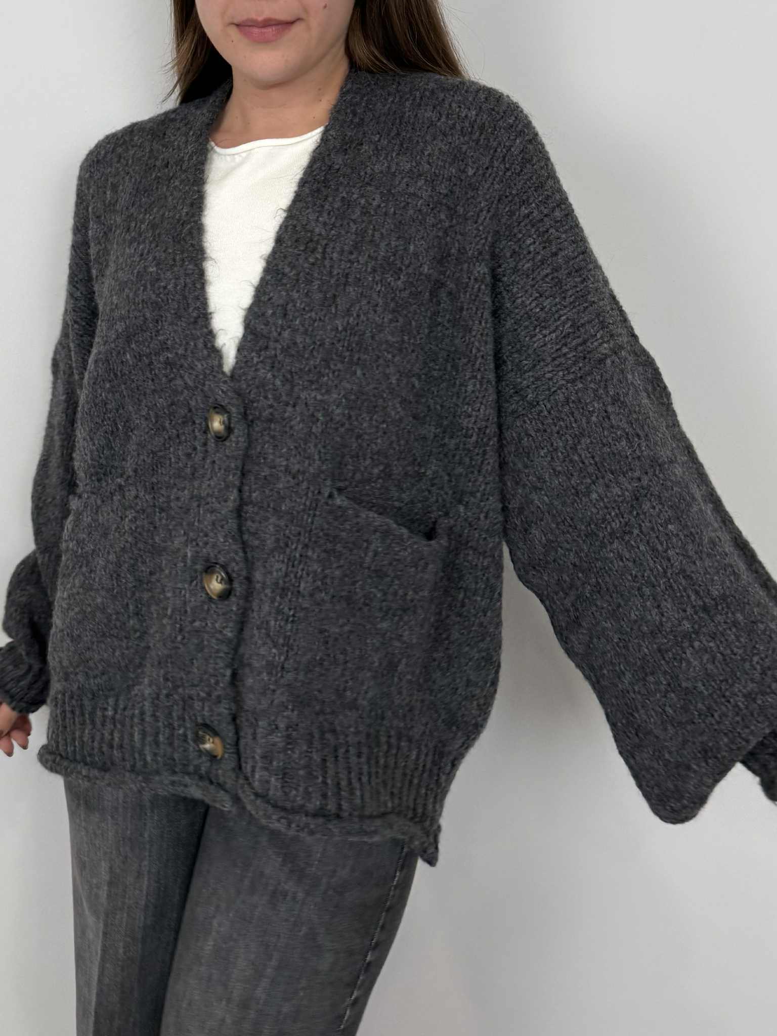 Haveone - Cardigan bottoni antracite