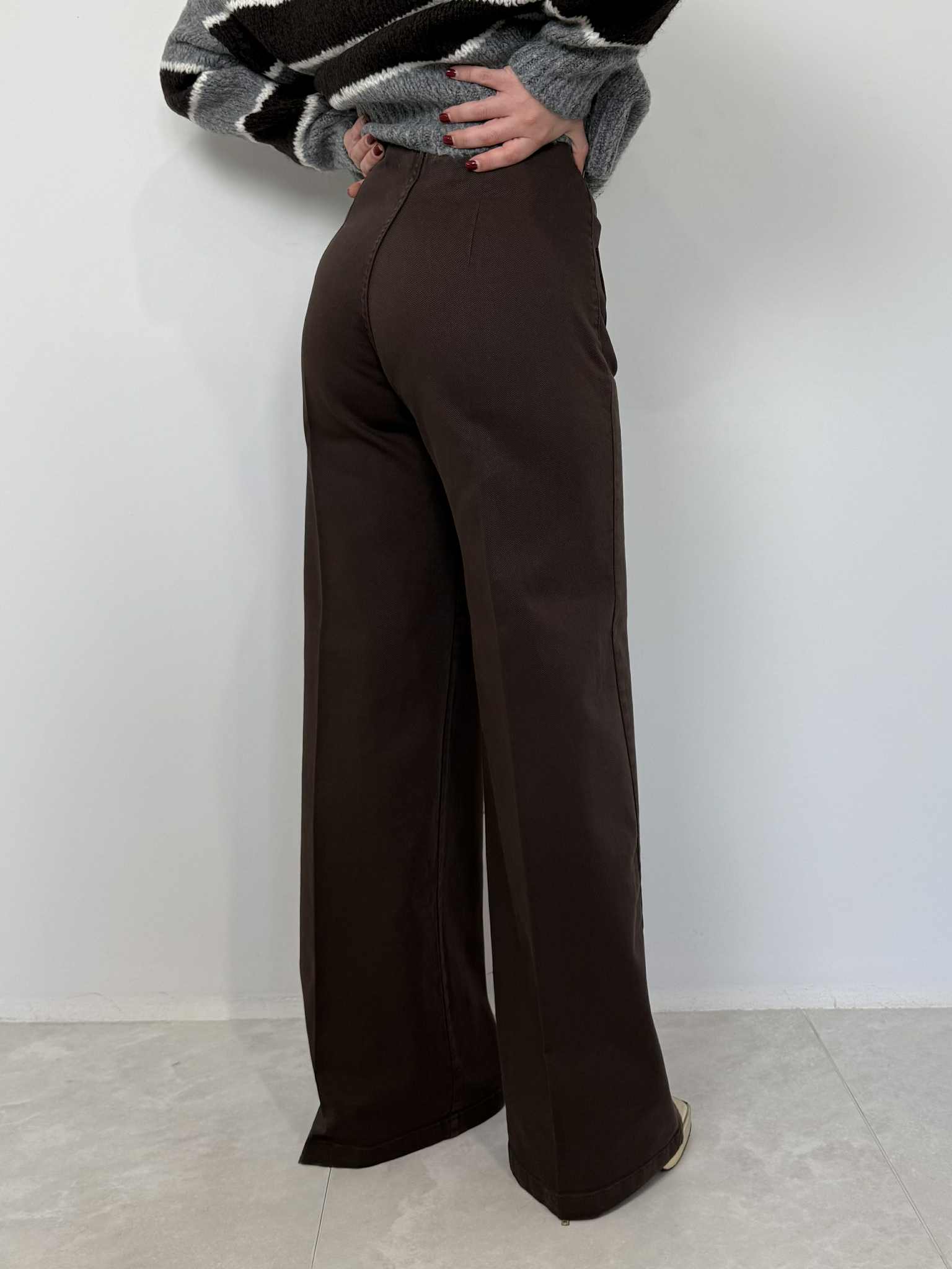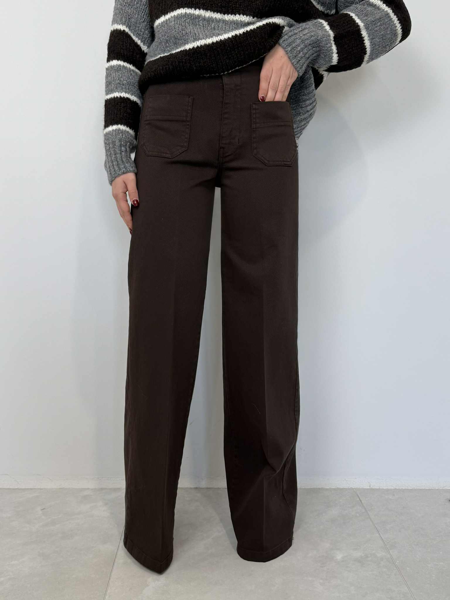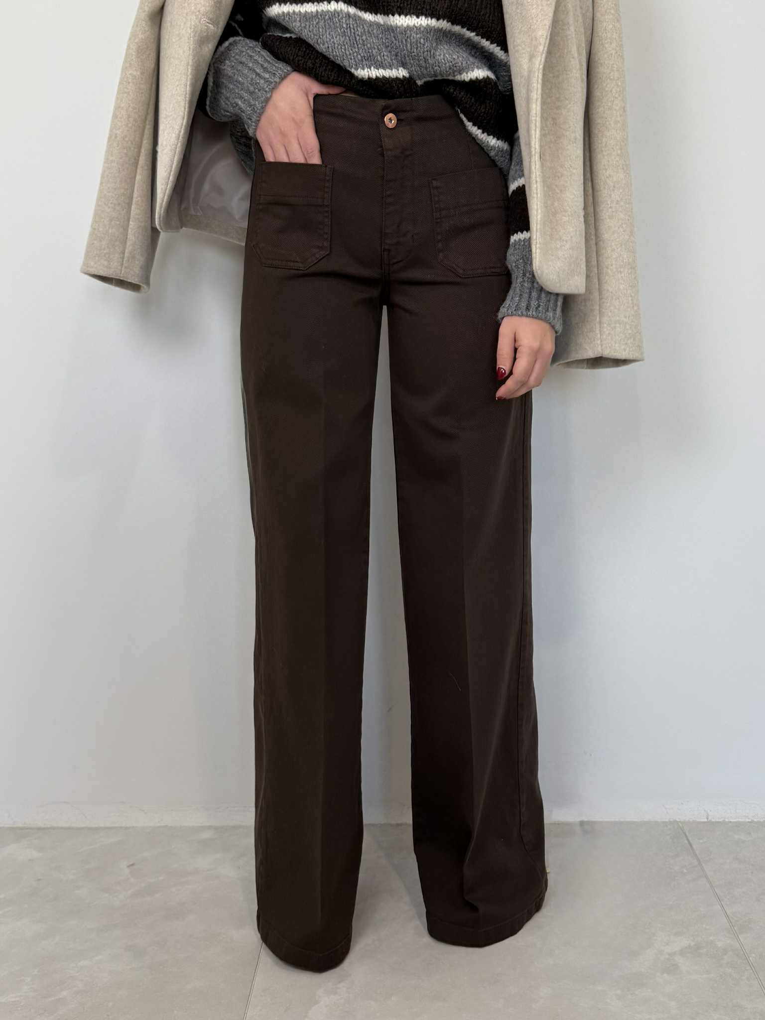 Tensione In - Jeans palazzo con tasche frontali moro
