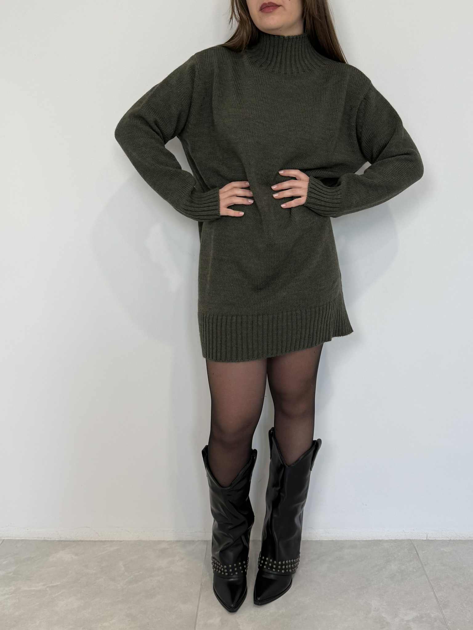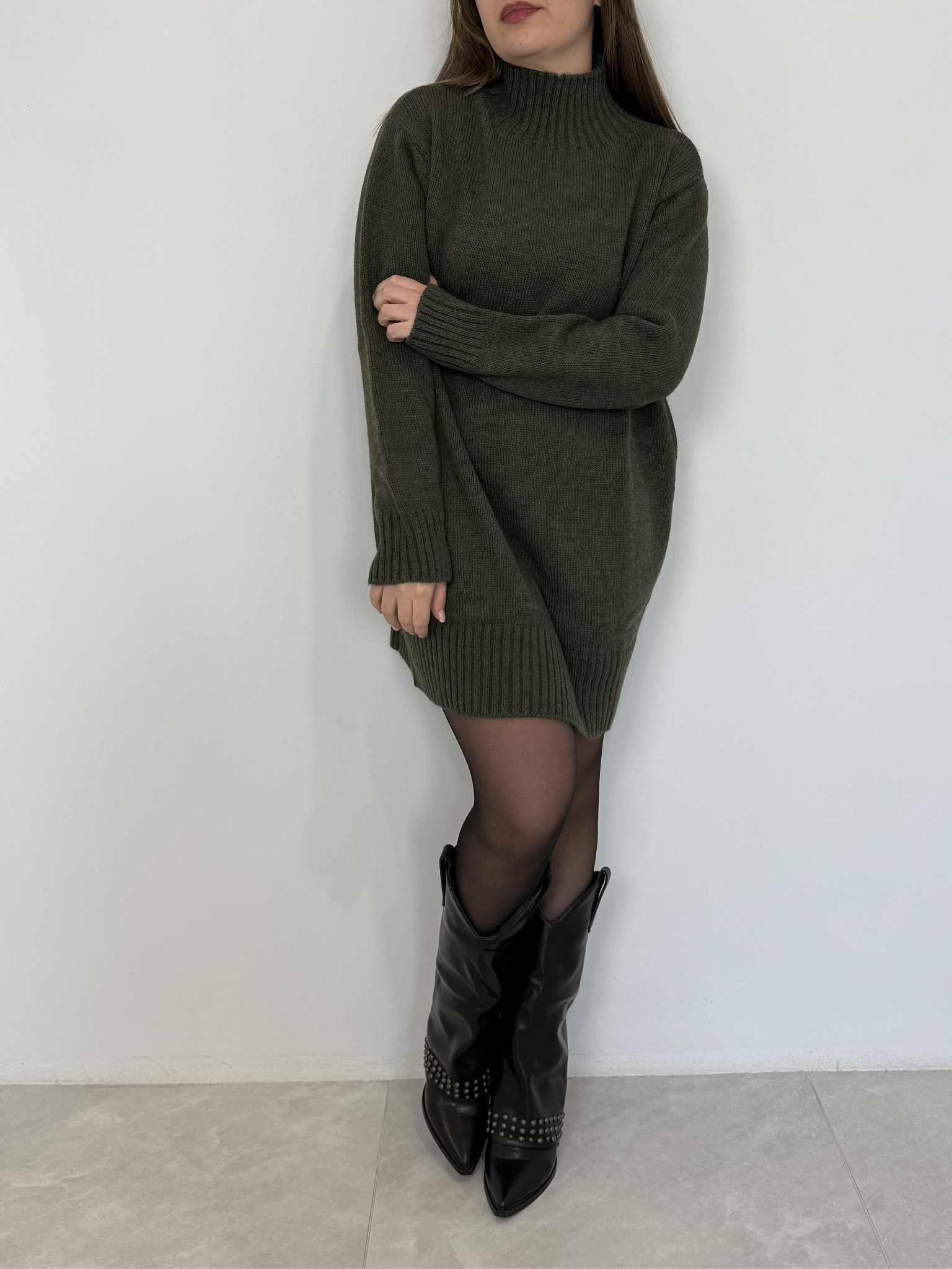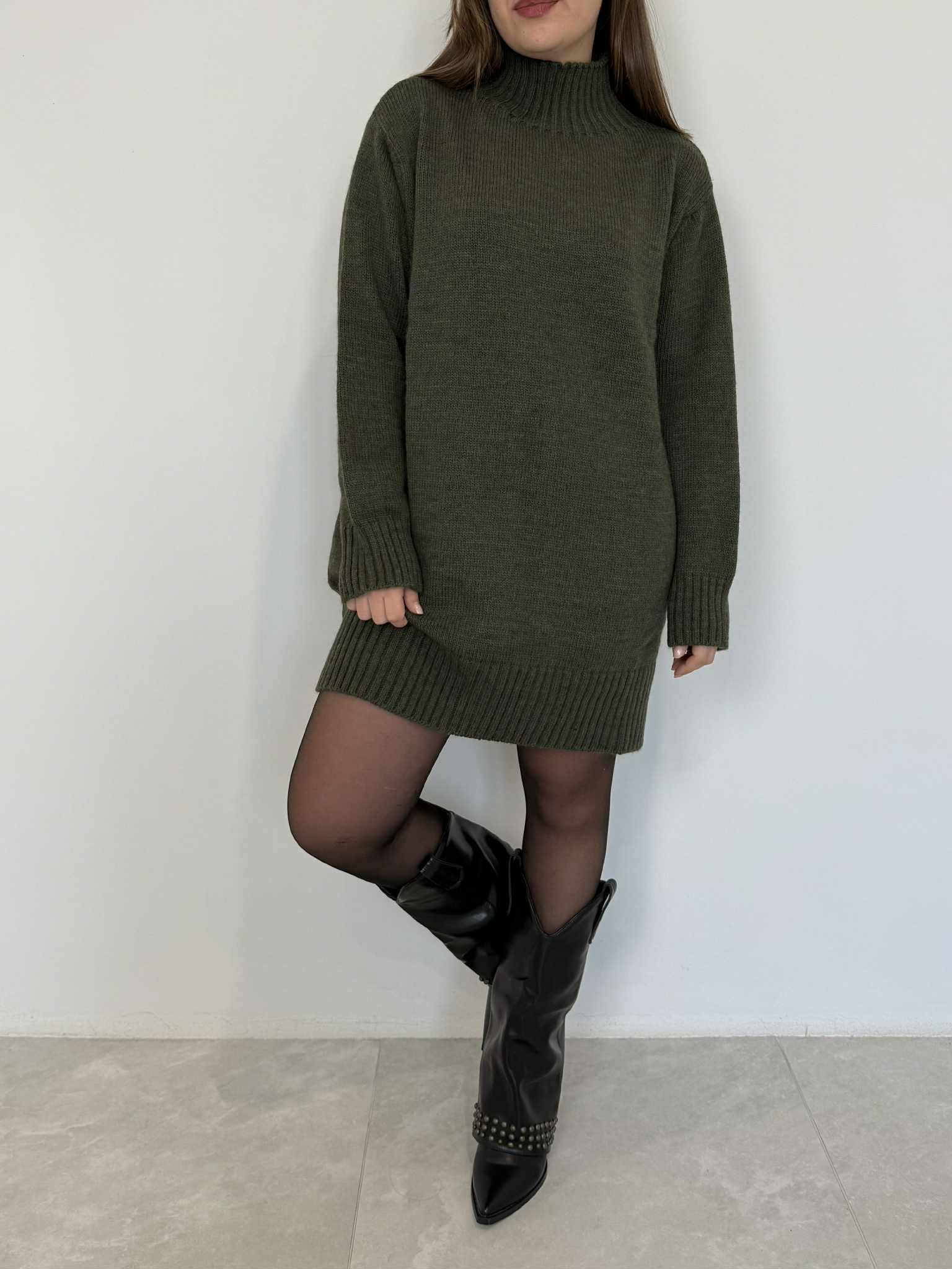 Tensione In - Abito collo cratere verde