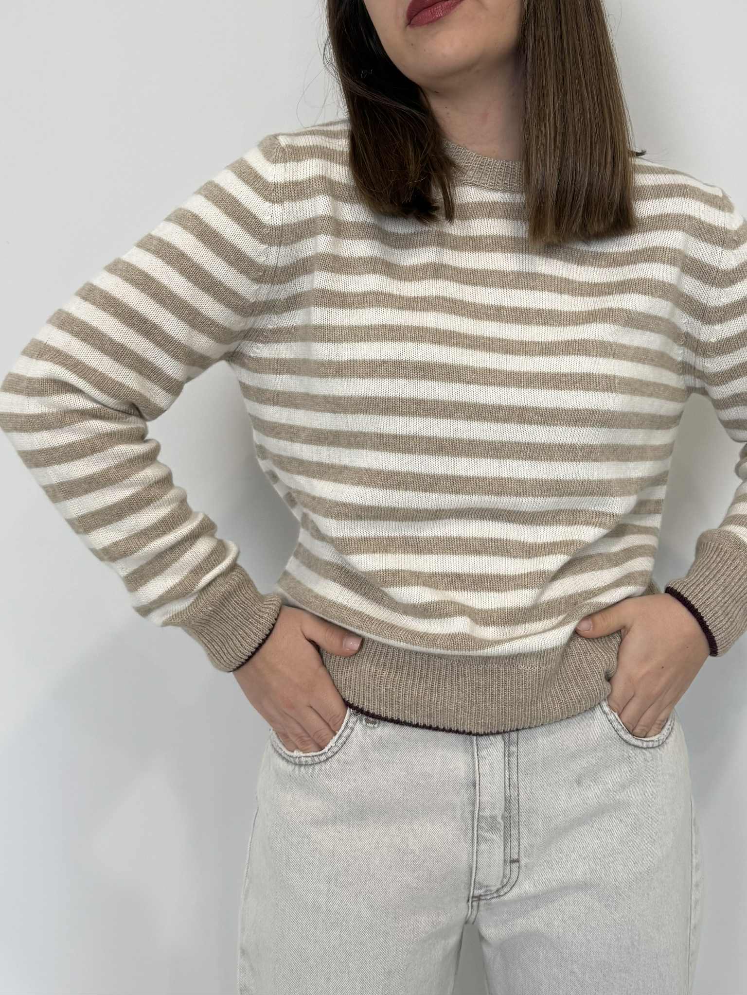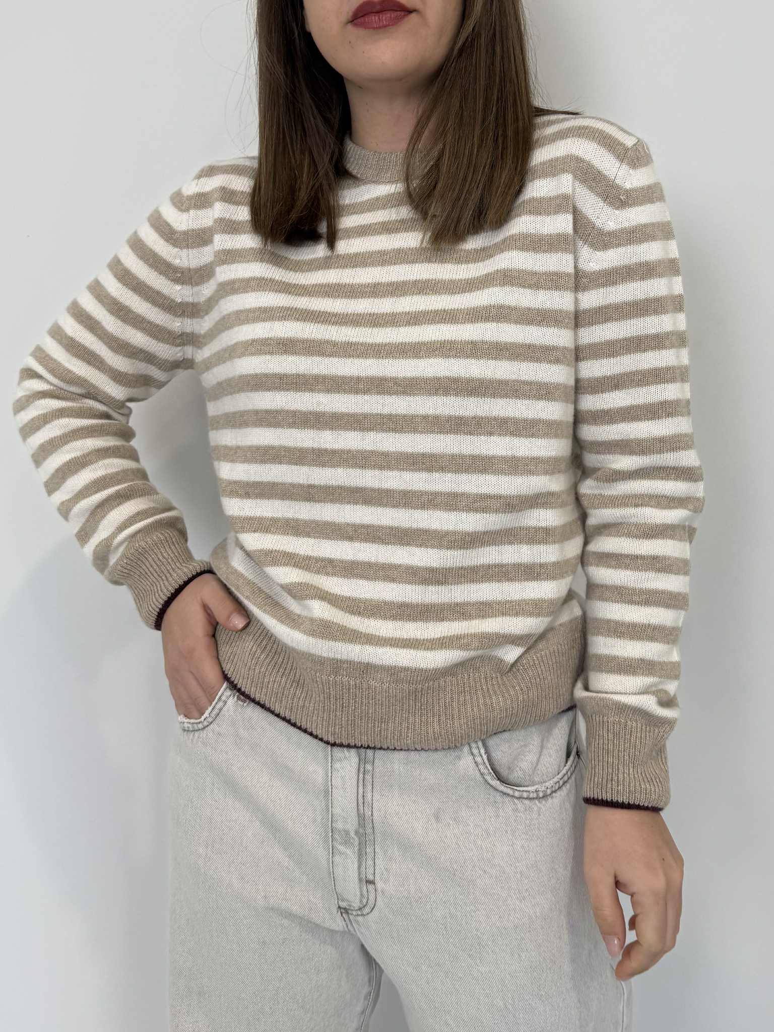 Tensione In - Maglioncino righe casha/beige/vino