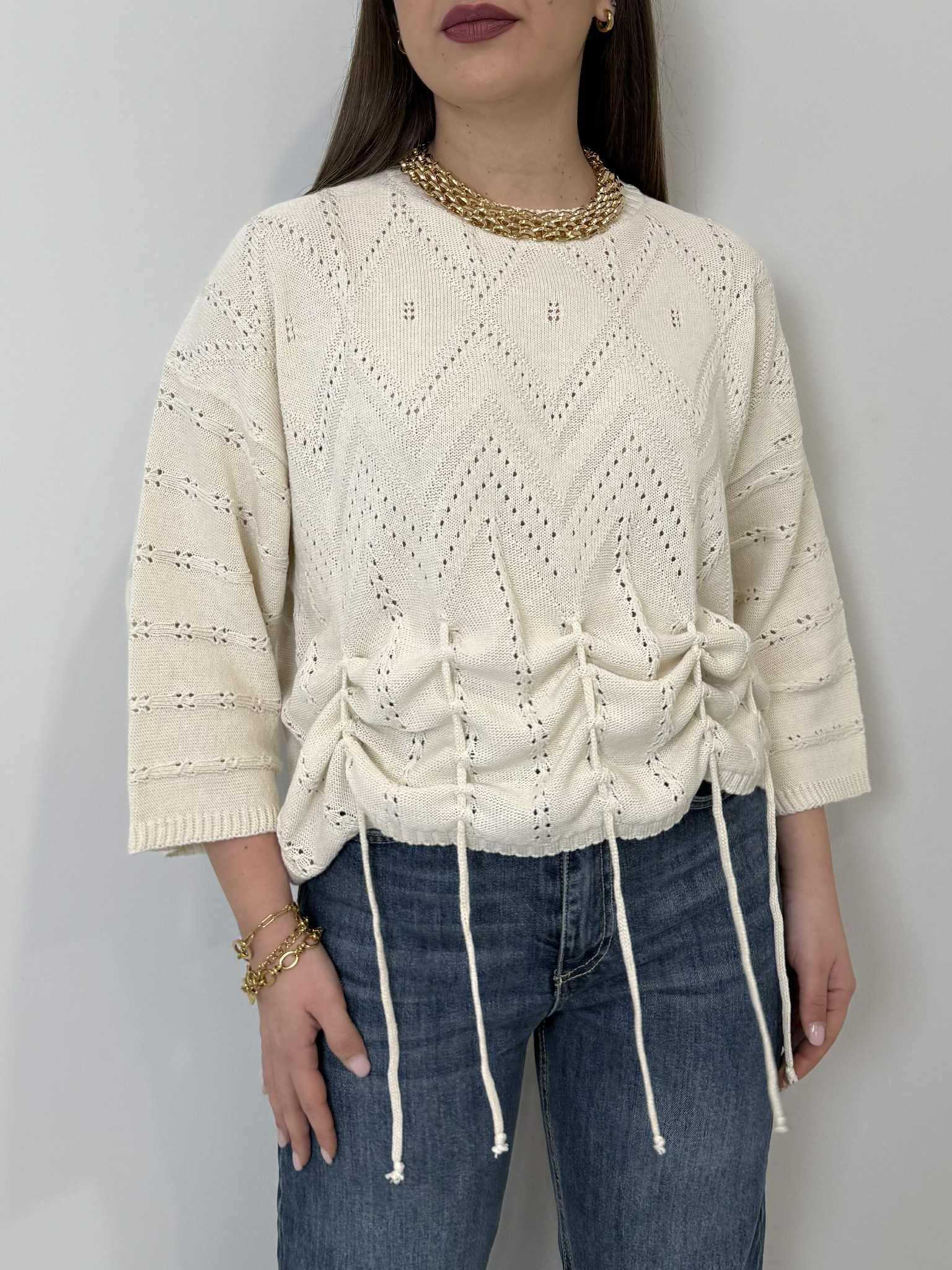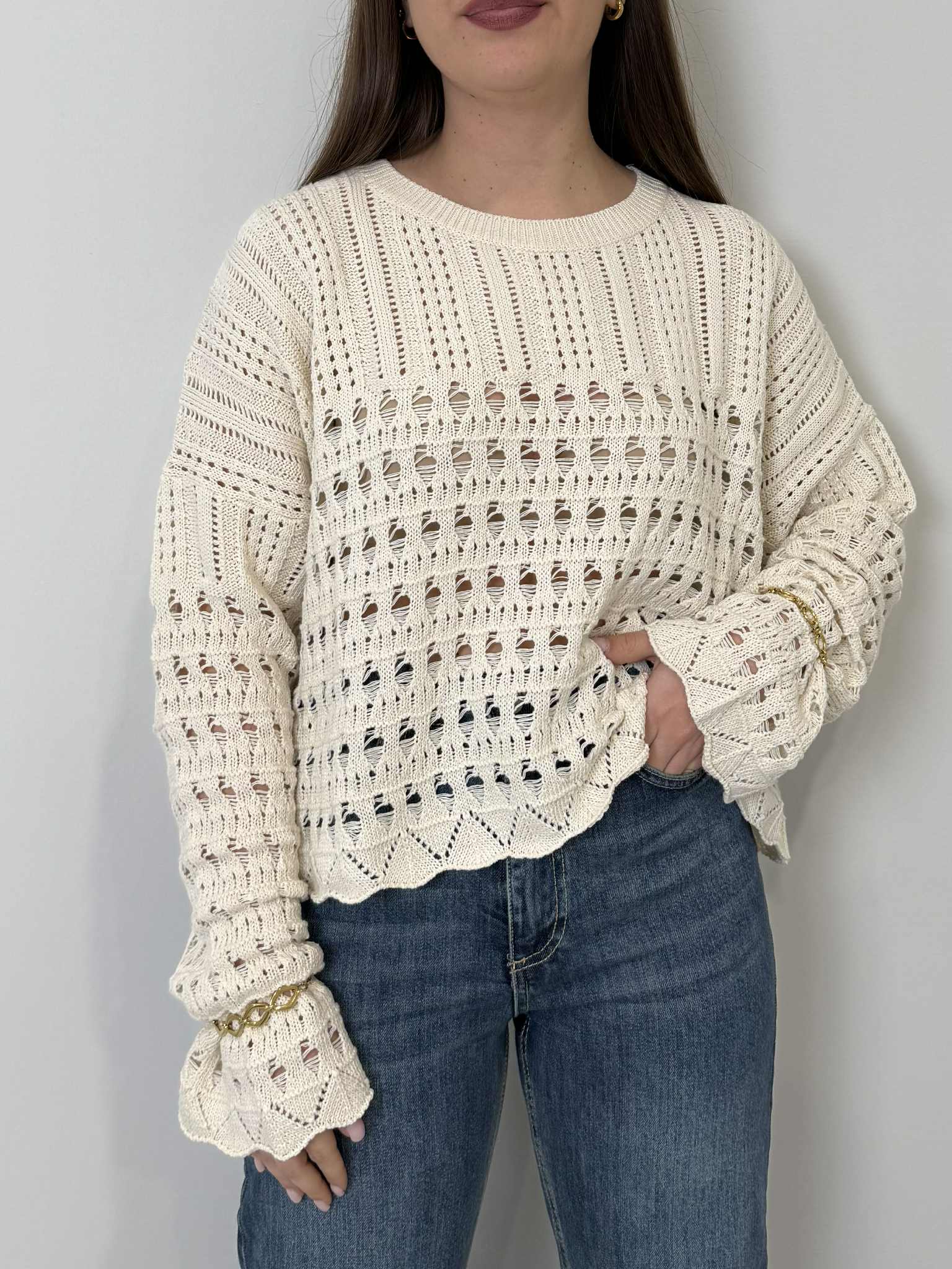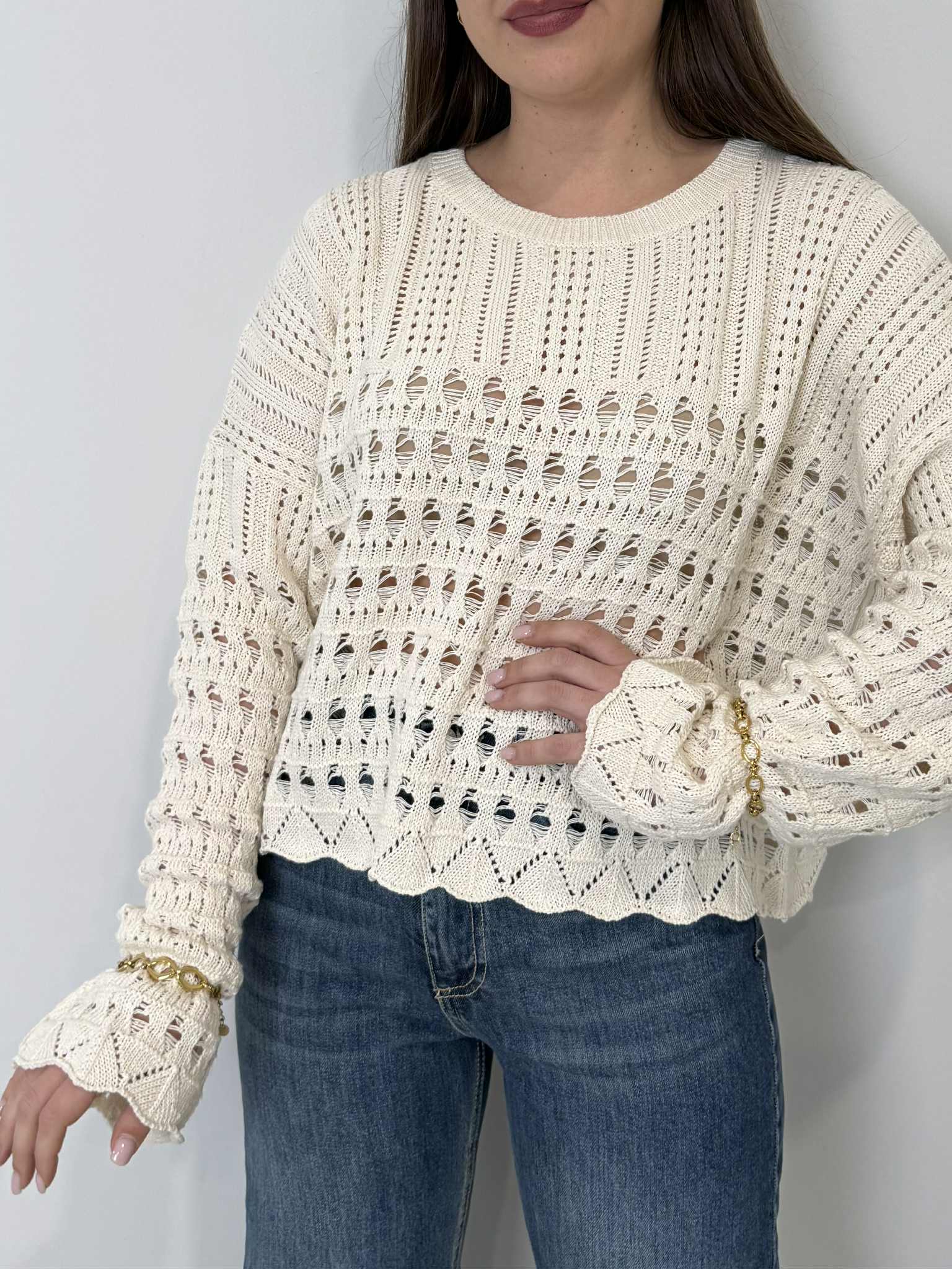 Haveone - Maglioncino traforato con spacco panna