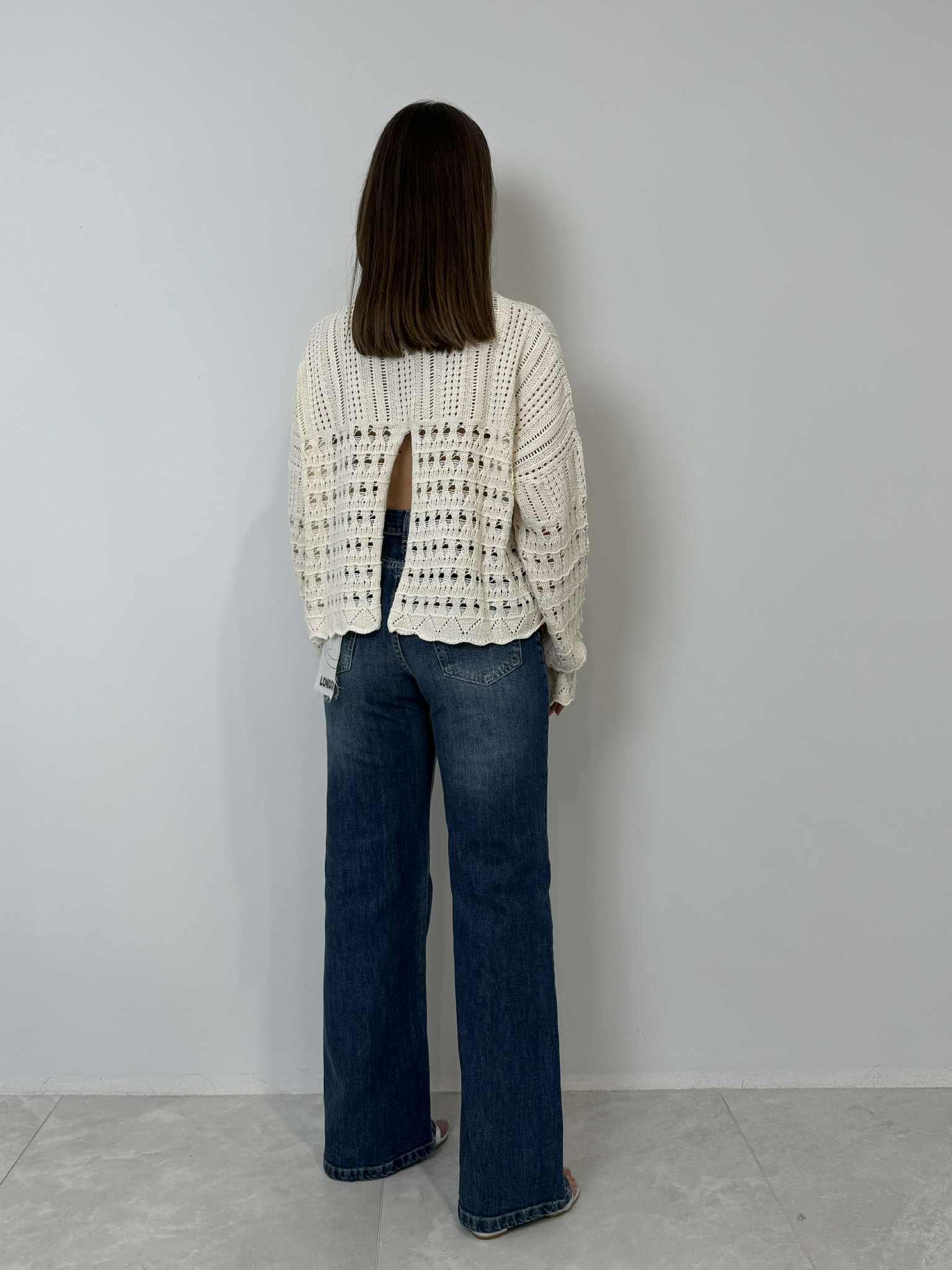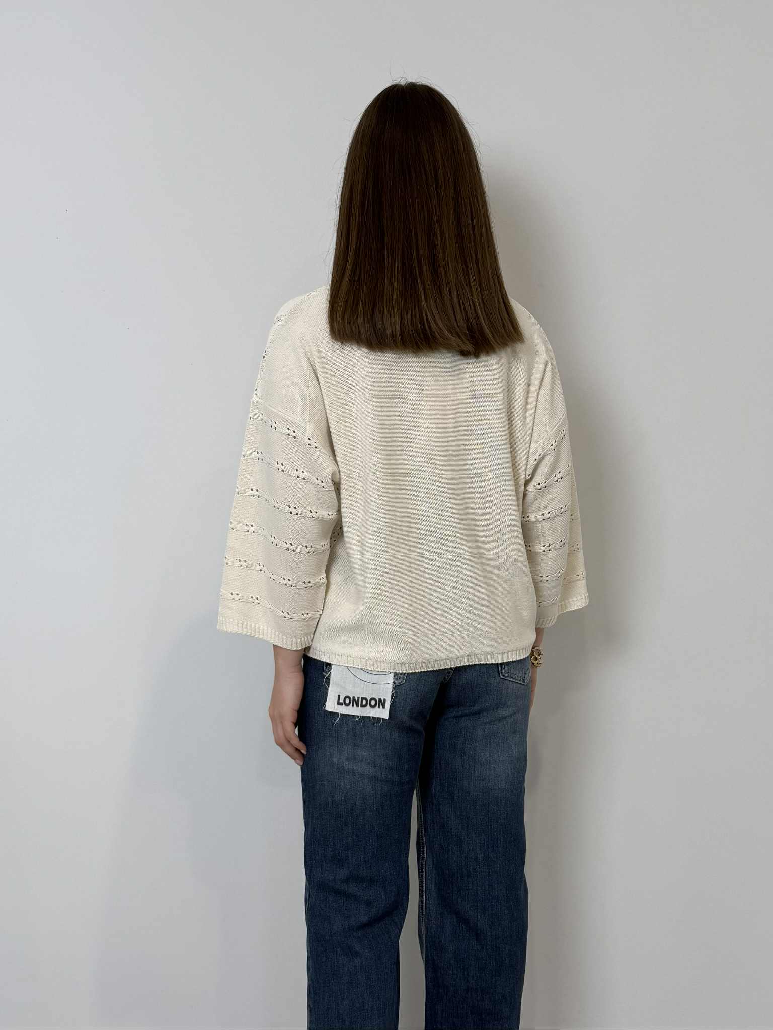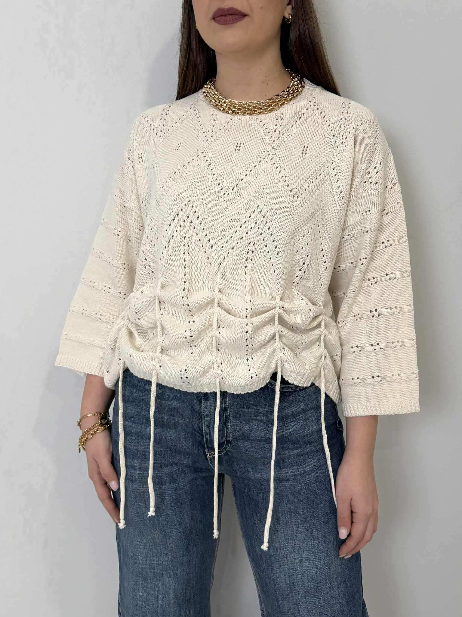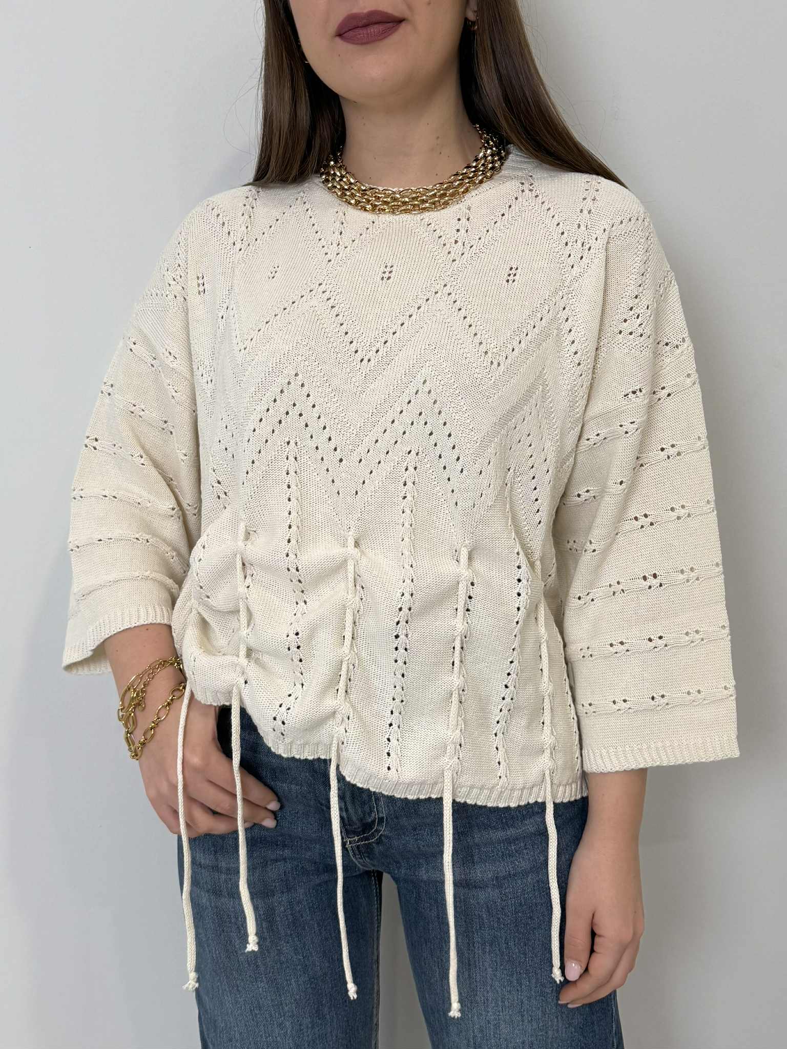 Haveone - Maglioncino traforato con spacco panna