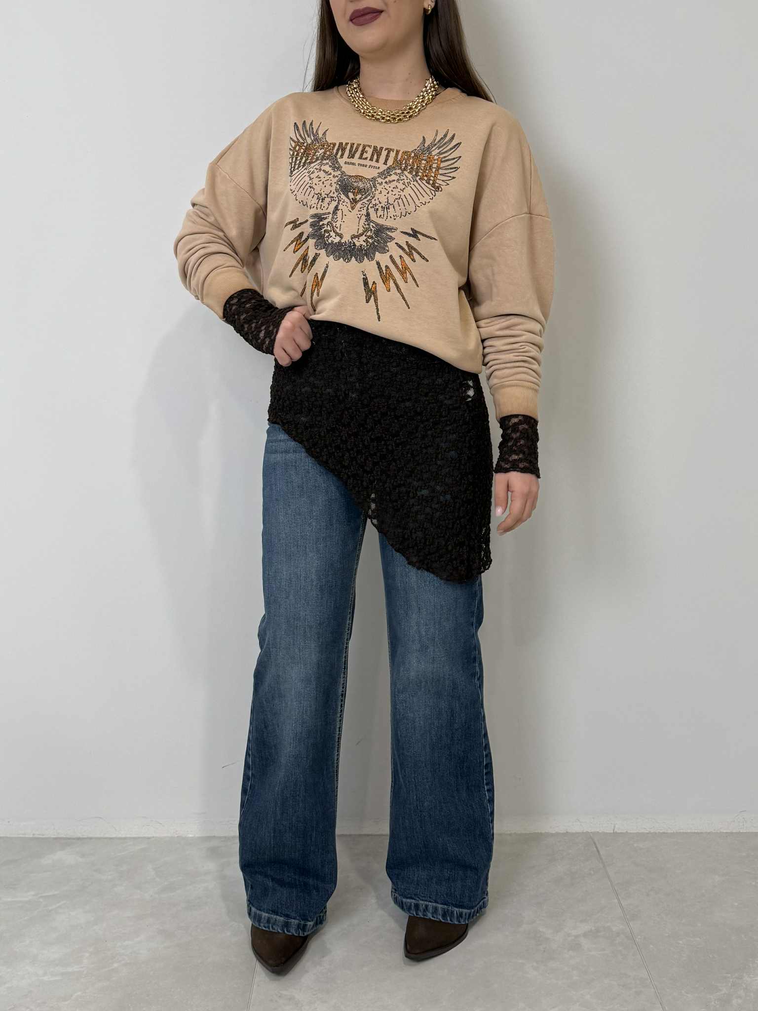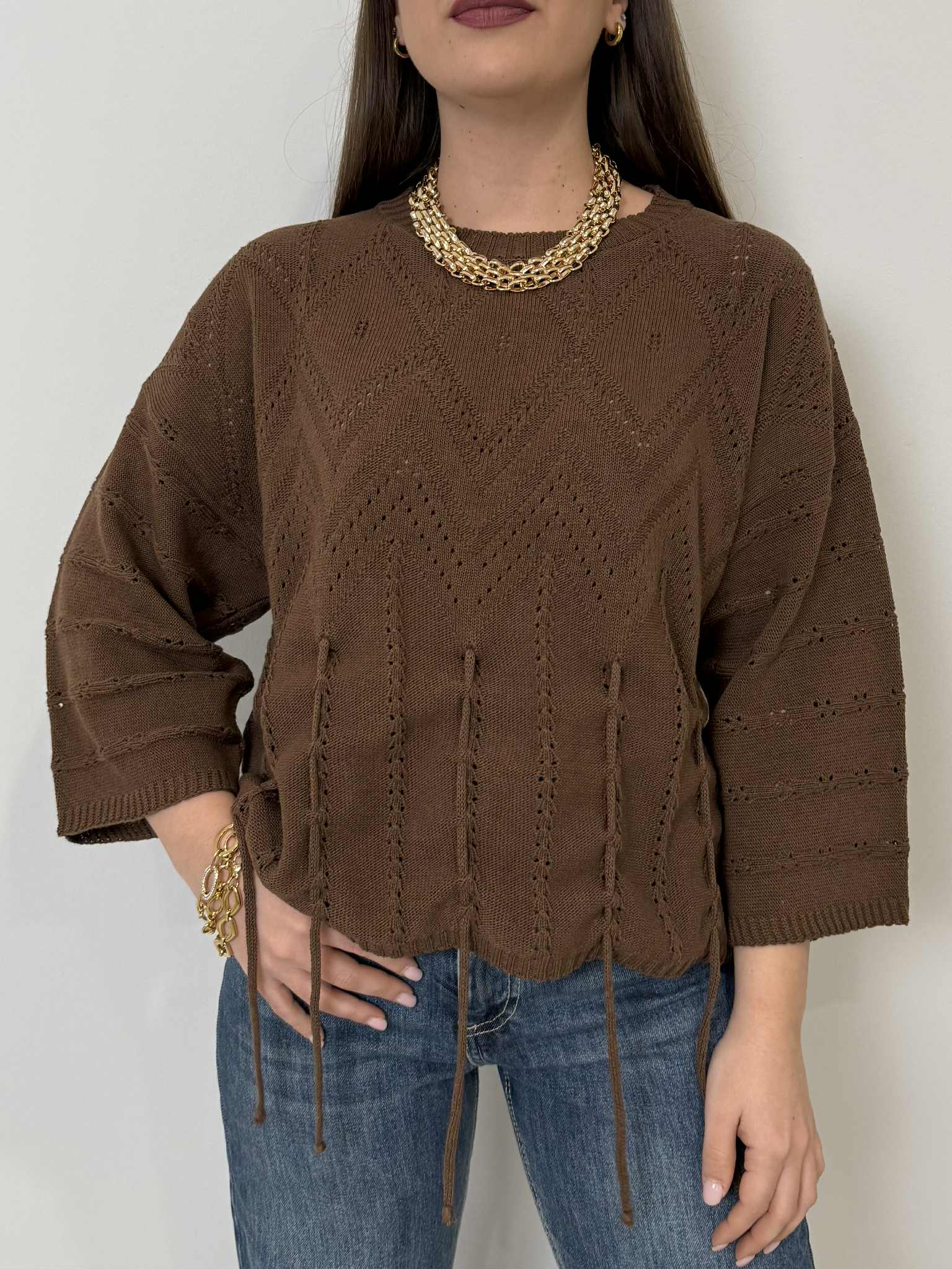 Civico23 - Maglia in macramè asimmetrica moro