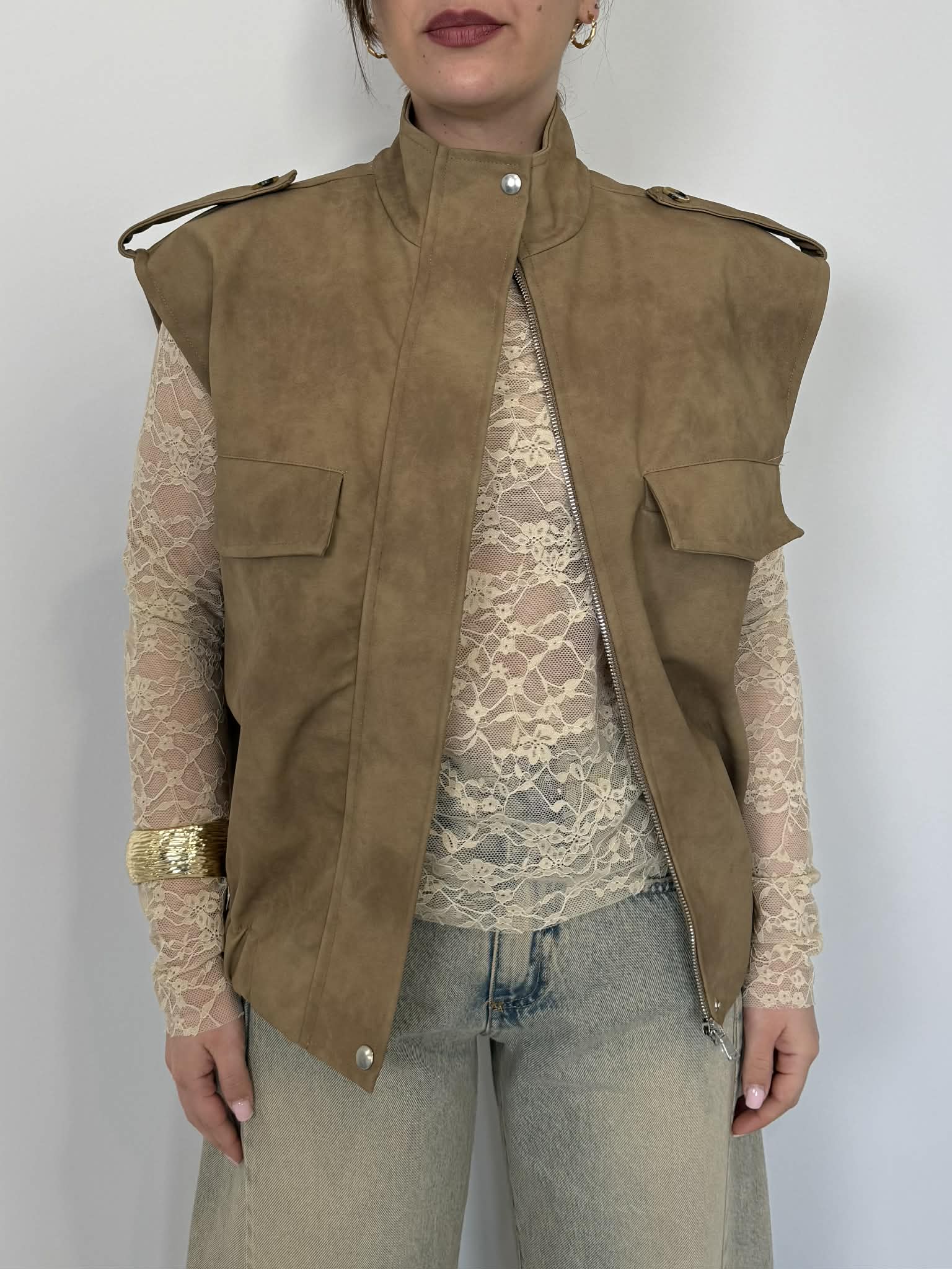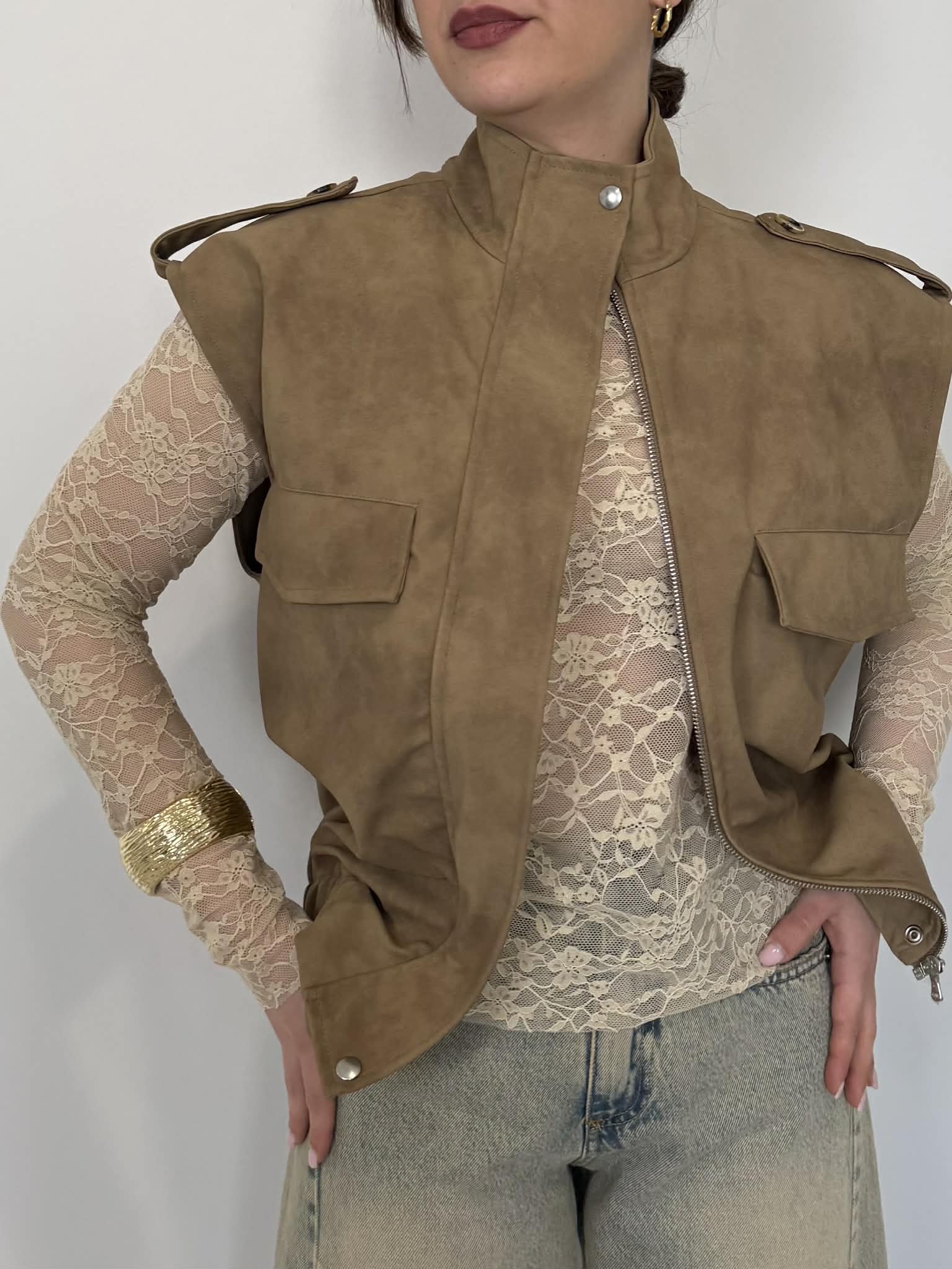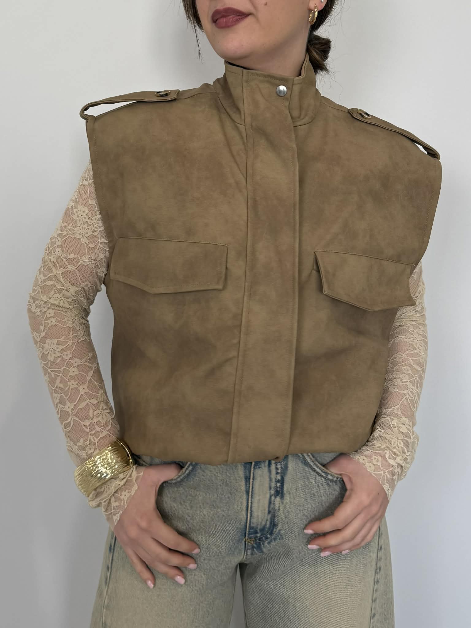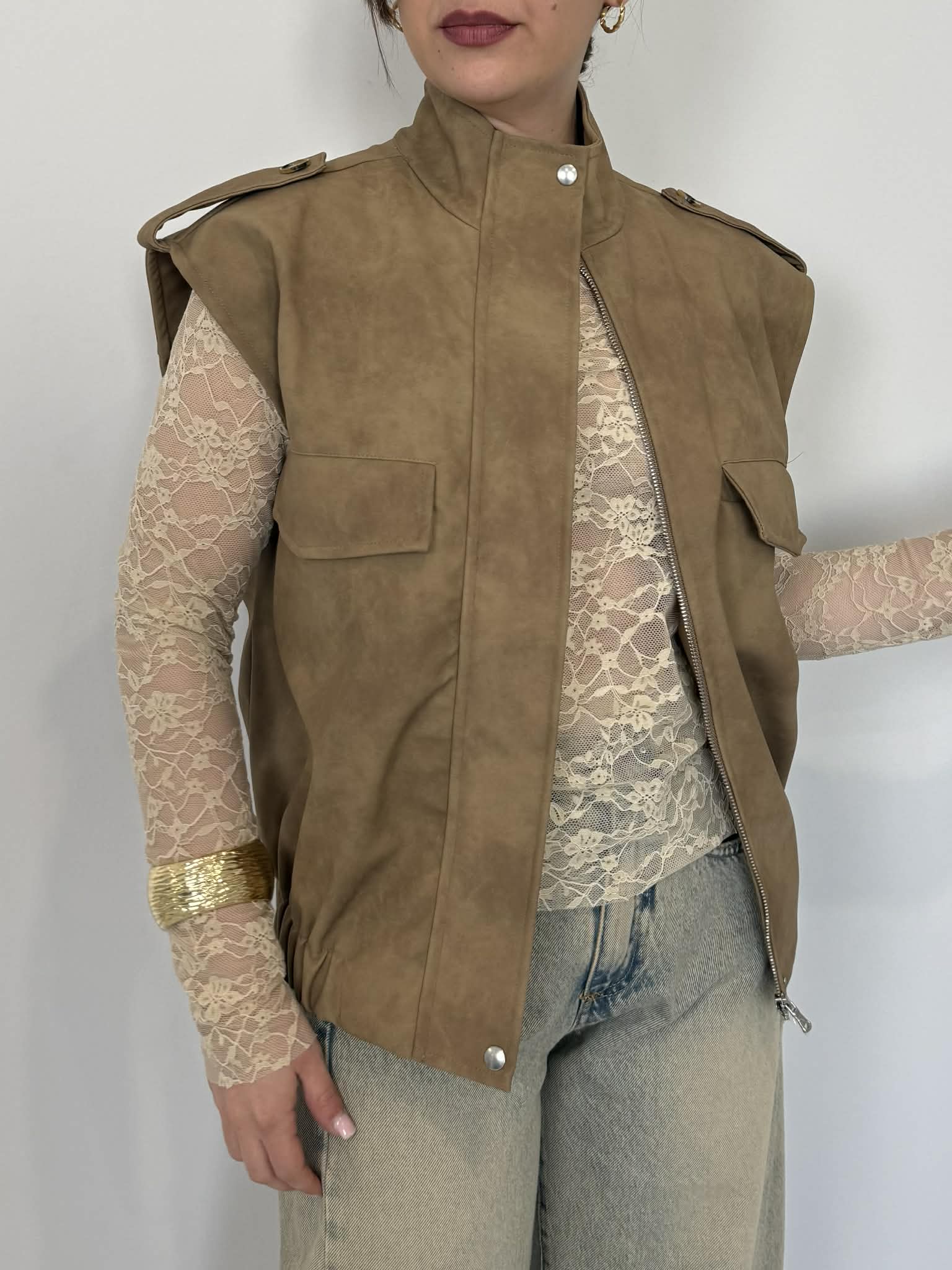Haveone - Gilet in dainetto cerato beige