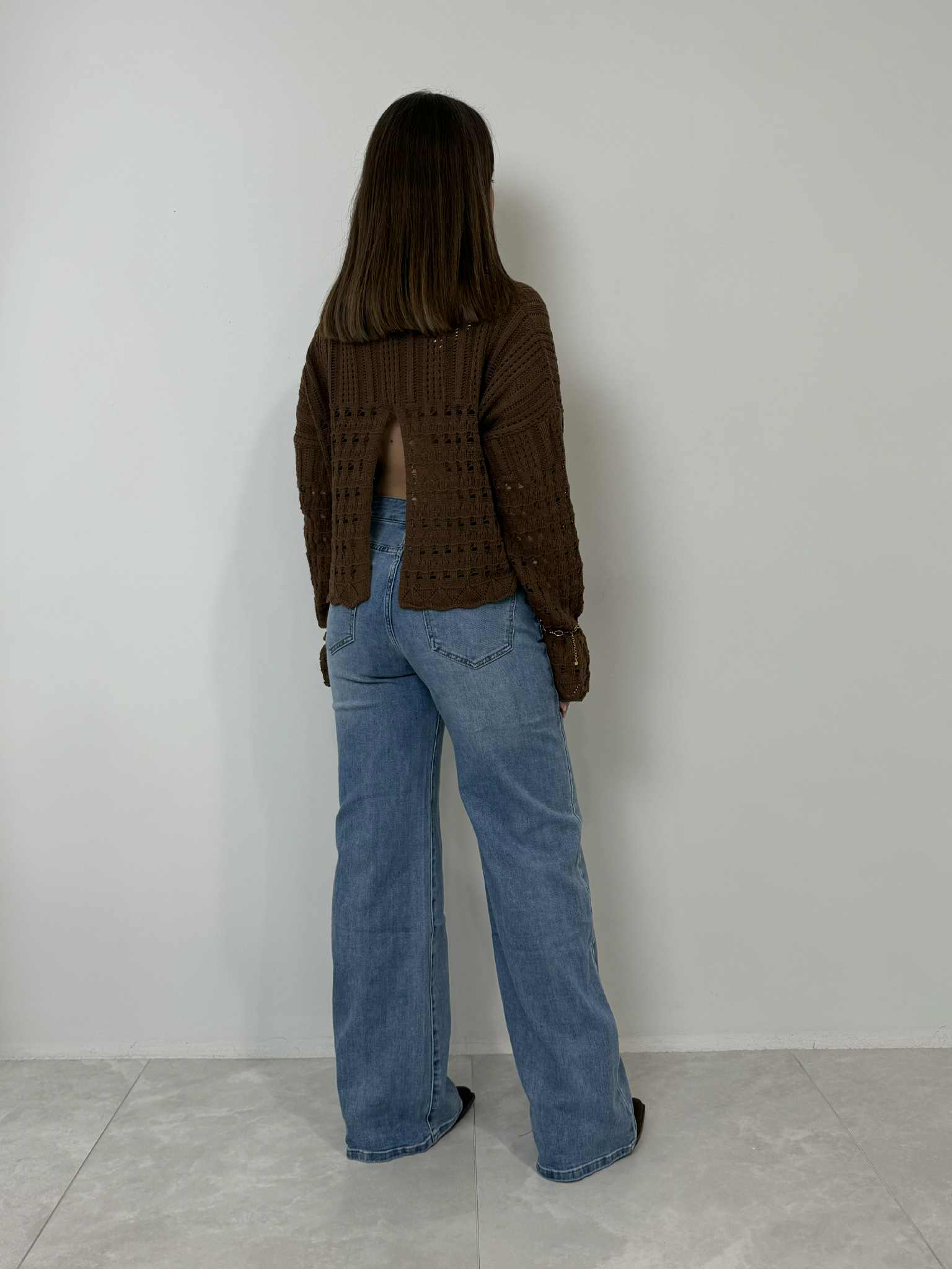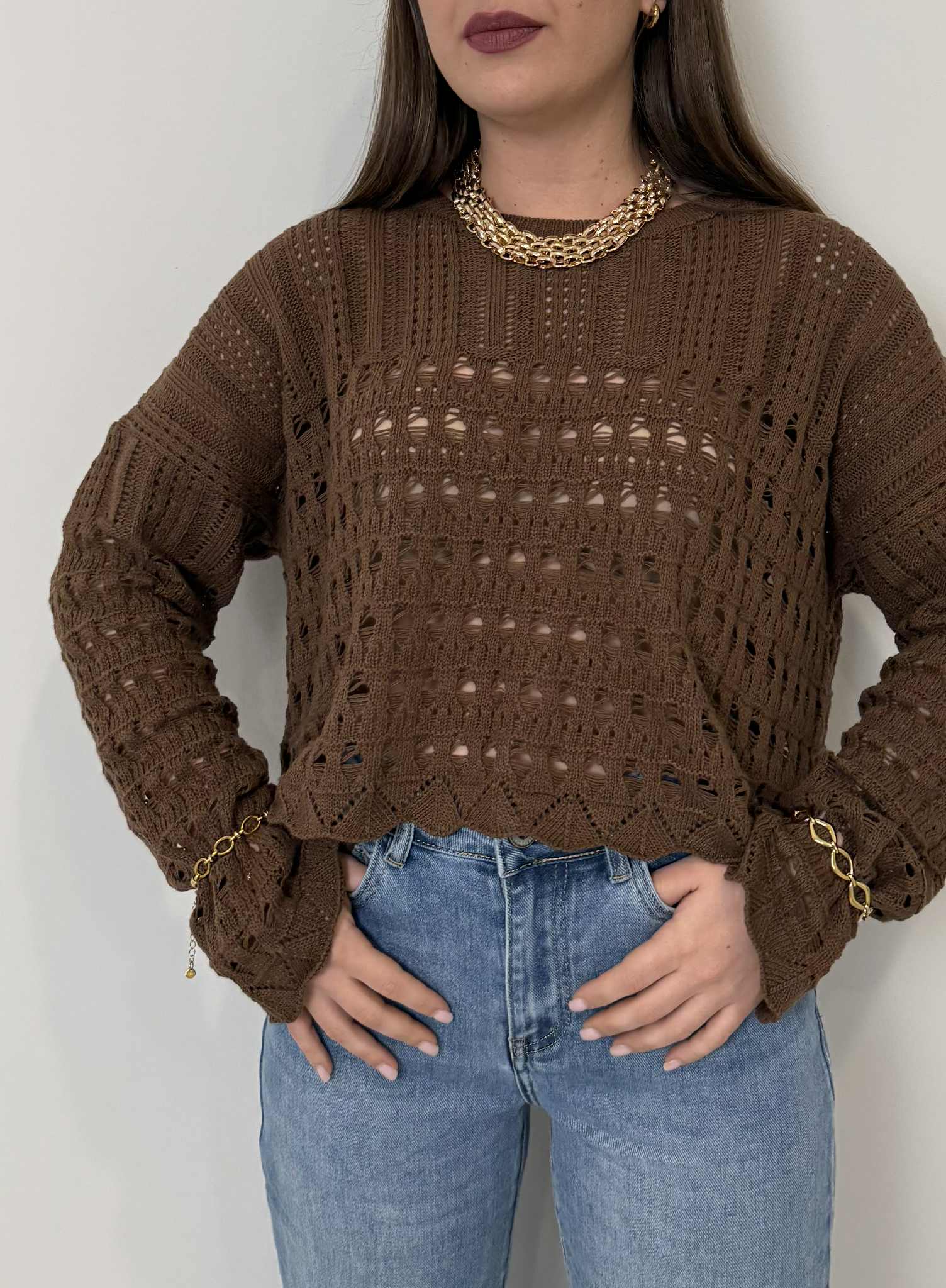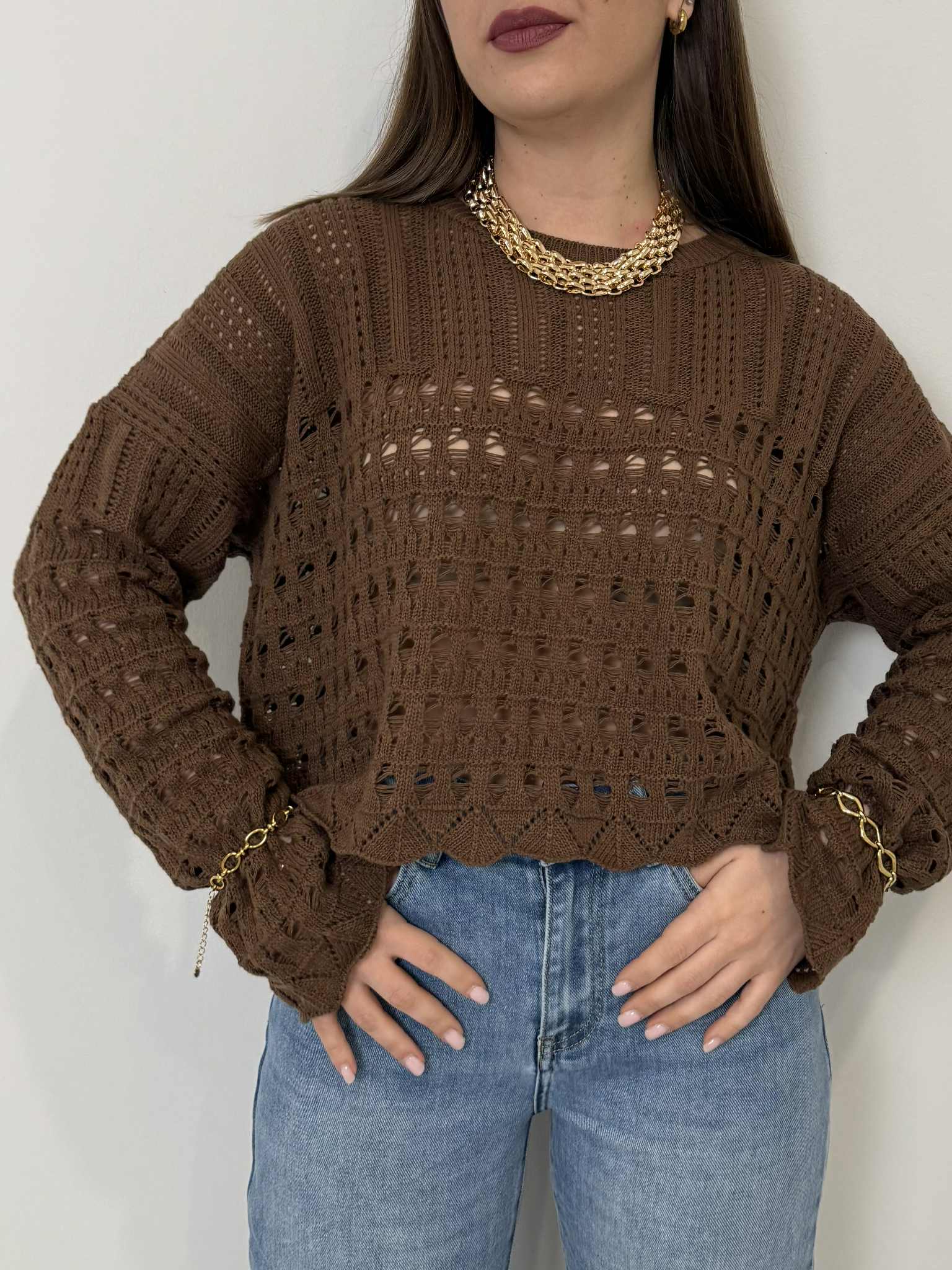 Haveone - Maglioncino traforato con spacco moro