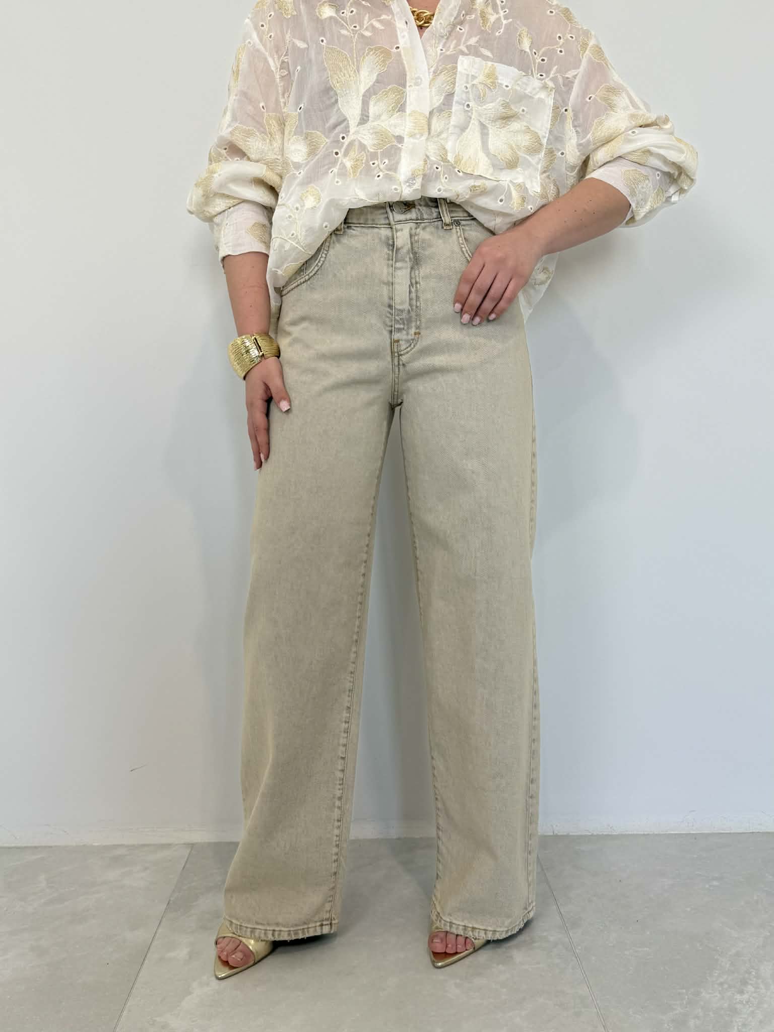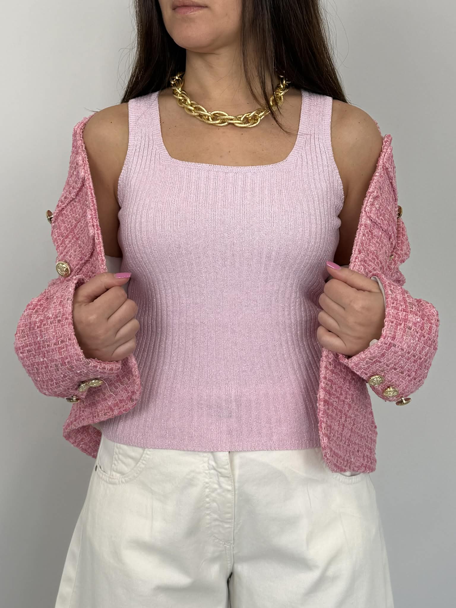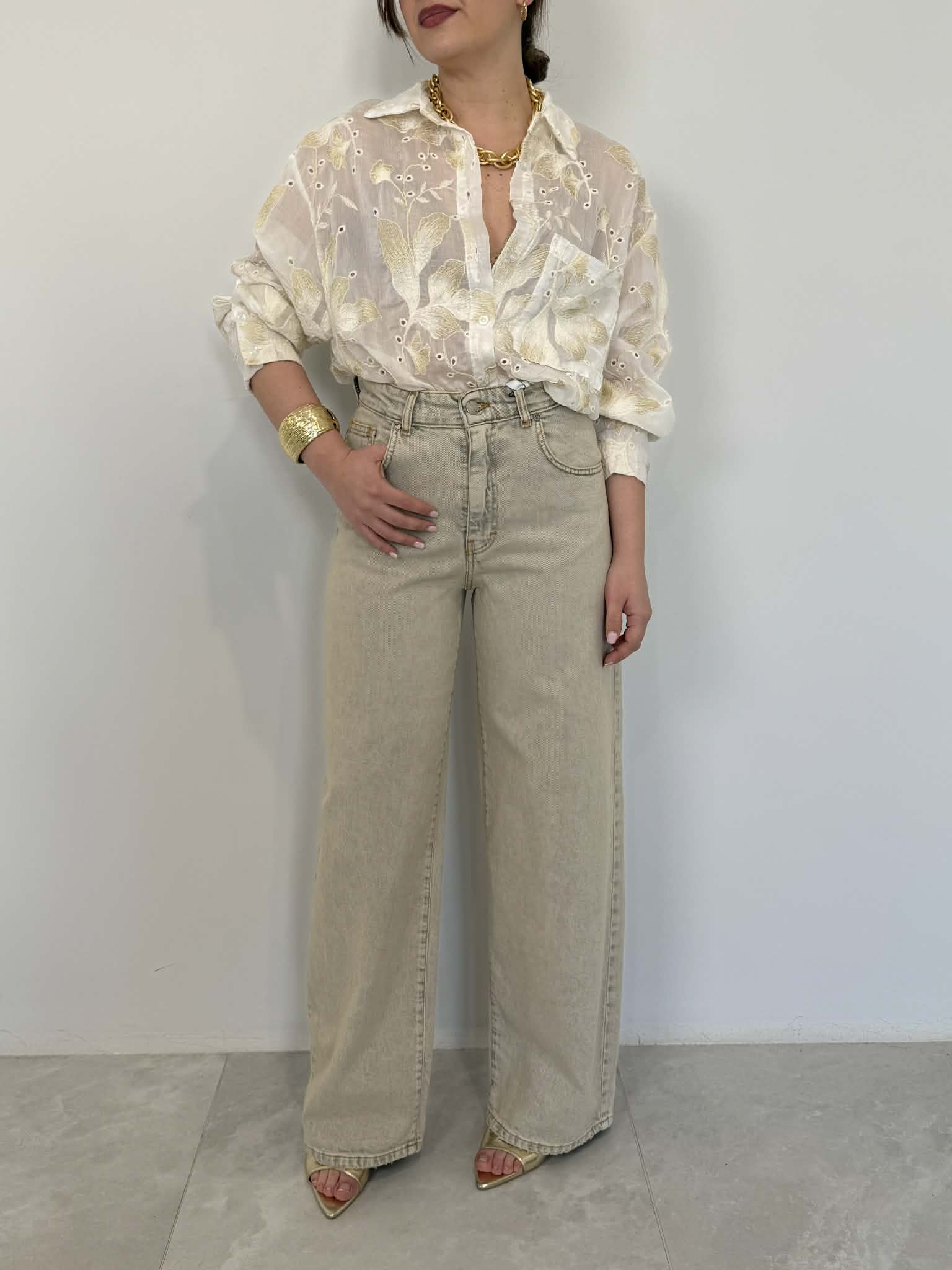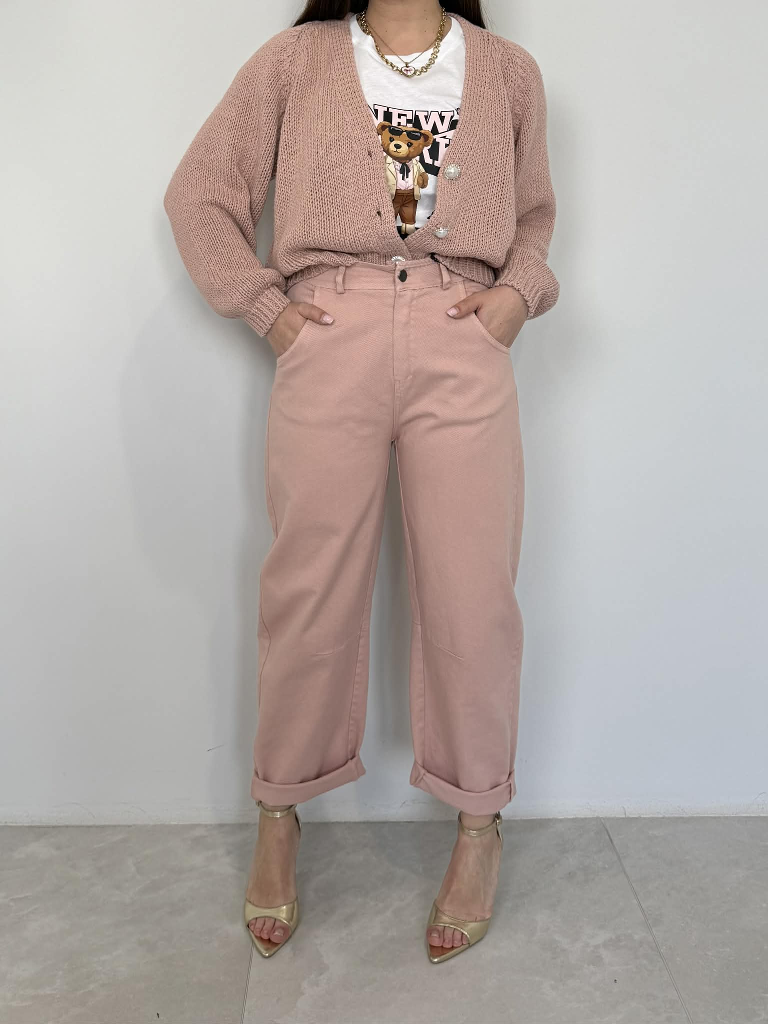 Haveone - Cardigan perla 3 bottoni gioiello giallo