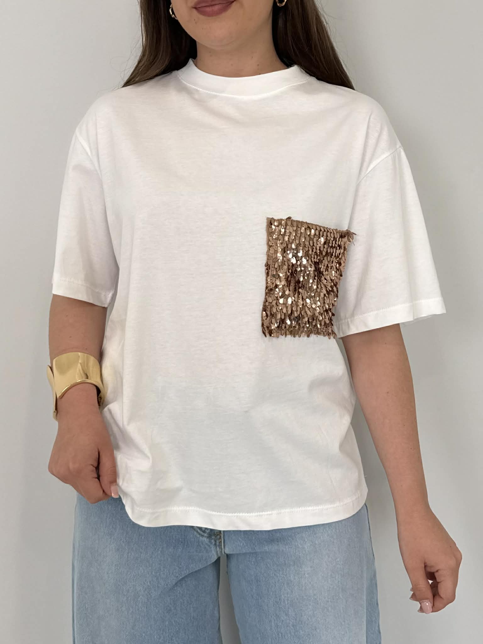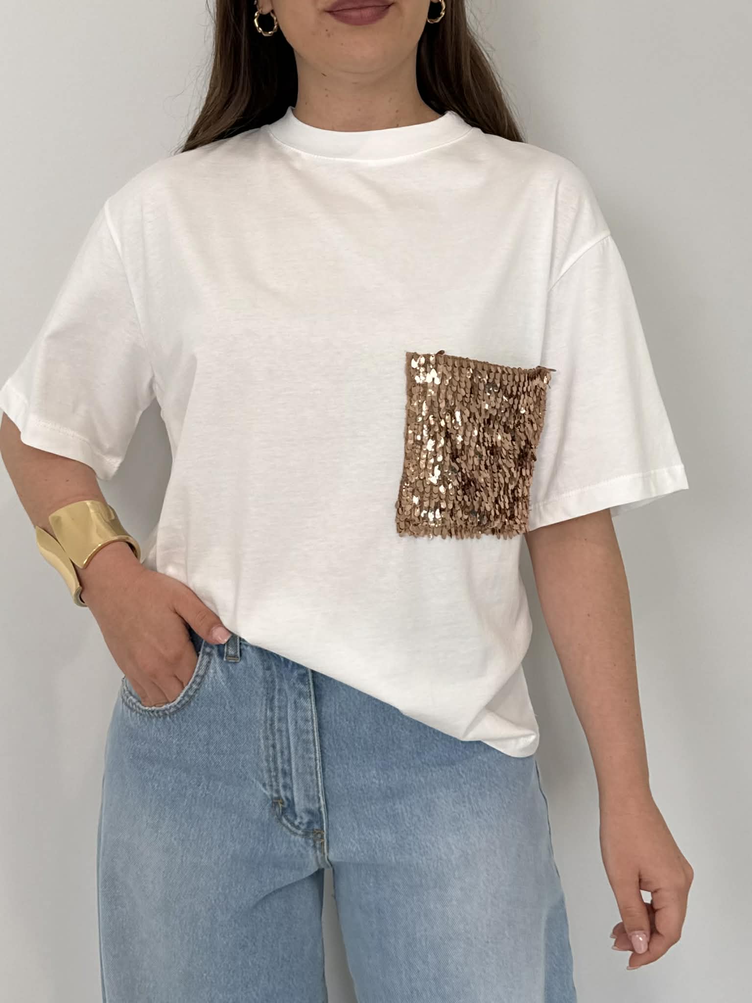 PRE-ORDINE 20/04: Tensione In - T-shirt con tasca in paillettes bronzo