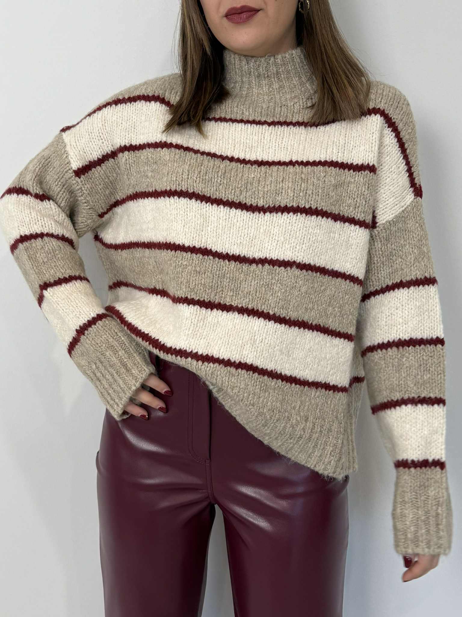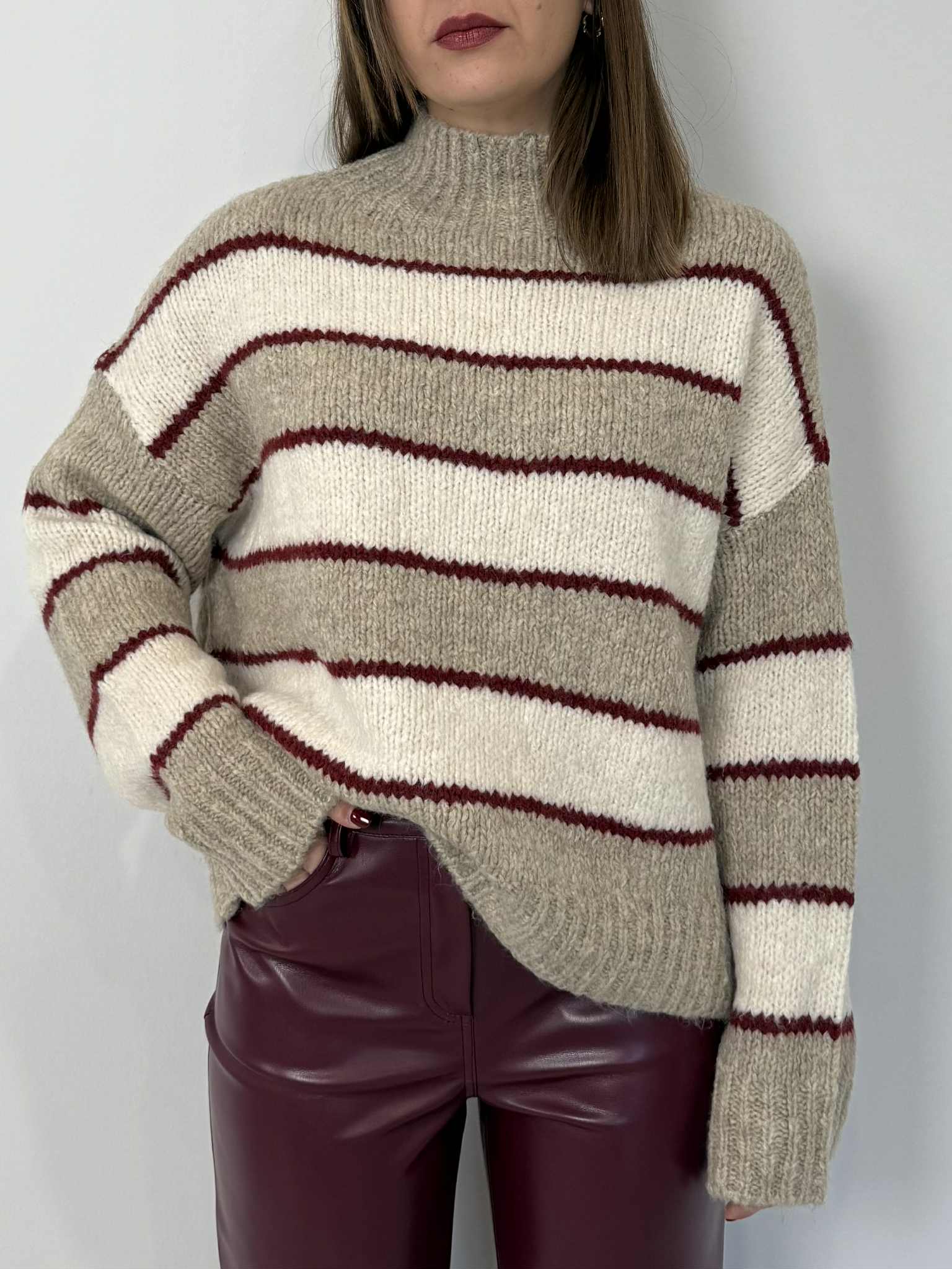 Tensione In - Maglioncino righe casha/panna/bordeaux
