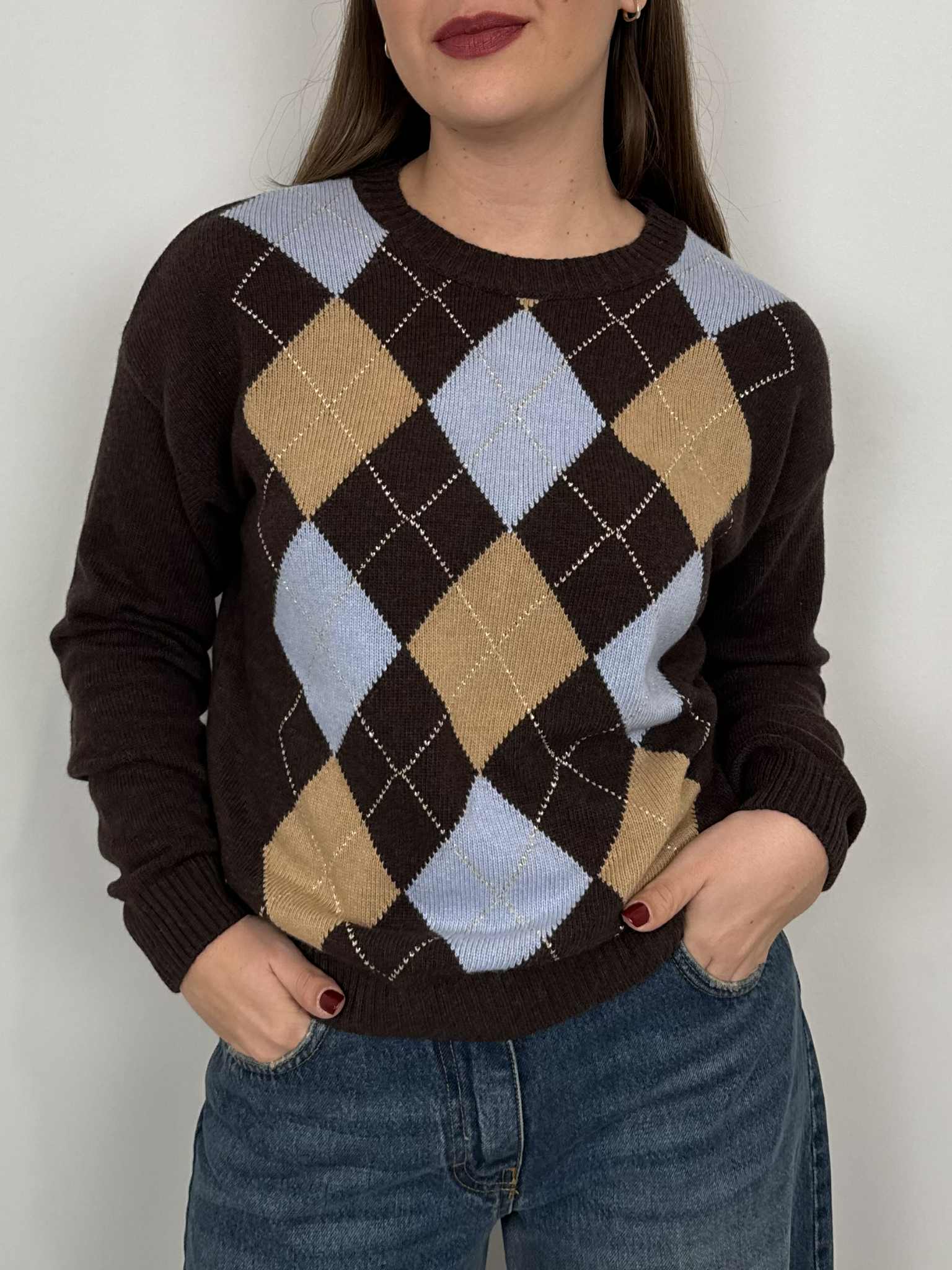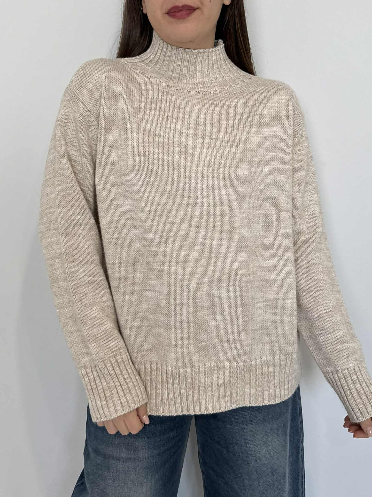 Tensione In - Maglioncino collo vulcano panna/moro/cammello