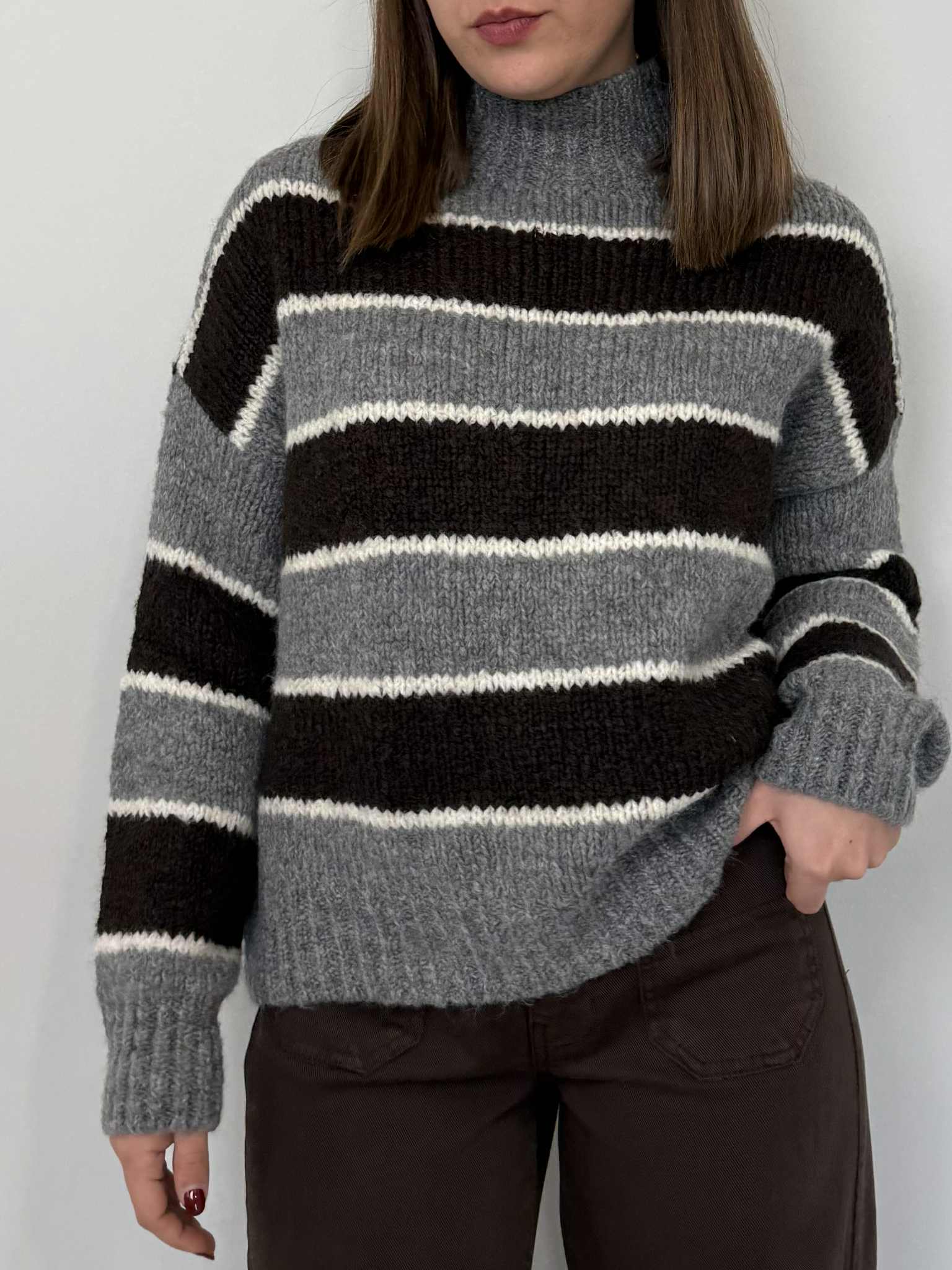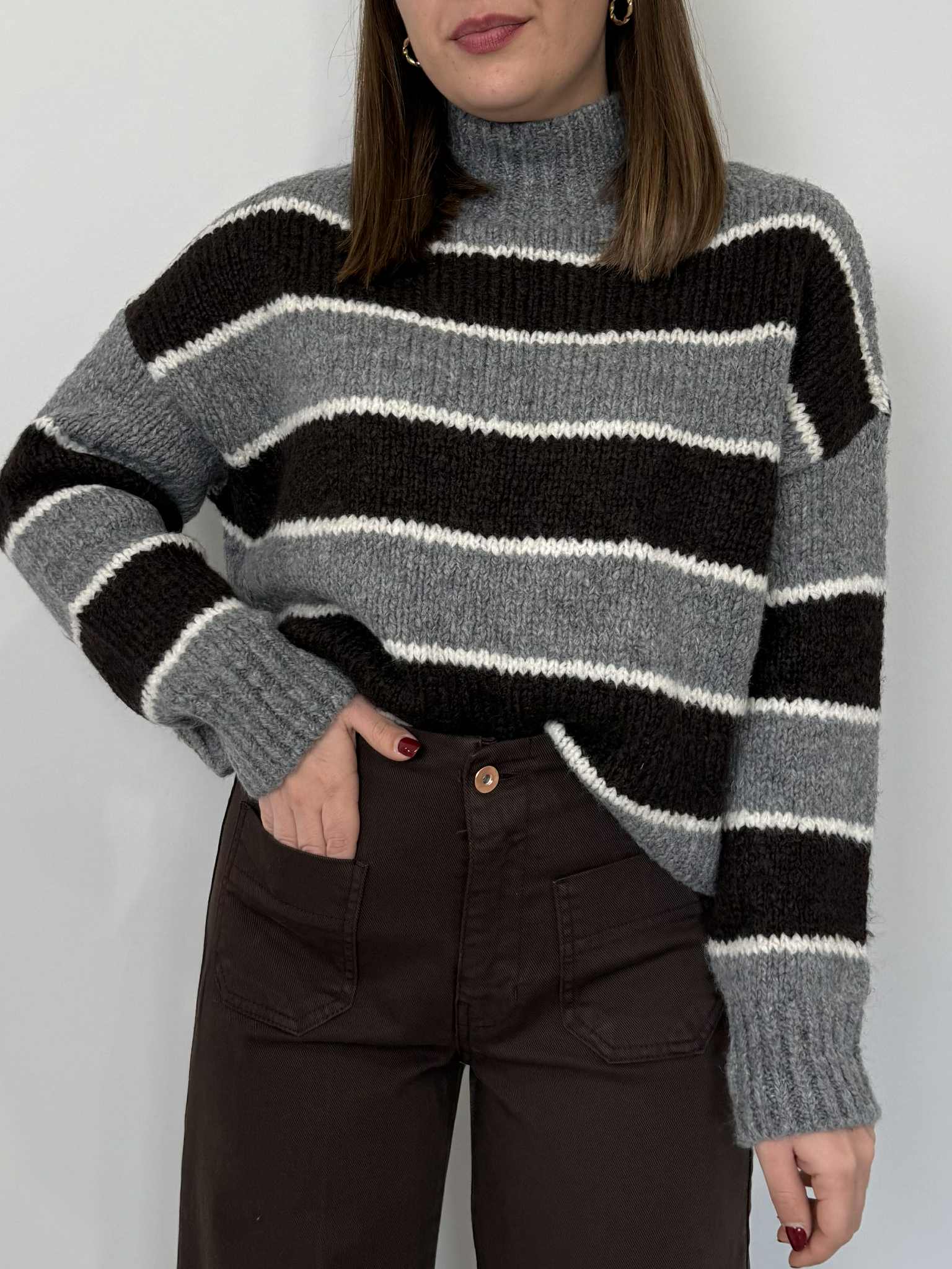 Tensione In - Maglioncino collo vulcano grigio/moro/panna
