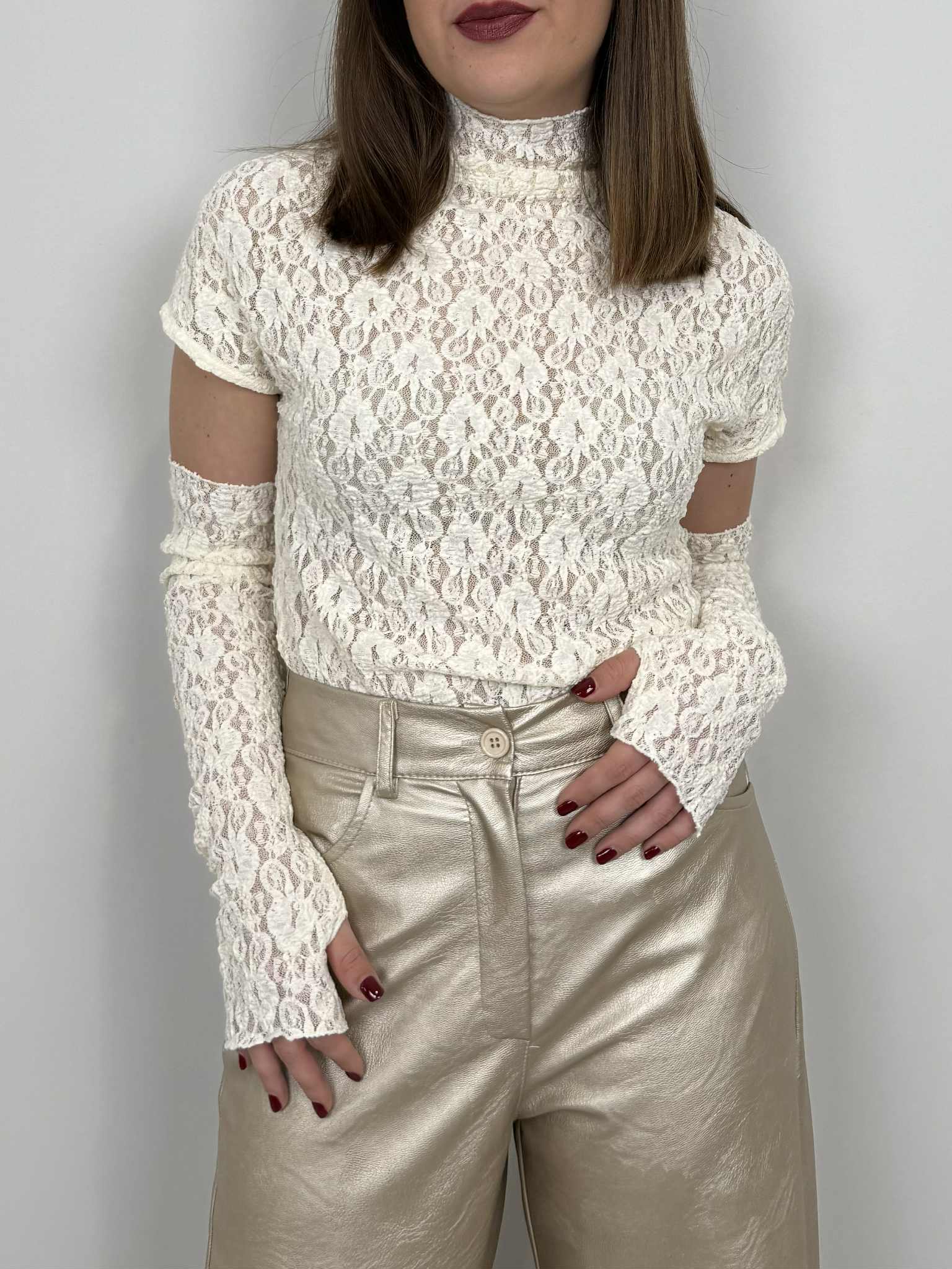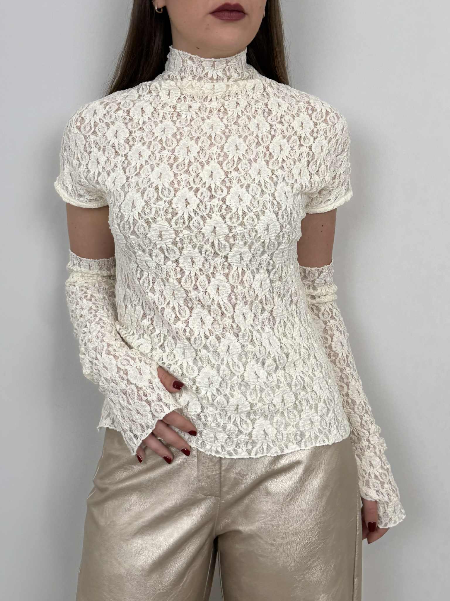 Haveone - Maglia in pizzo con manicotti bianca