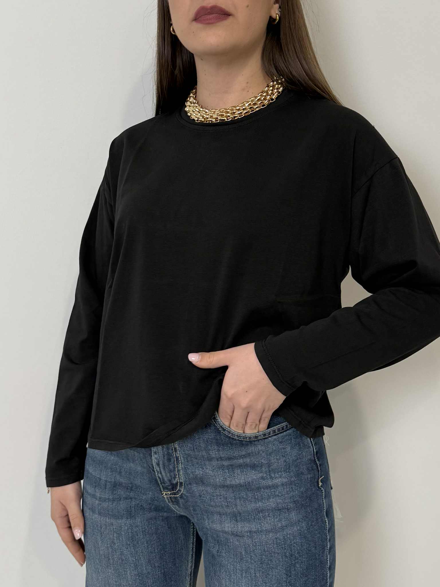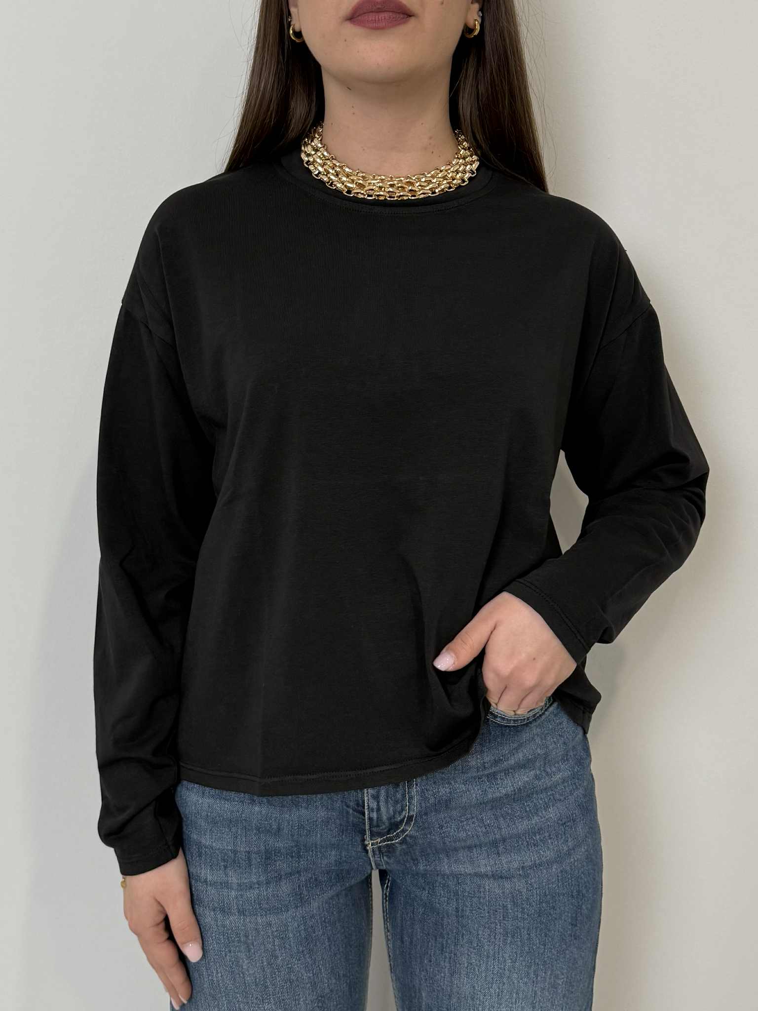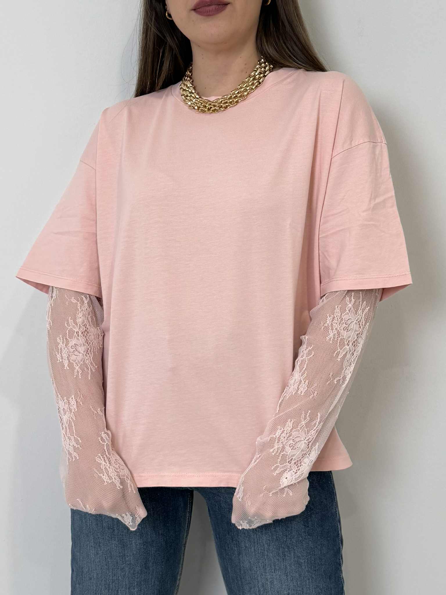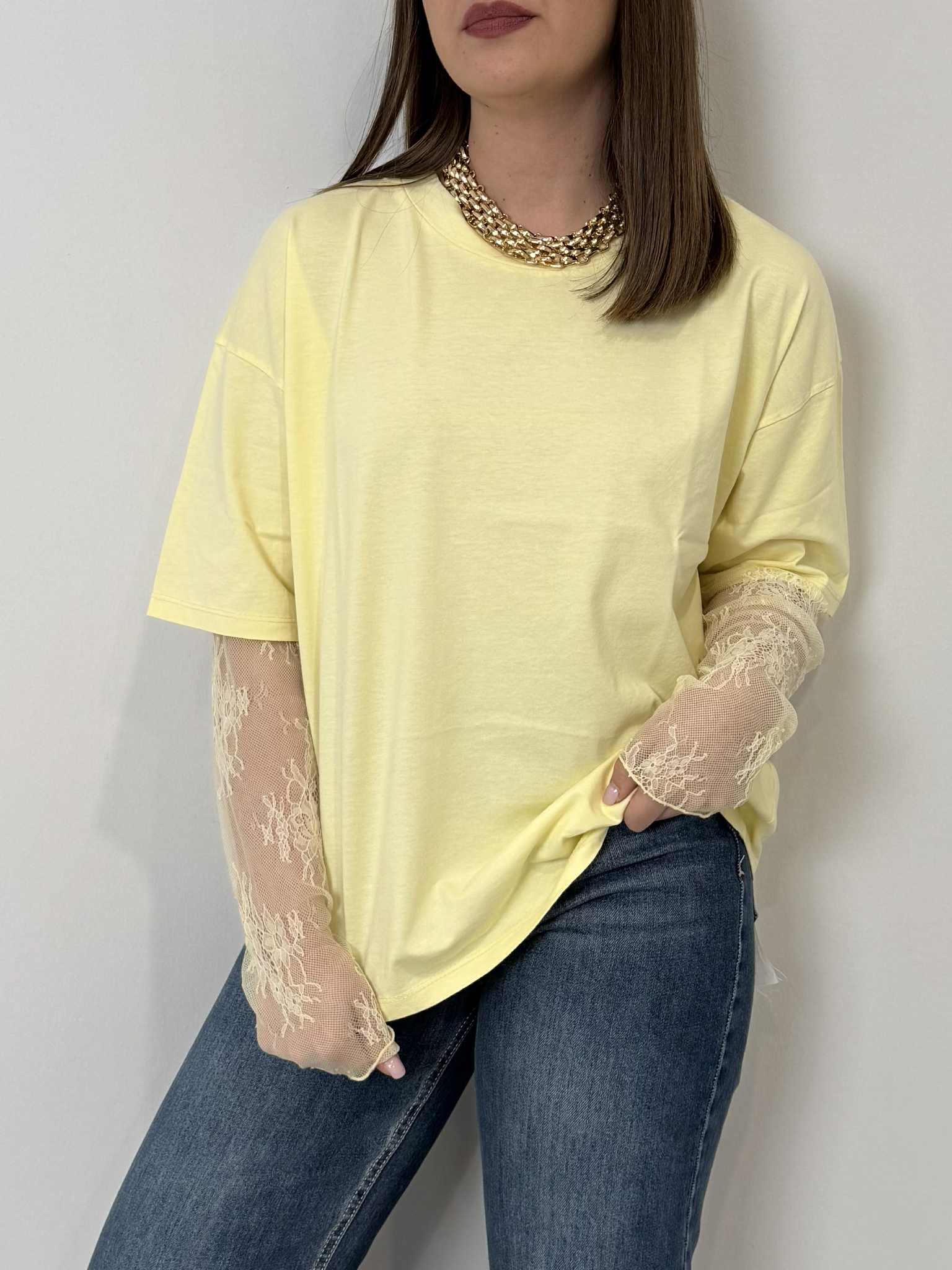 Tensione In - T-shirt moro con manicotti effetto similpelle