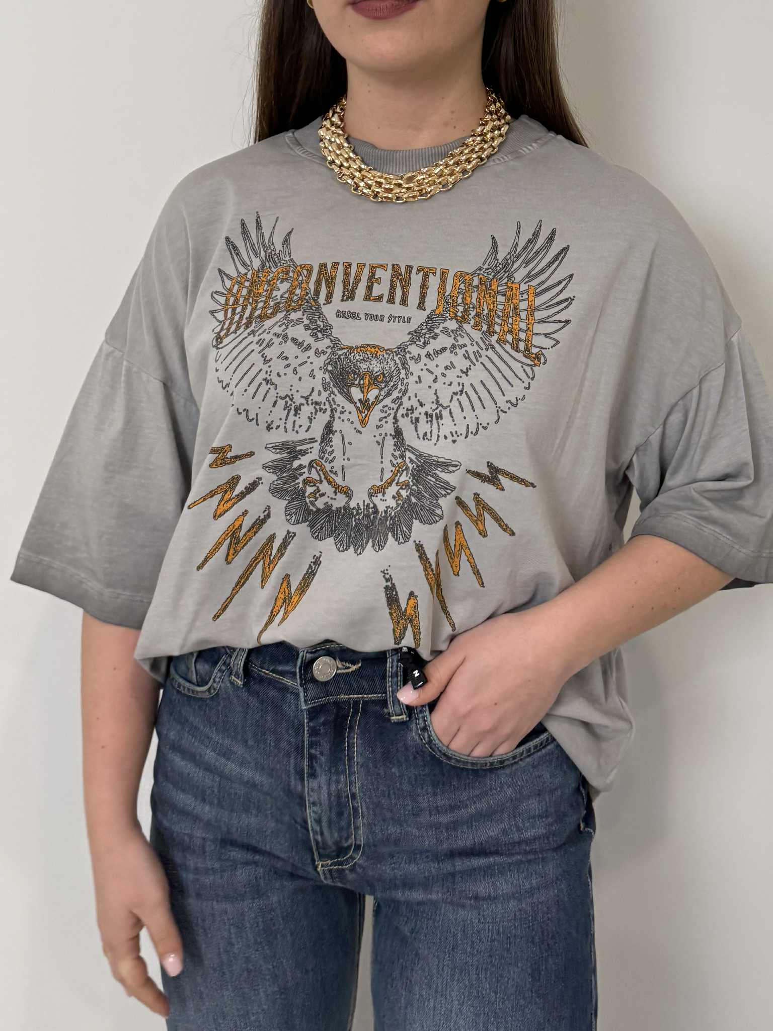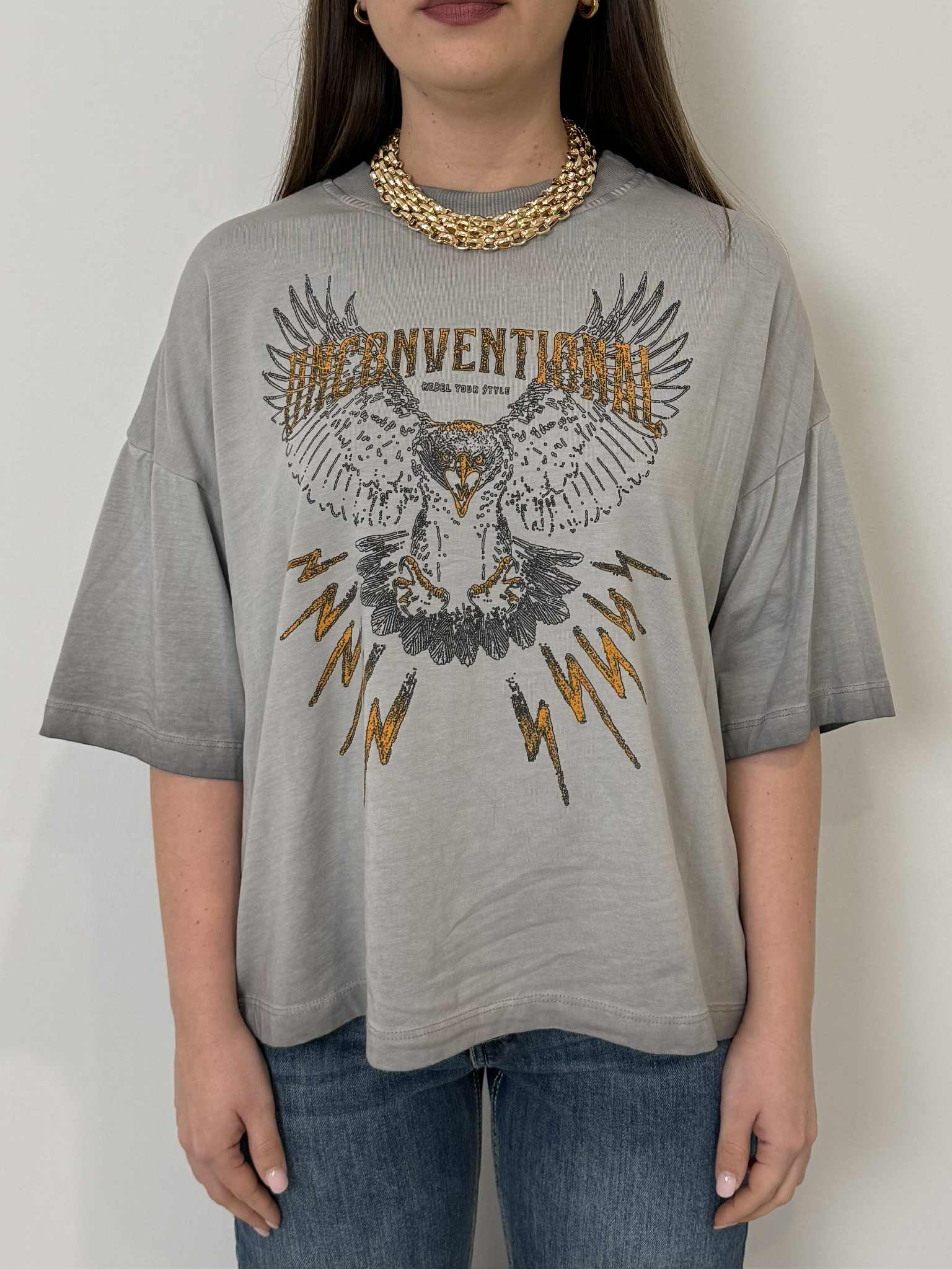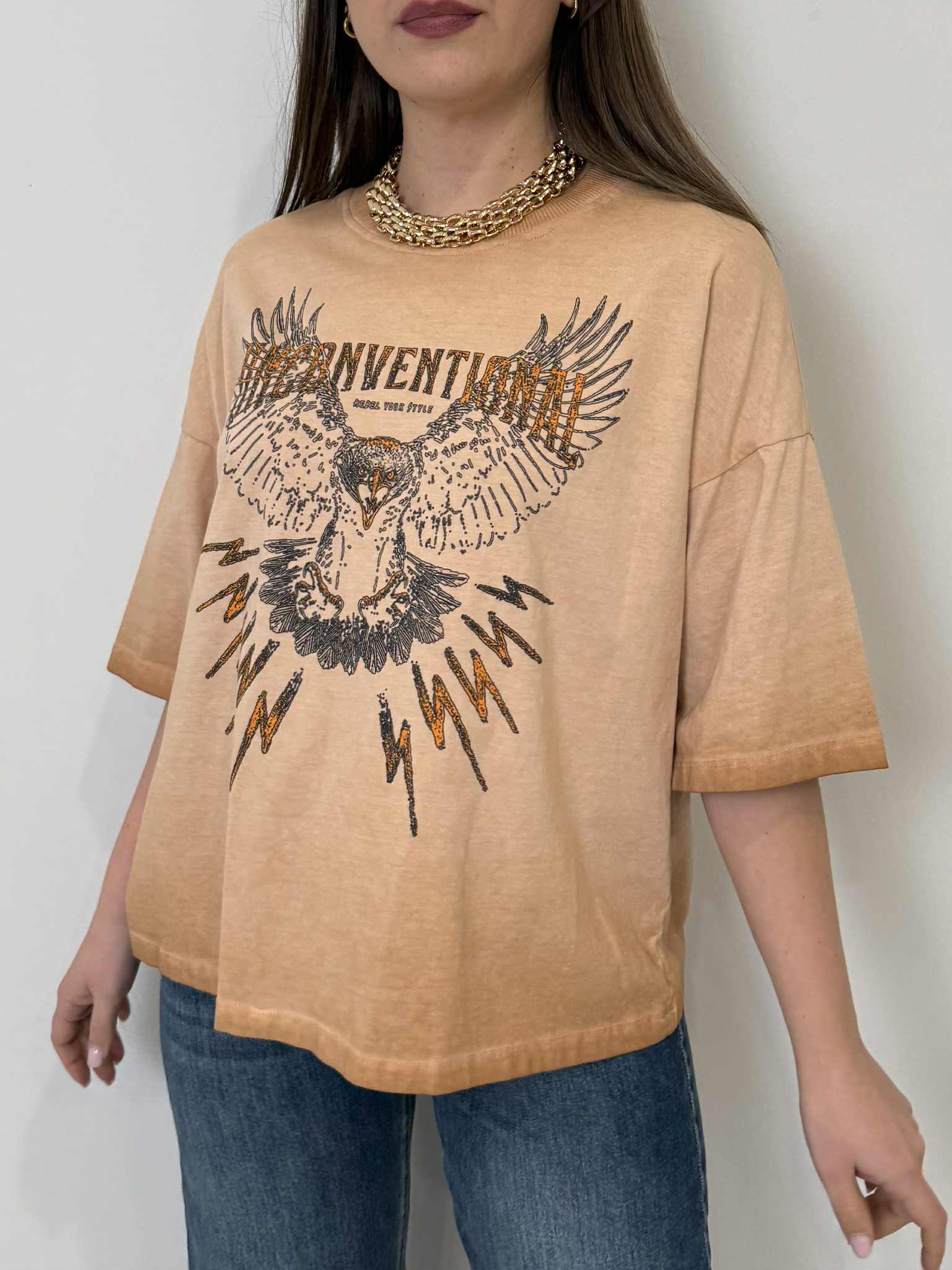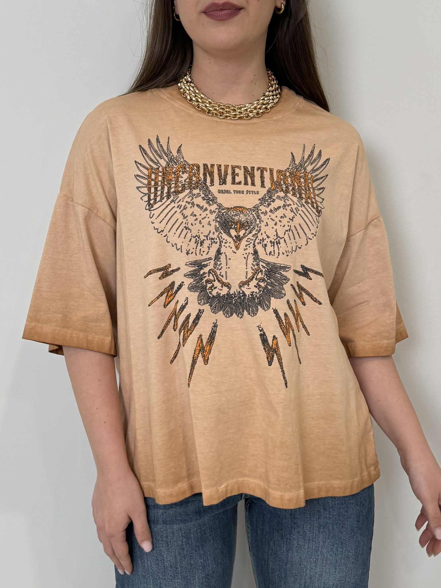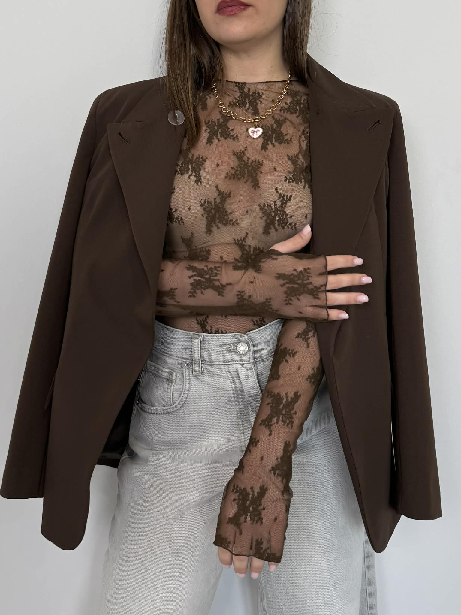 Tensione In - T-shirt moro con manicotti effetto similpelle