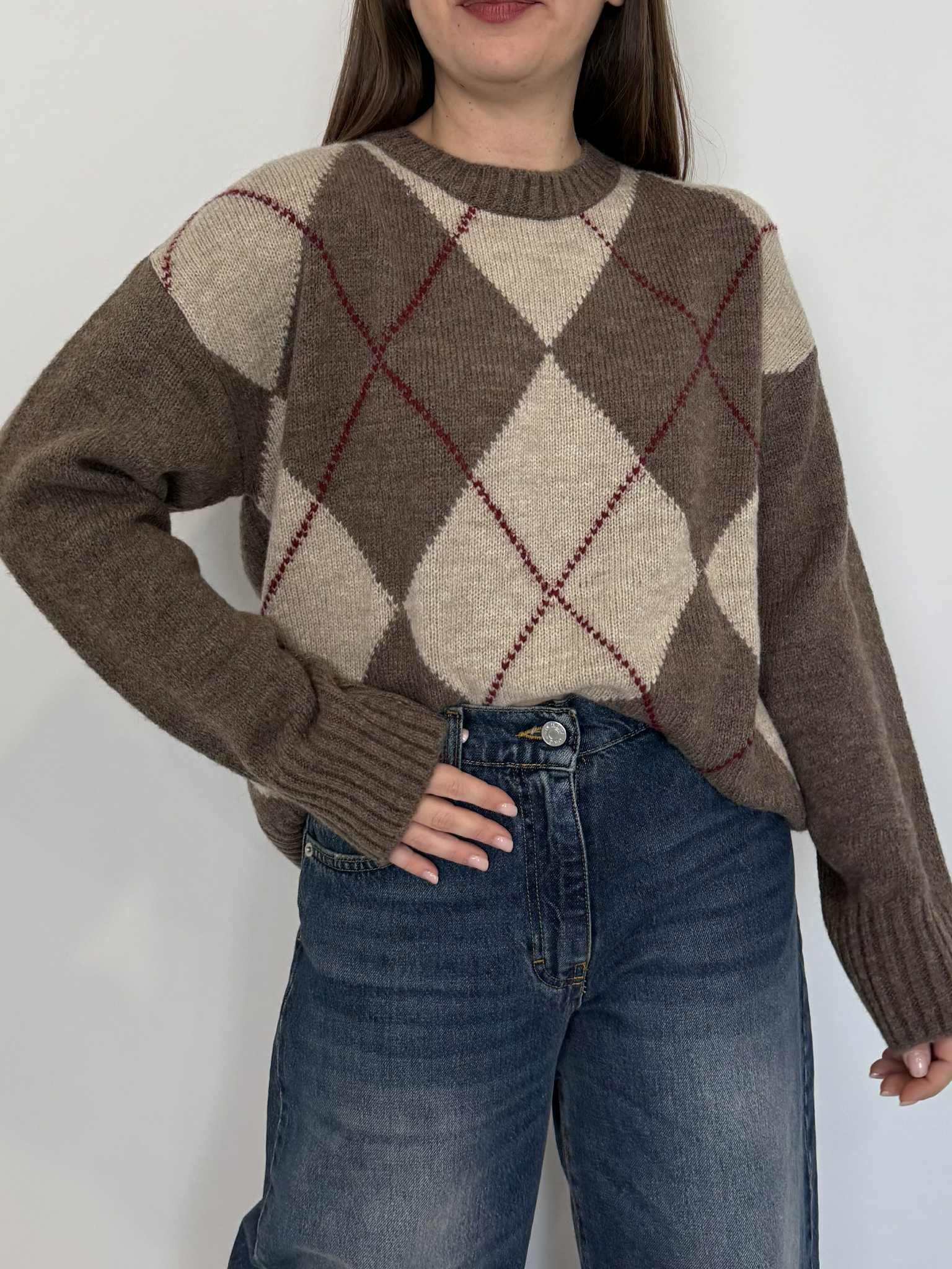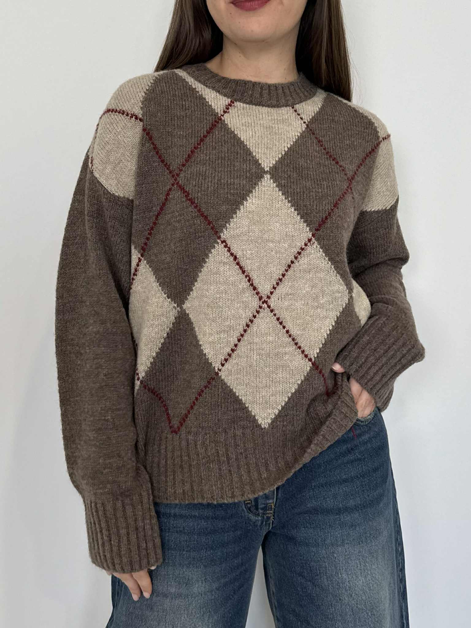 Tensione In - Maglioncino losanghe fango/casha