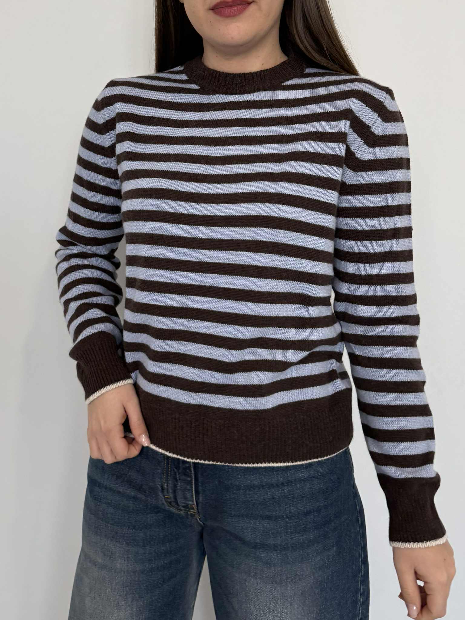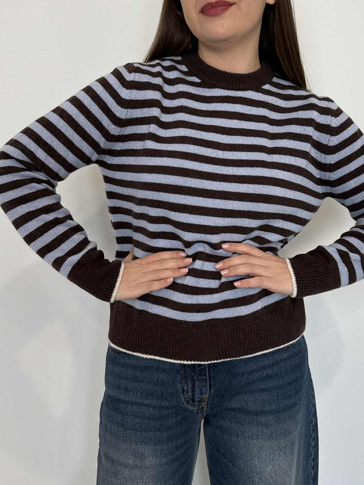 Tensione In - Maglioncino righe moro/celeste/panna