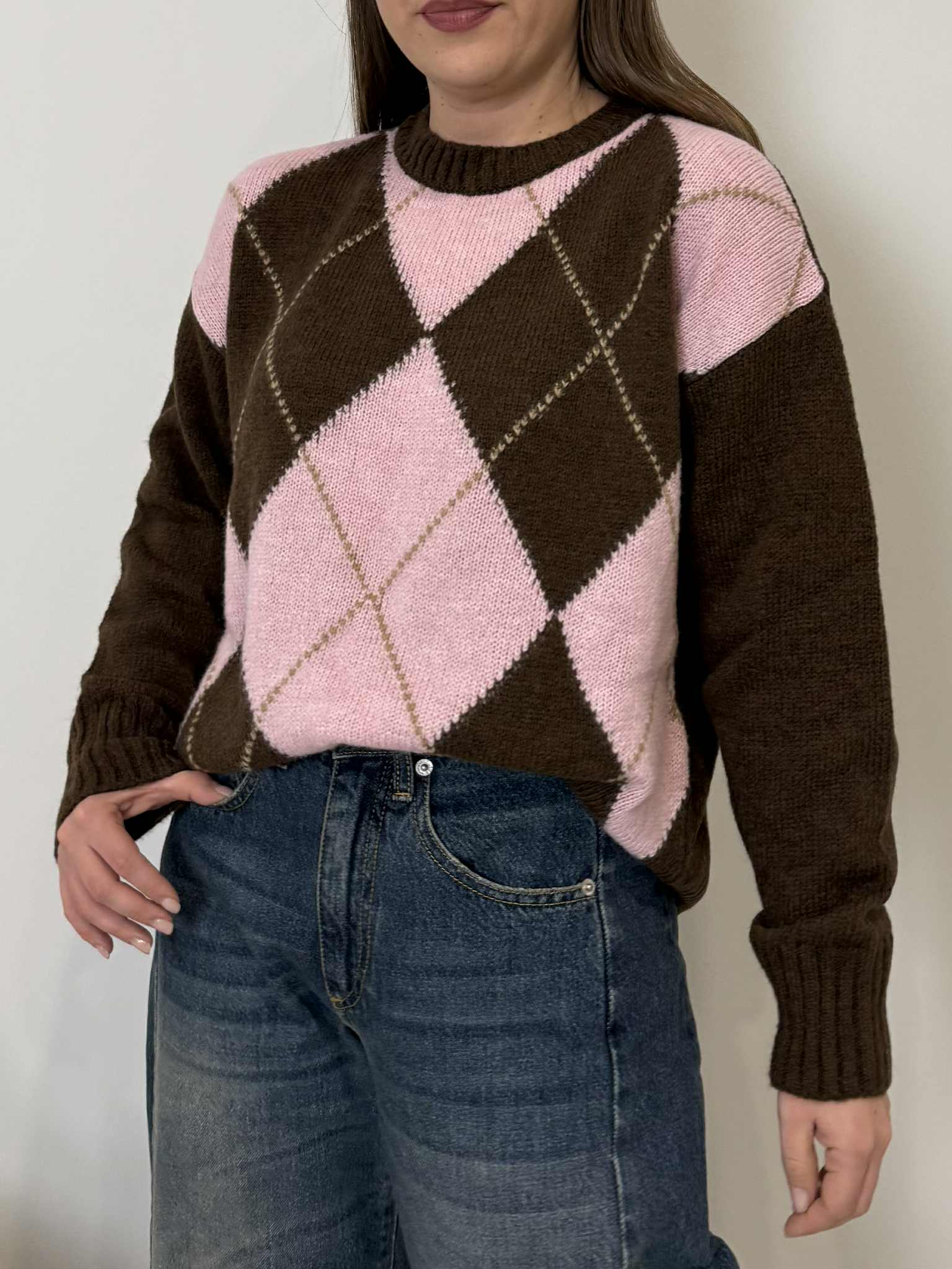 Tensione In - Maglioncino losanghe moro/rosa