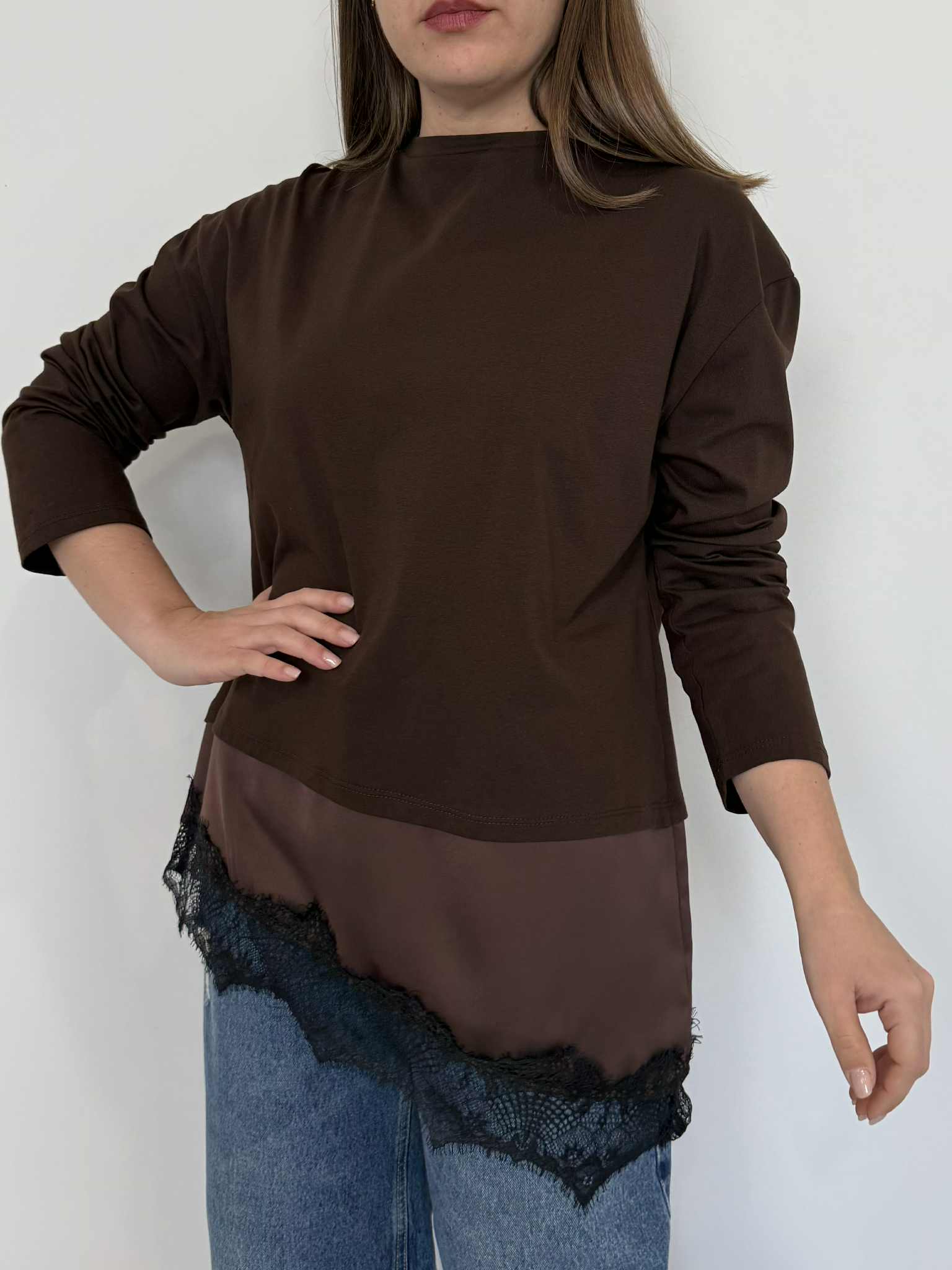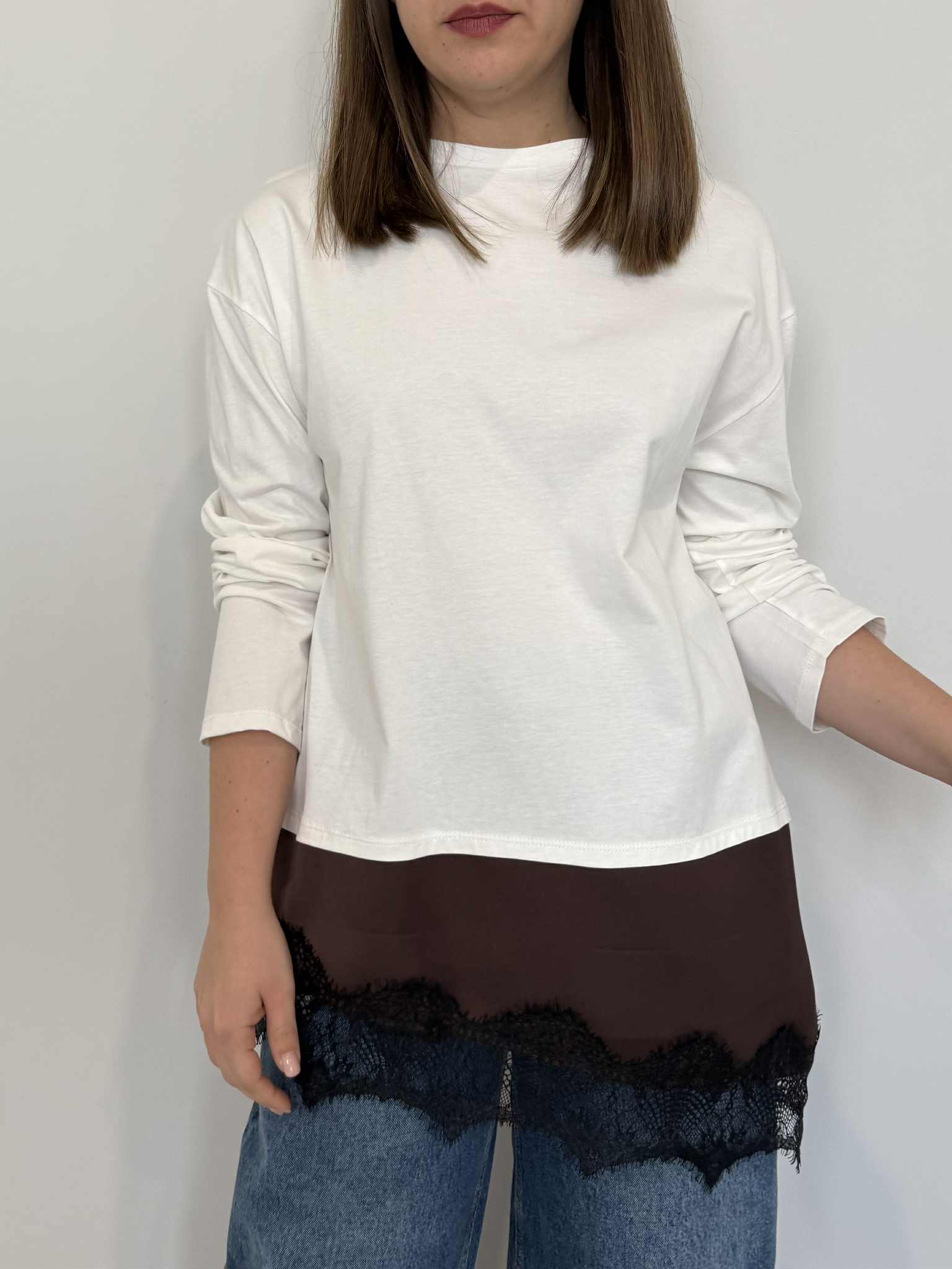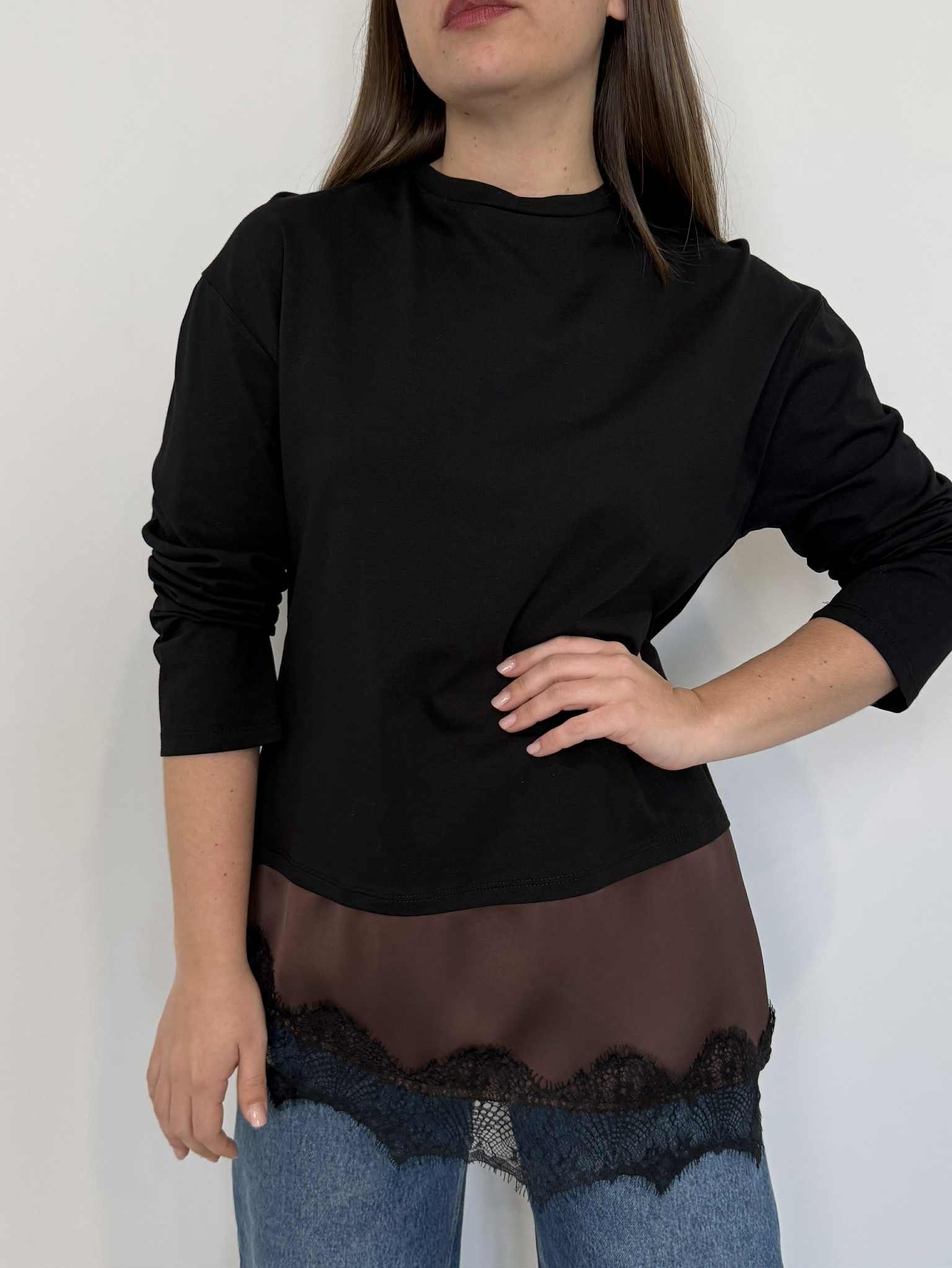 Tensione In - Maglia moro con pizzo finale moro
