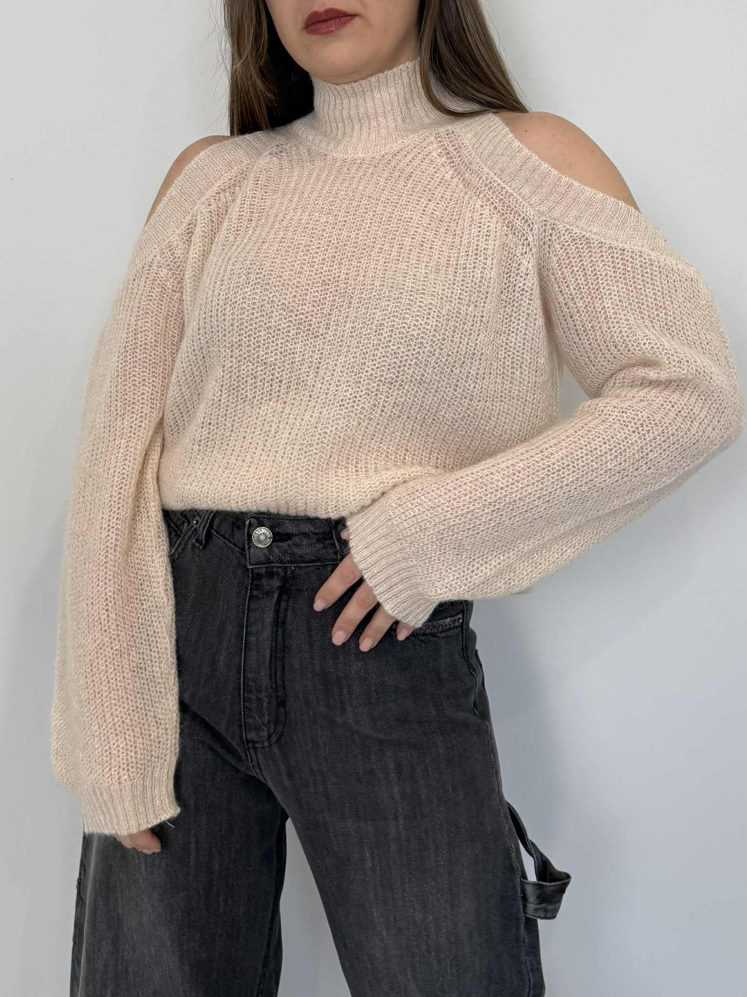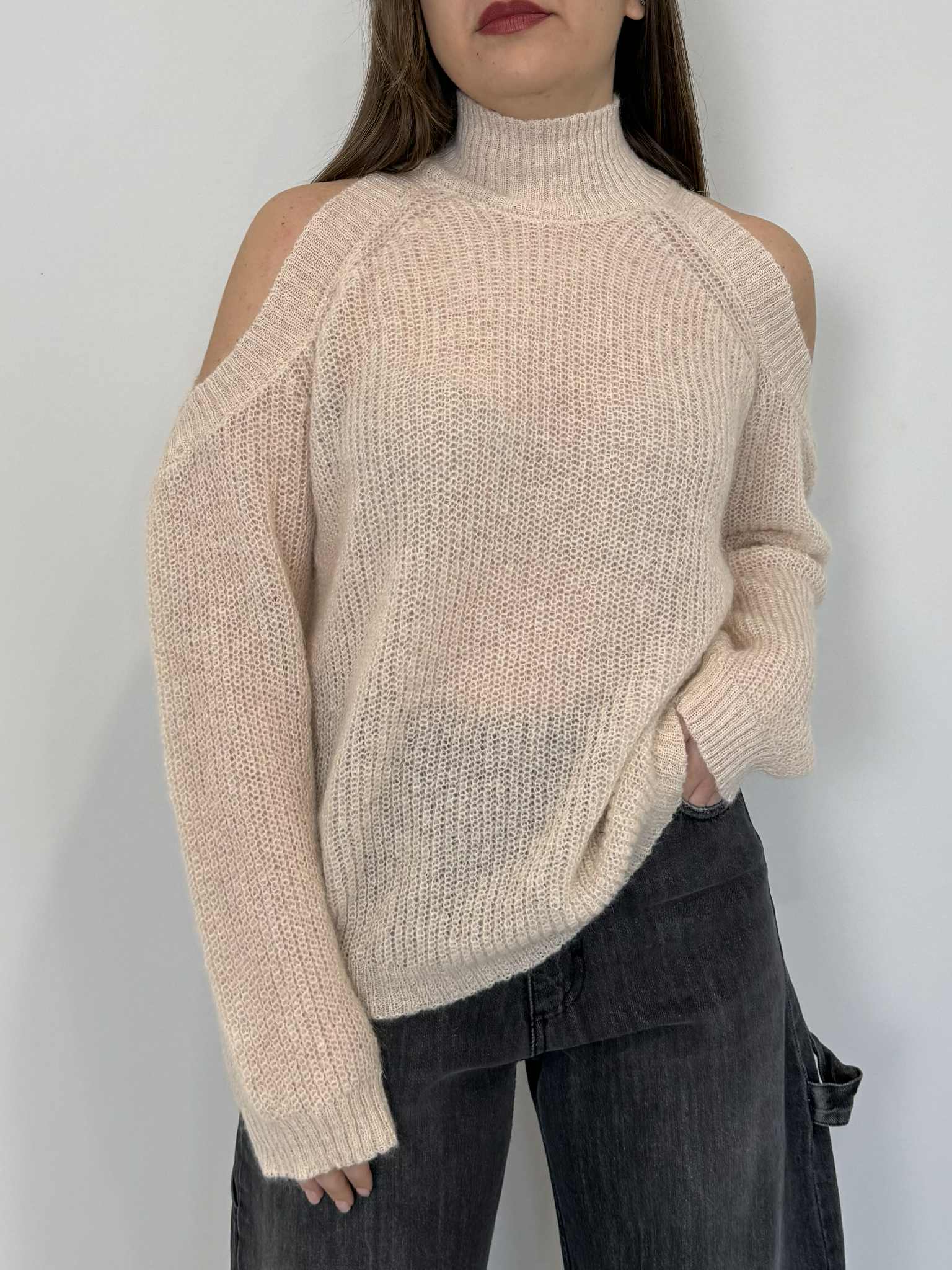 Tensione In - Maglioncino cutout mohair burro
